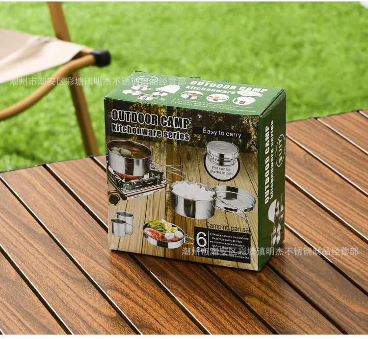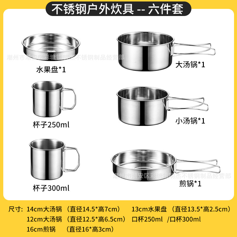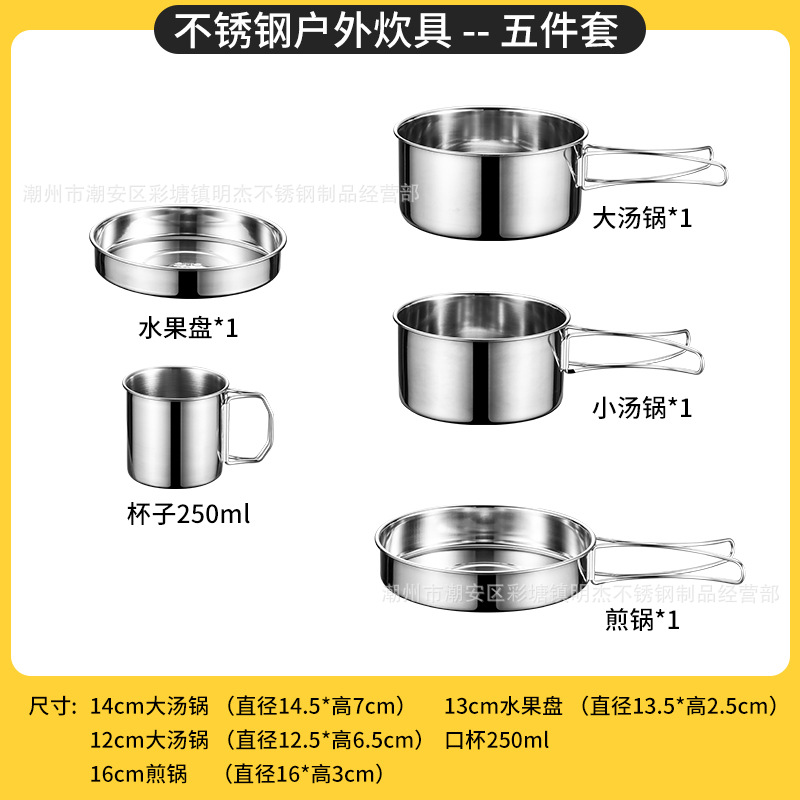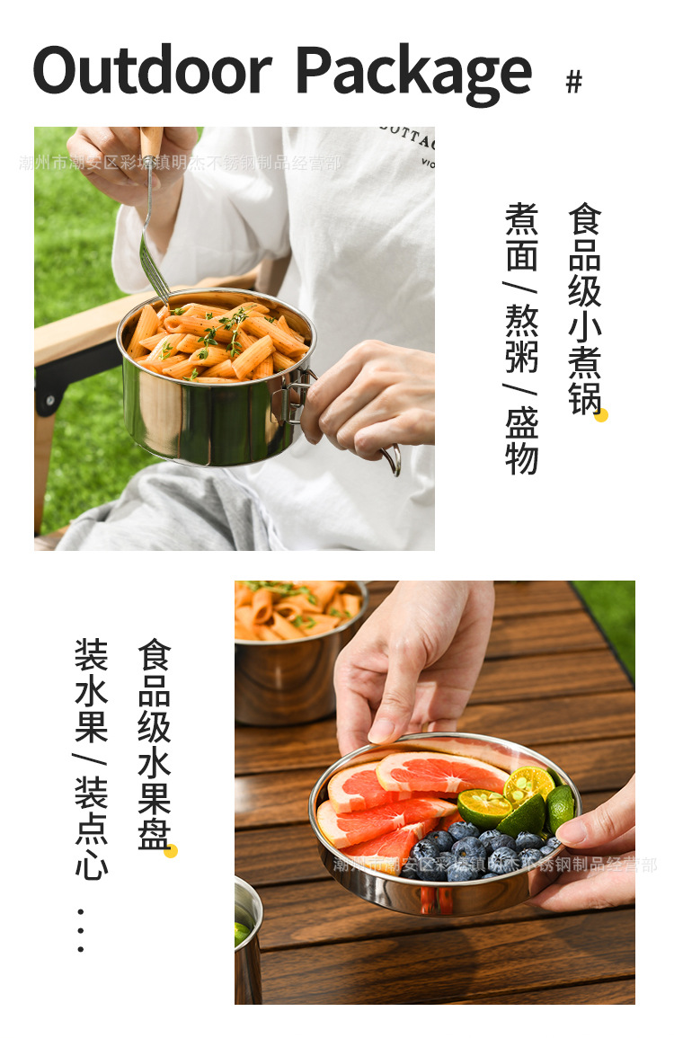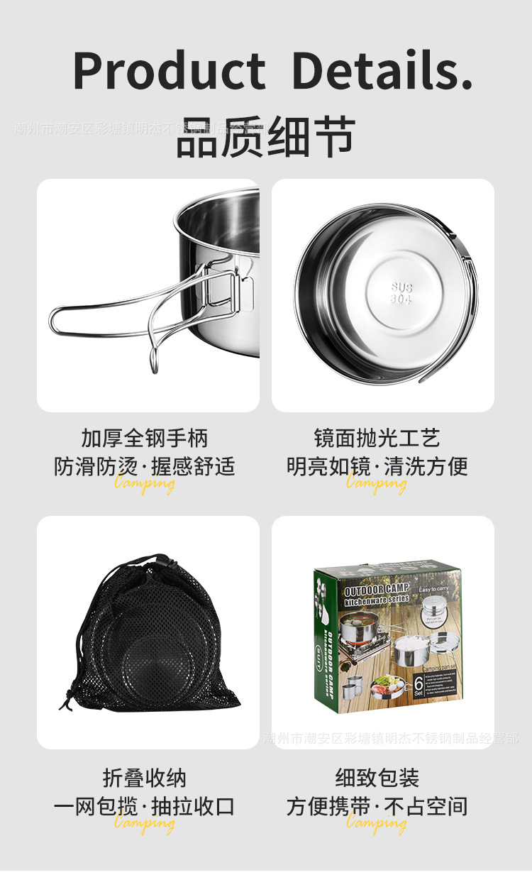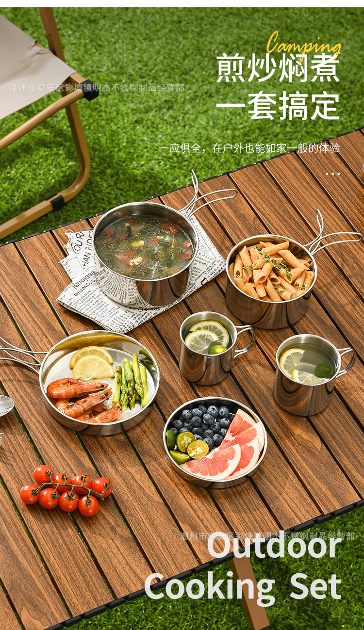 304不锈钢户外炊具野炊折叠餐具套娃易收纳便携锅具套装野营用品
