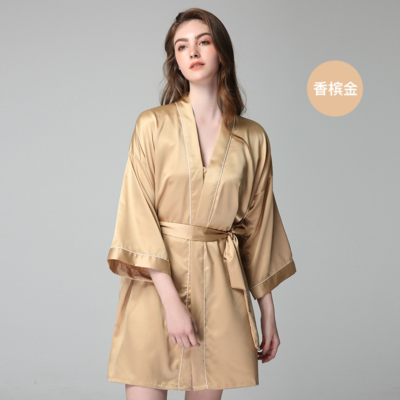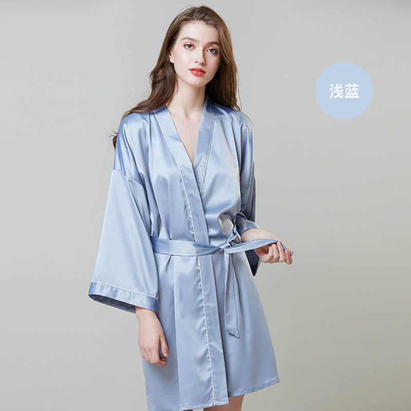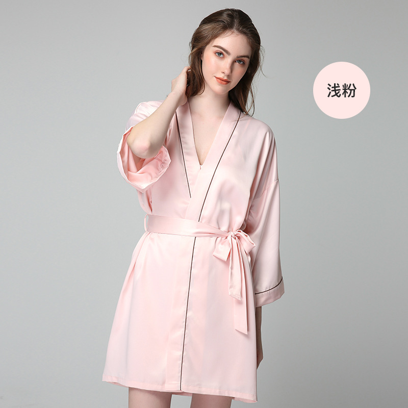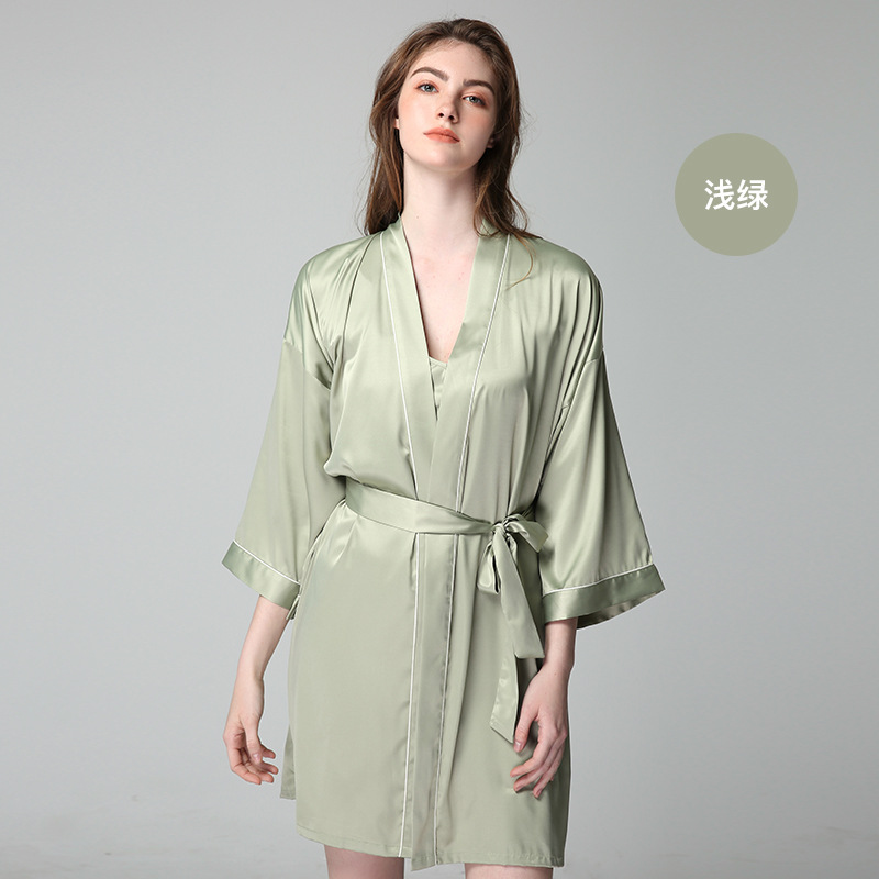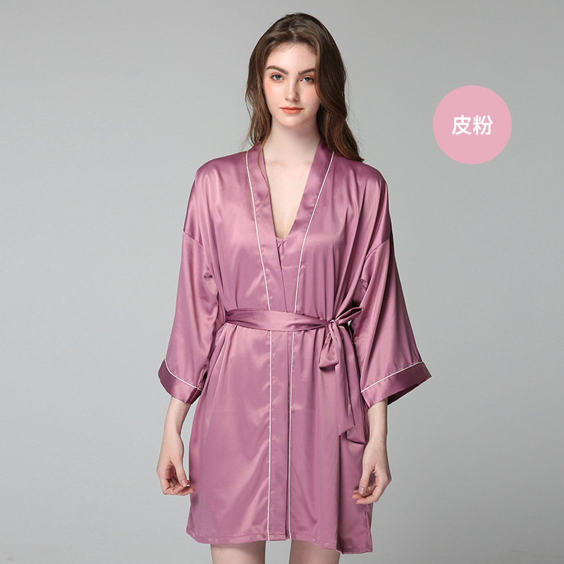 跨境吊带睡袍夏仿真丝2020春秋季新品少女风V领家居服 系带睡衣女