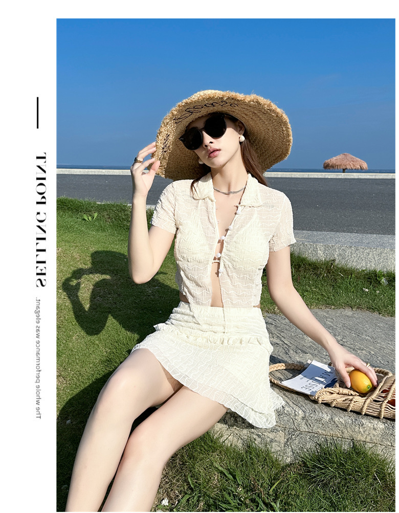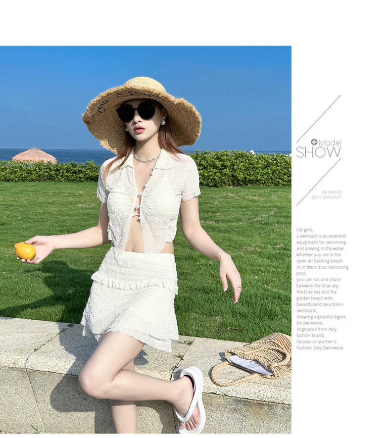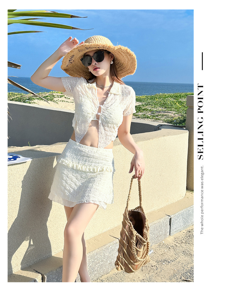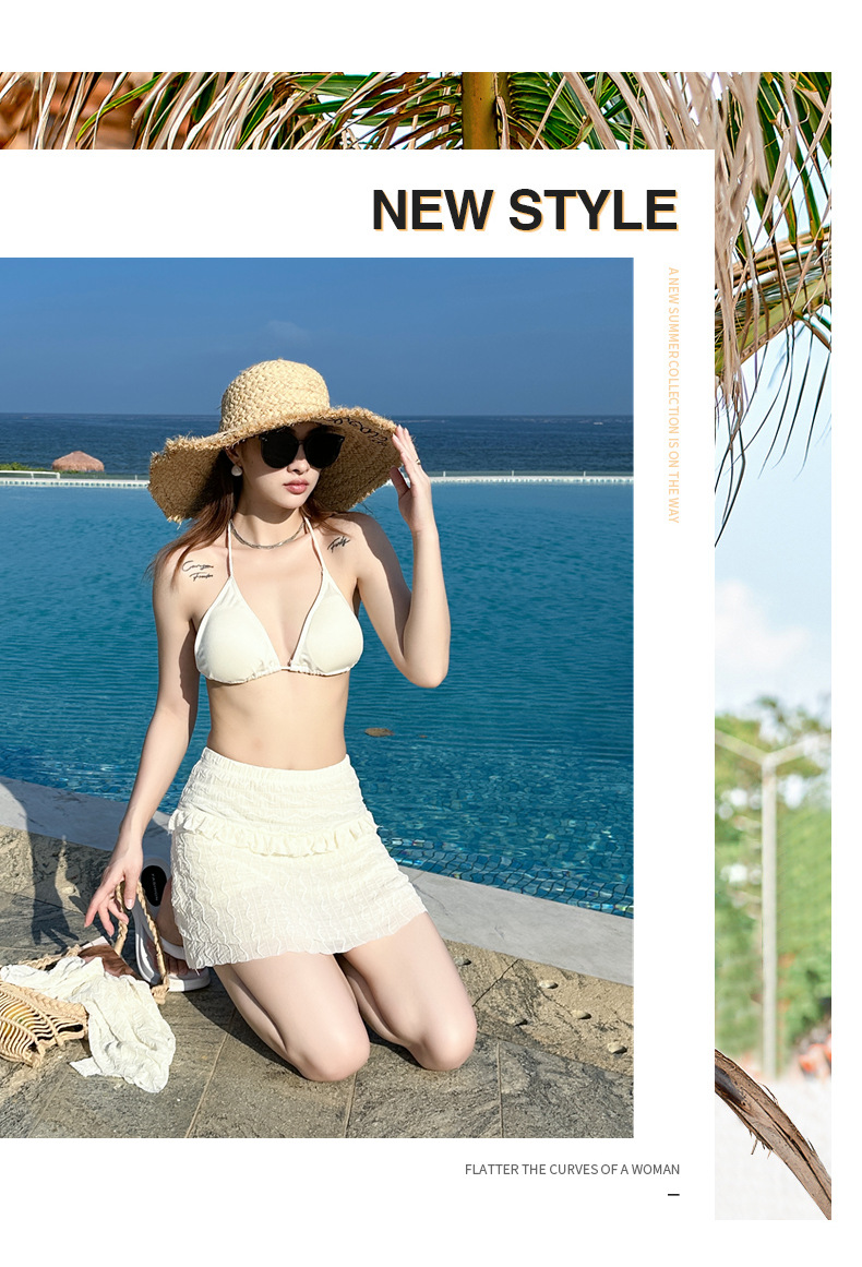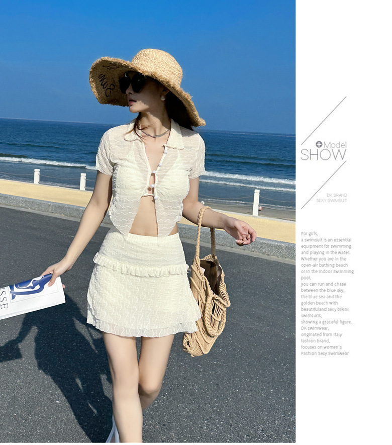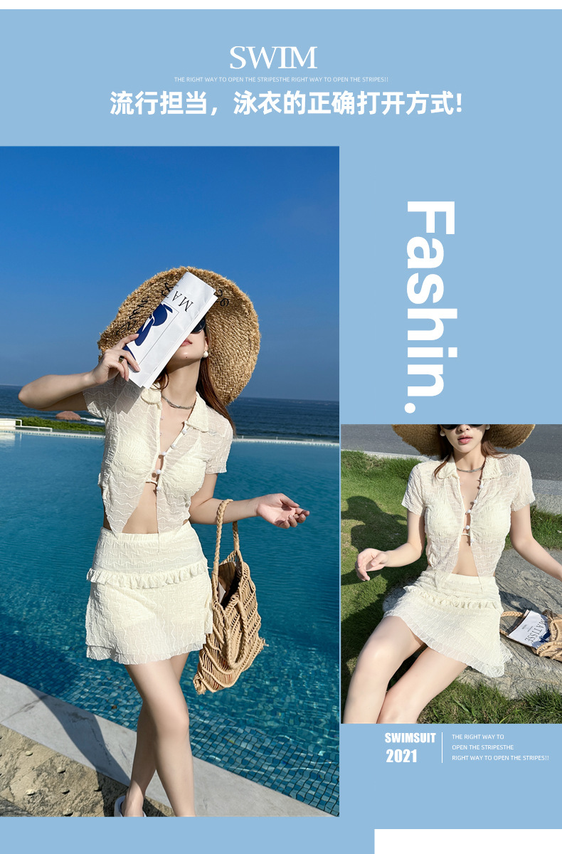 泳衣女裙式分体比基尼三件套性感韩版ins纯欲风少女甜辣新款泳装