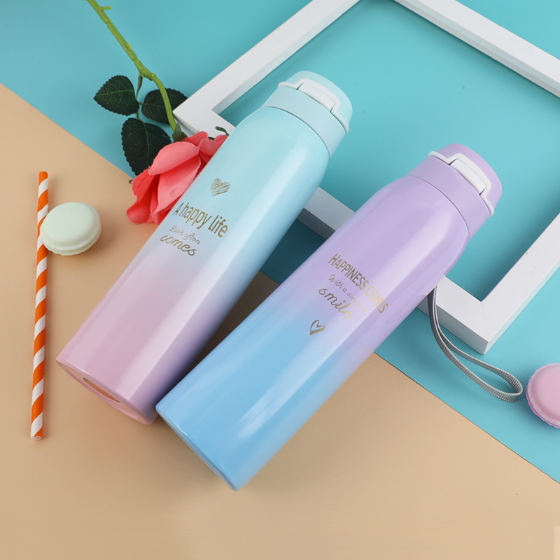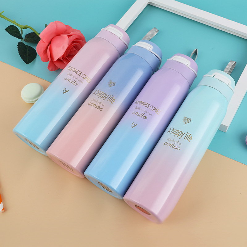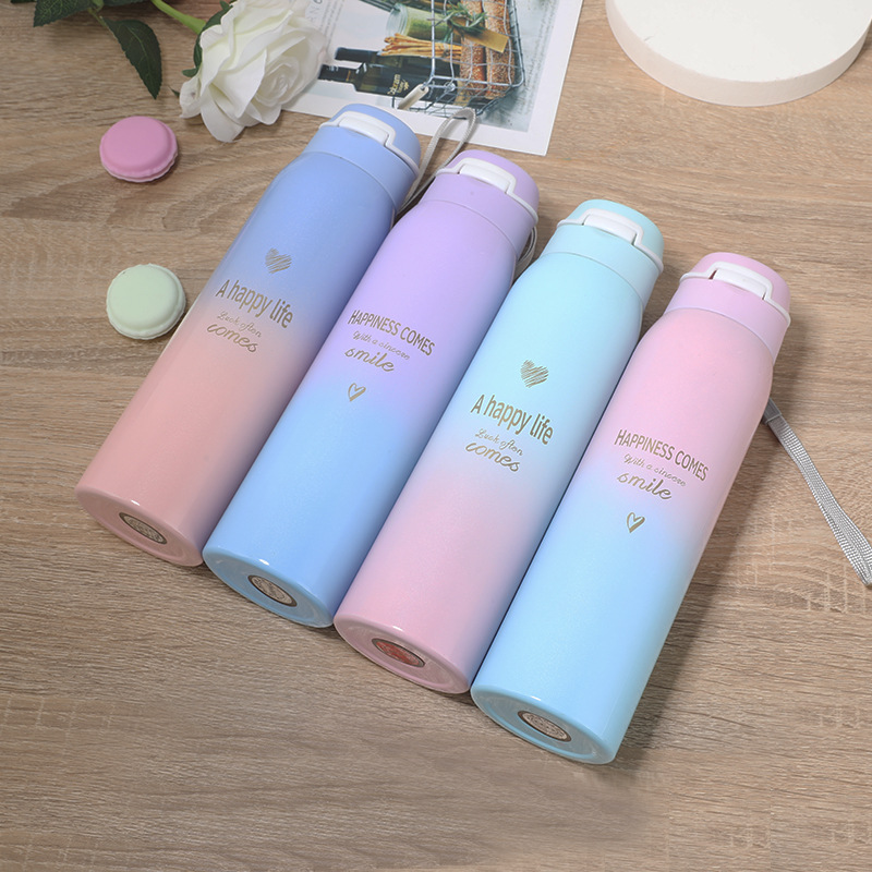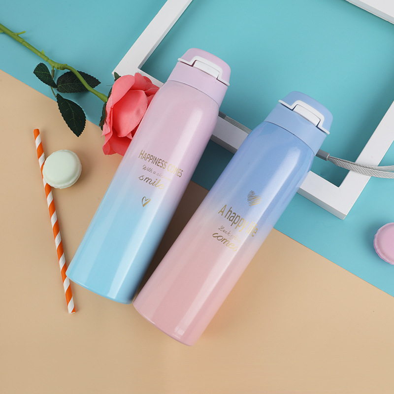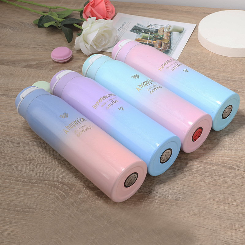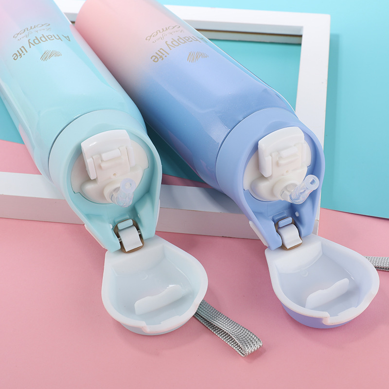 渐变色不锈钢保温杯时尚吸管杯户外便携运动水杯鸭嘴杯高颜值水杯