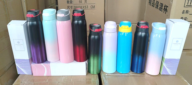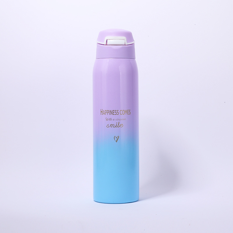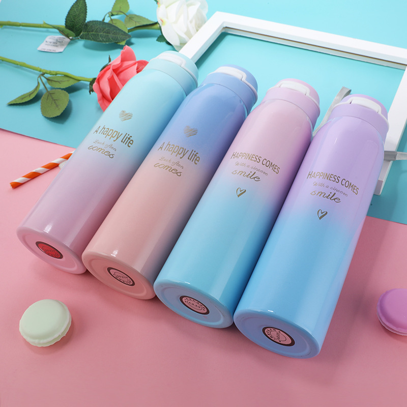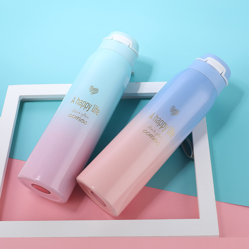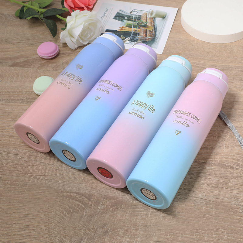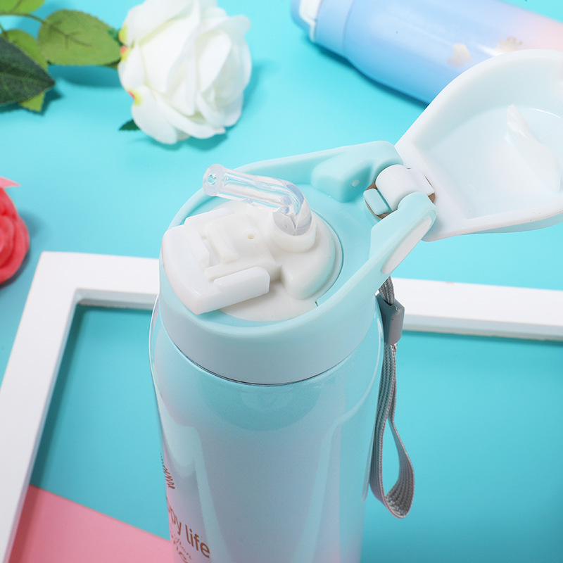 渐变色不锈钢保温杯时尚吸管杯户外便携运动水杯鸭嘴杯高颜值水杯