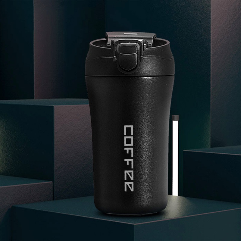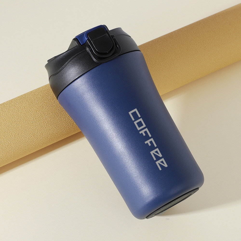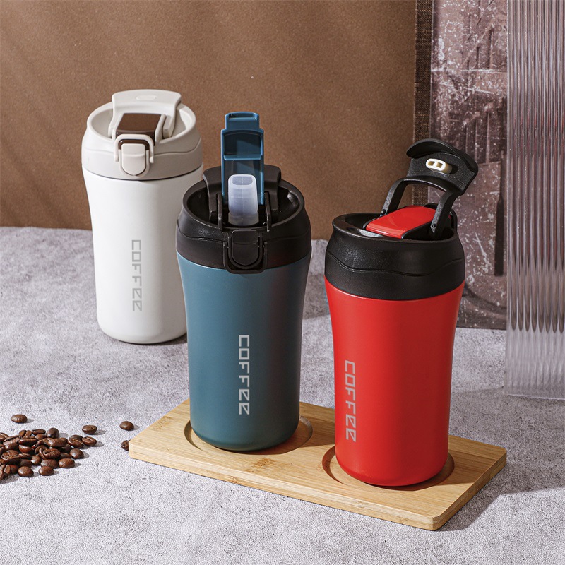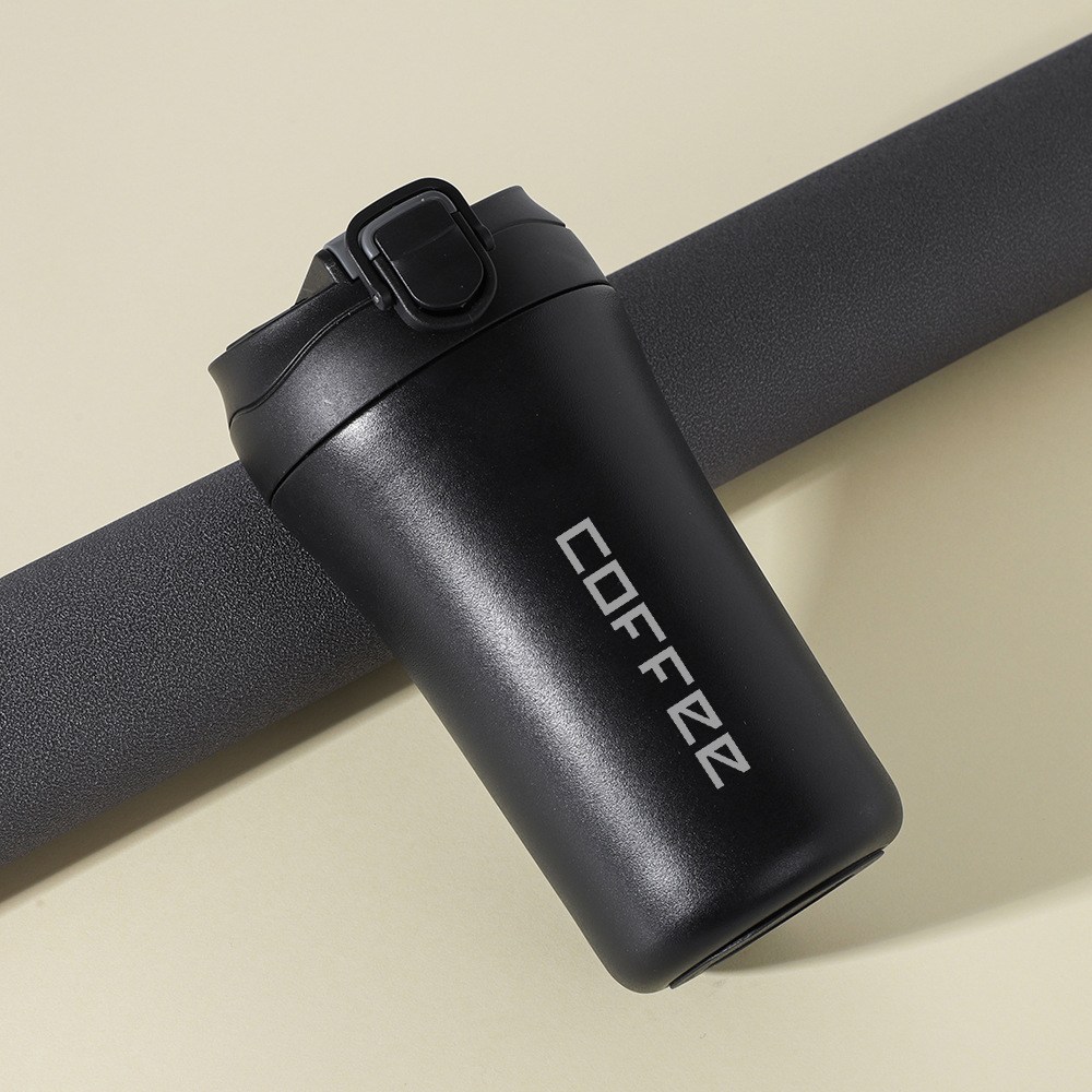 跨境外贸不锈钢咖啡杯304保温杯车载弹跳双饮盖水杯喷塑汽车杯子