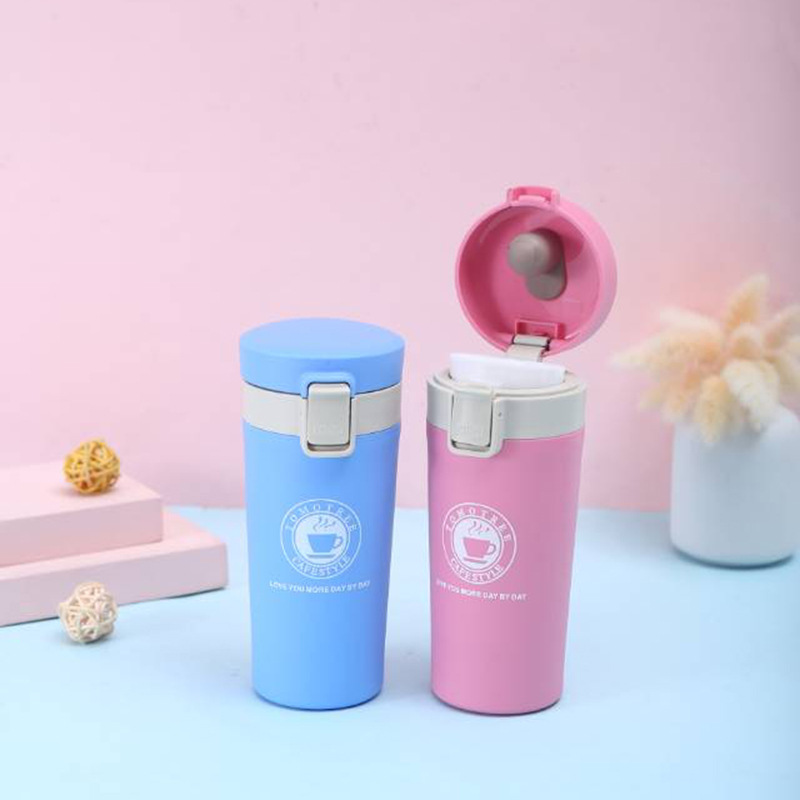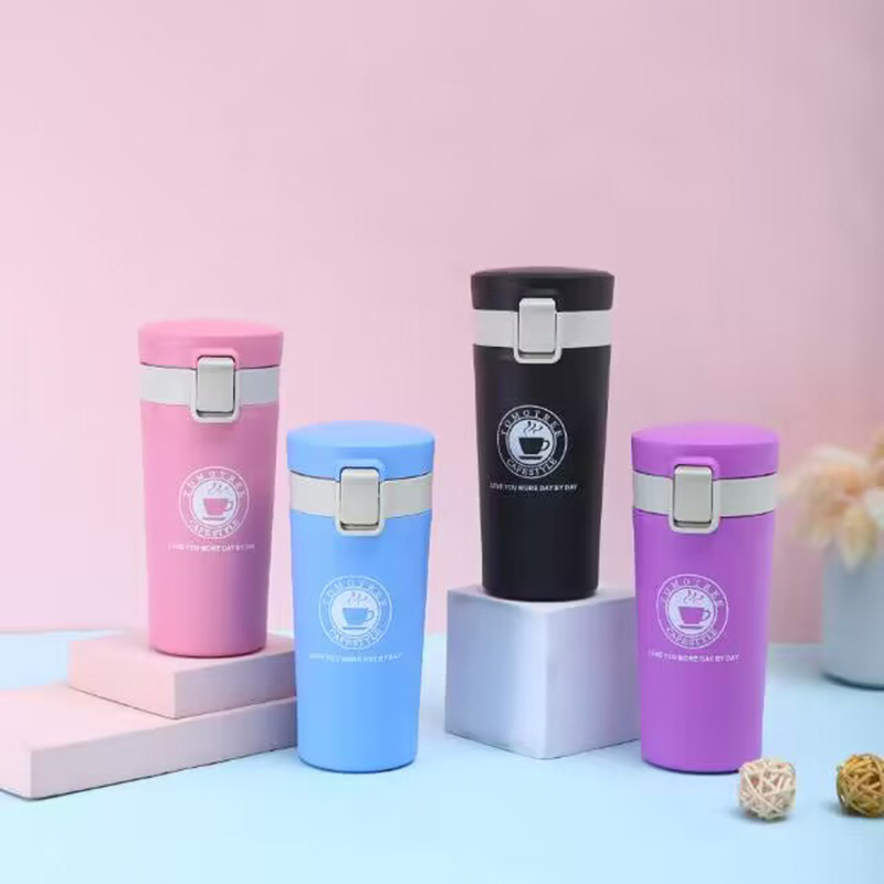 跨境热销304不锈钢真空咖啡杯带茶隔弹跳杯便携式车载真空保温杯