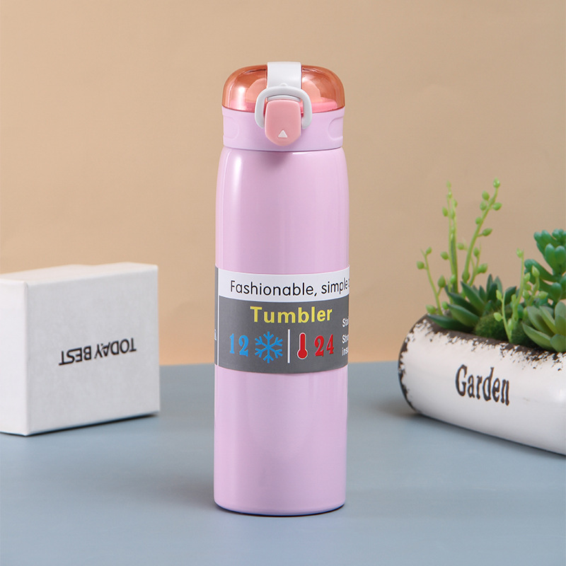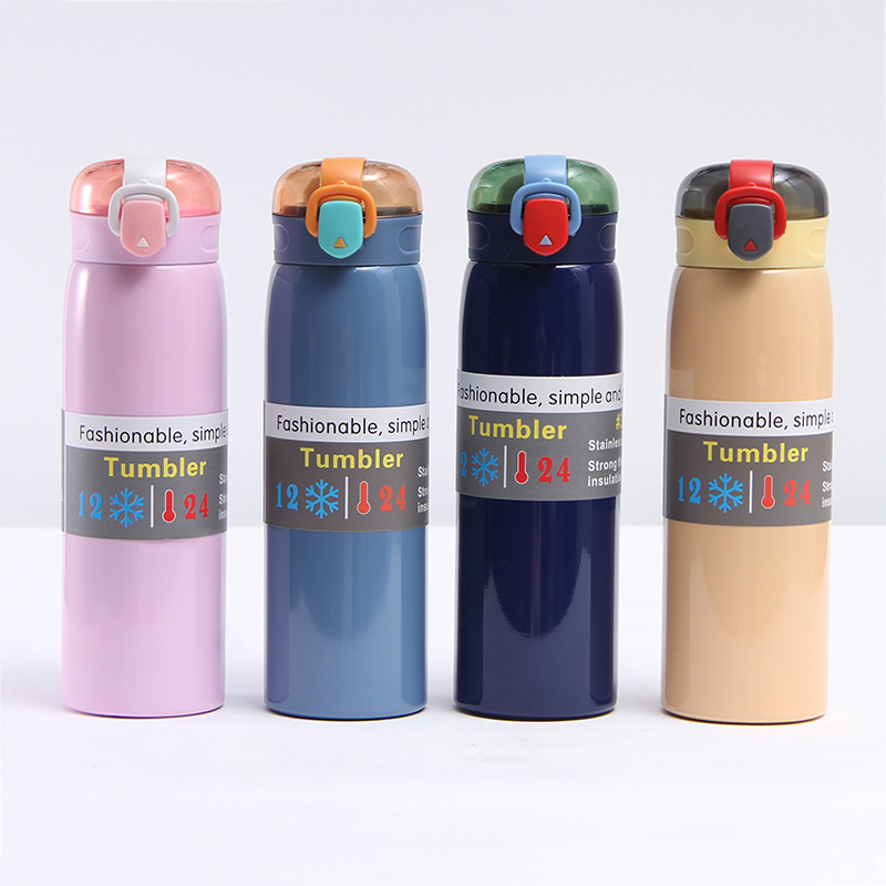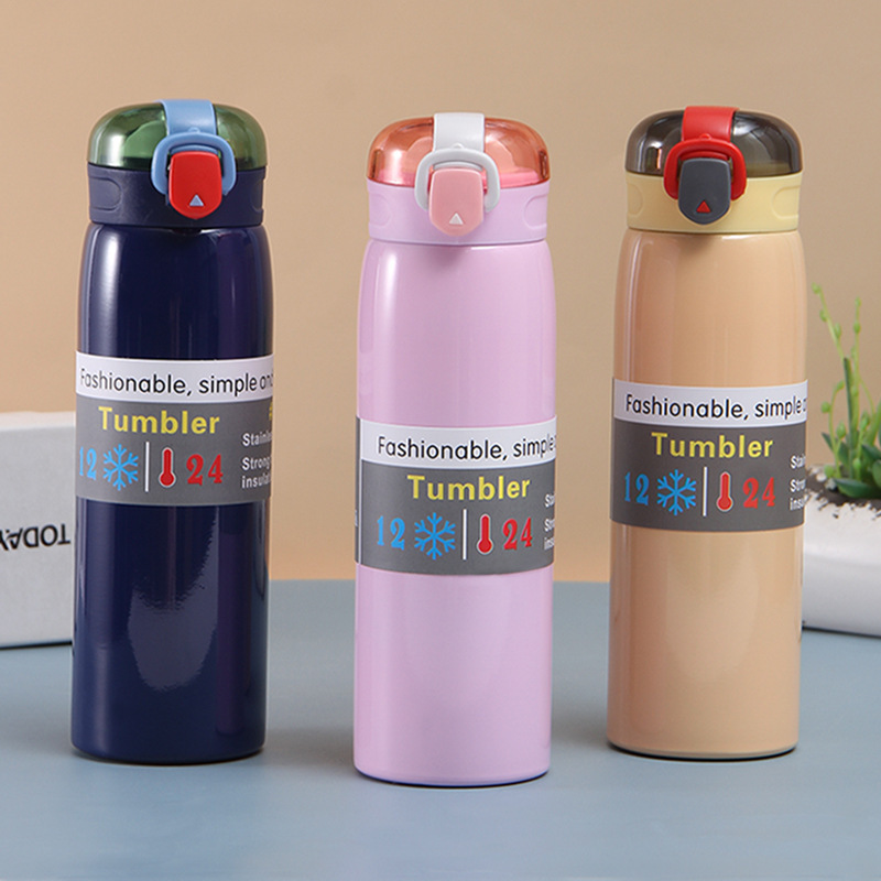 现代简约304不锈钢弹跳保温杯可爱杯子日用礼品杯厂家直供