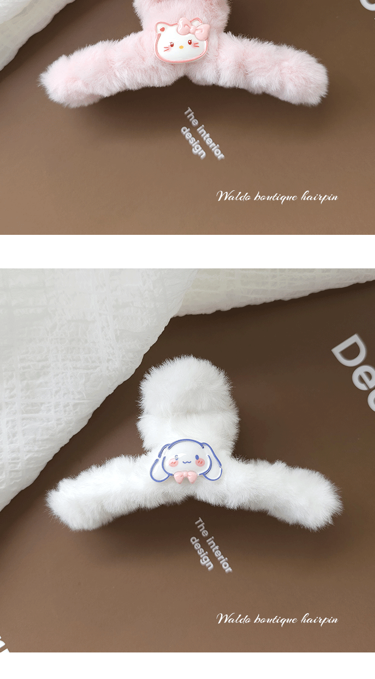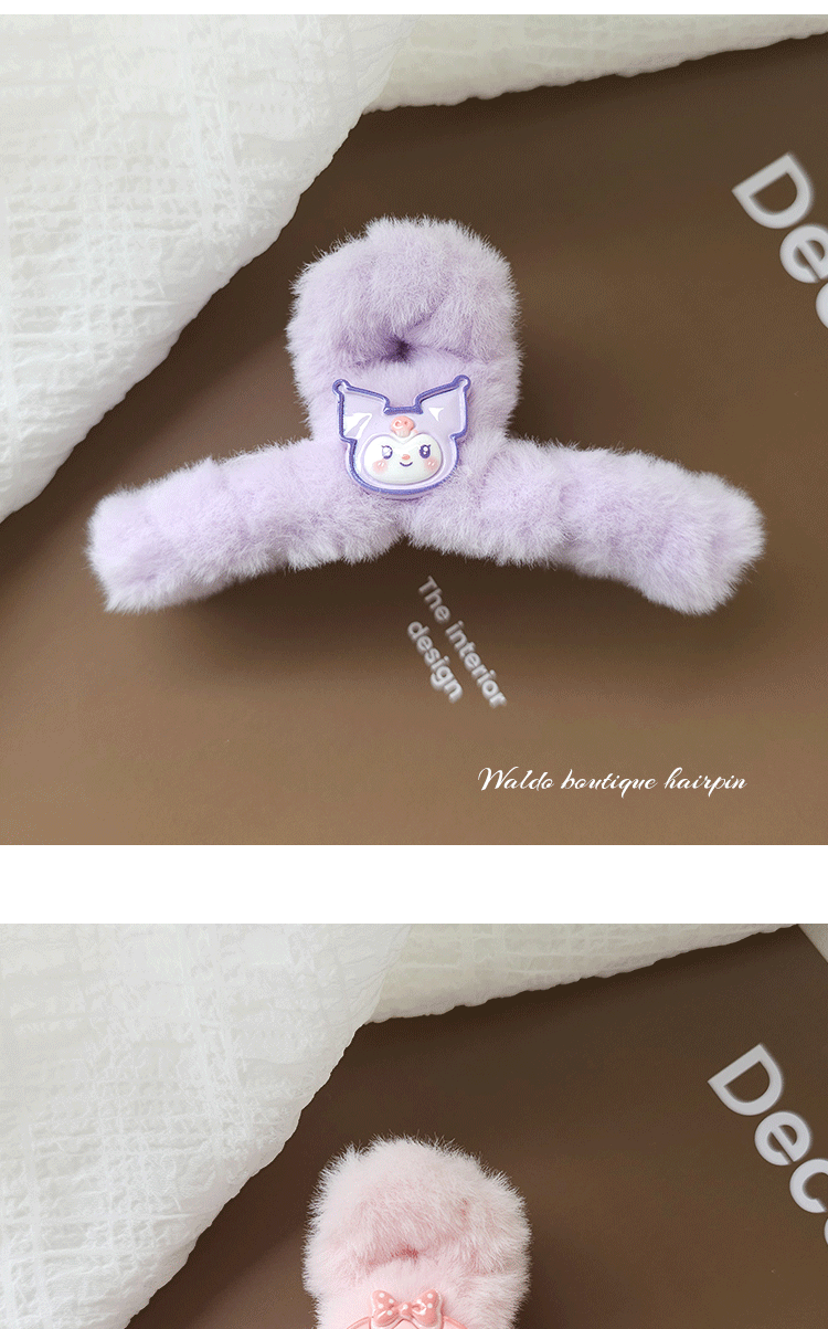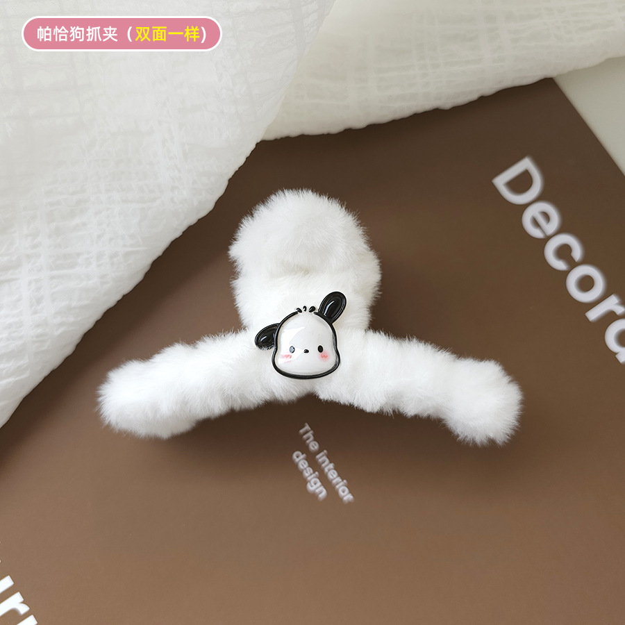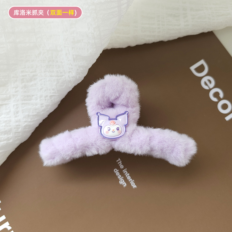 可爱三丽鸥毛绒抓夹秋冬日韩款少女心发饰高级感鲨鱼夹后脑勺发夹