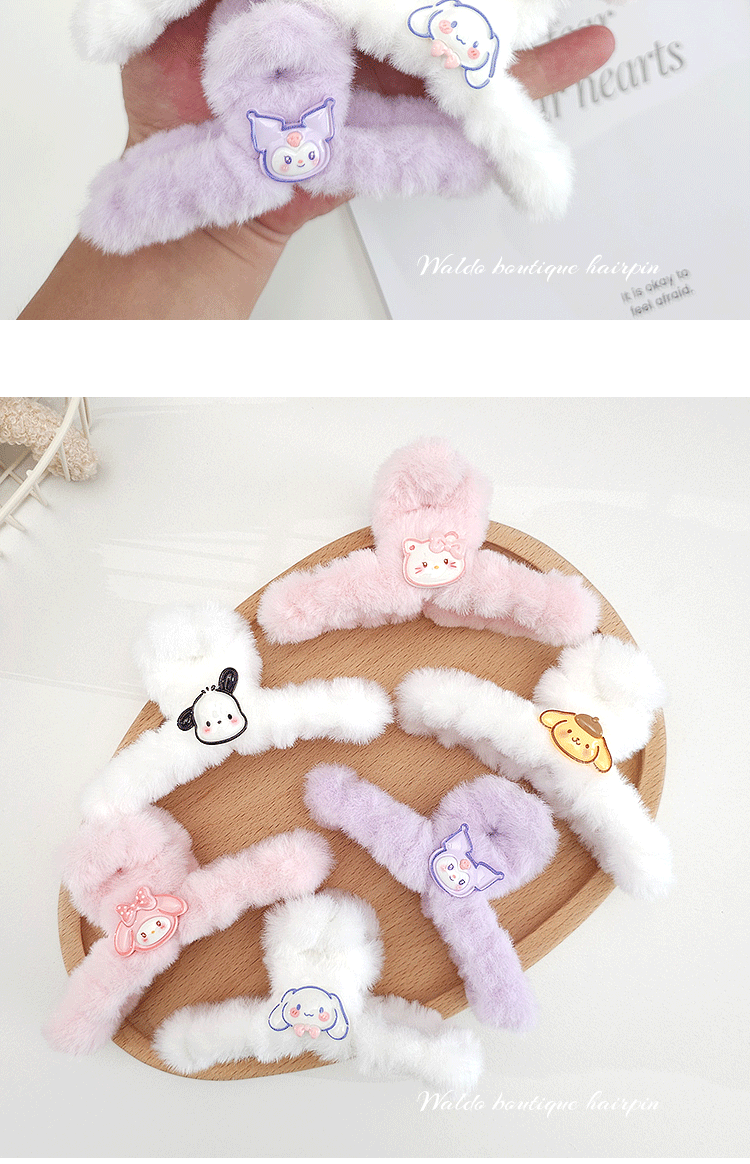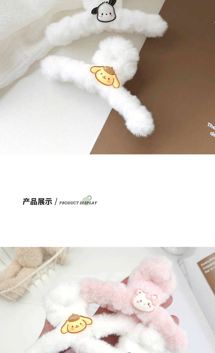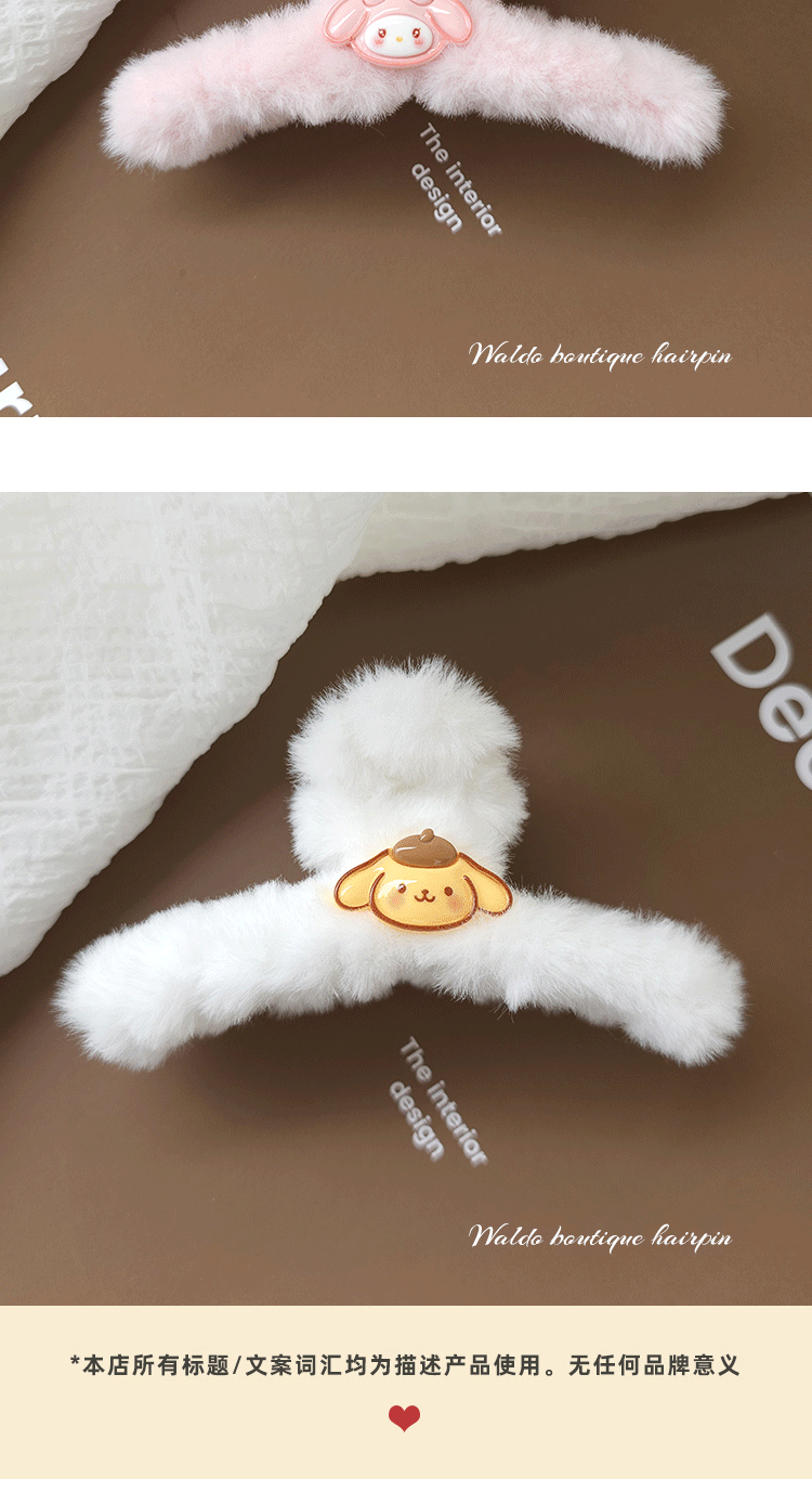 可爱三丽鸥毛绒抓夹秋冬日韩款少女心发饰高级感鲨鱼夹后脑勺发夹