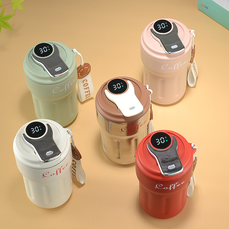 316不锈钢咖啡杯保温杯女生便捷水杯显温保冷杯子男随行杯带提手