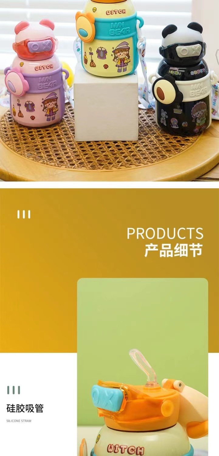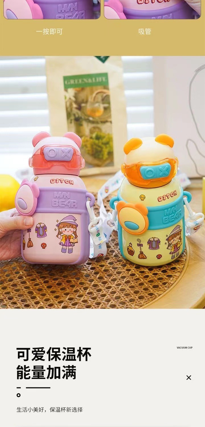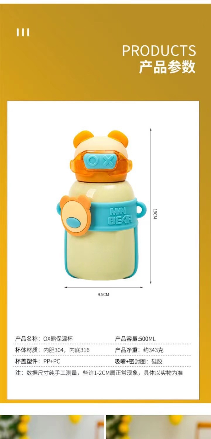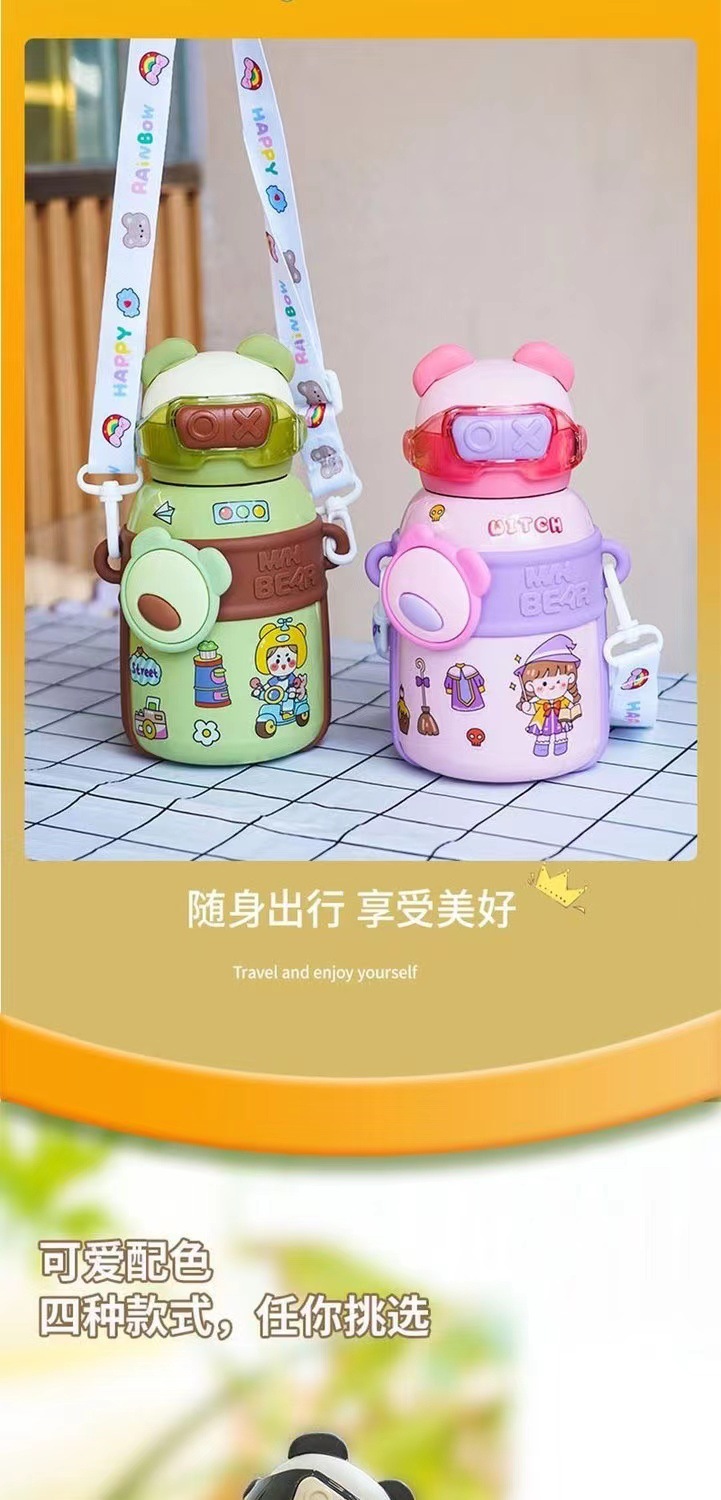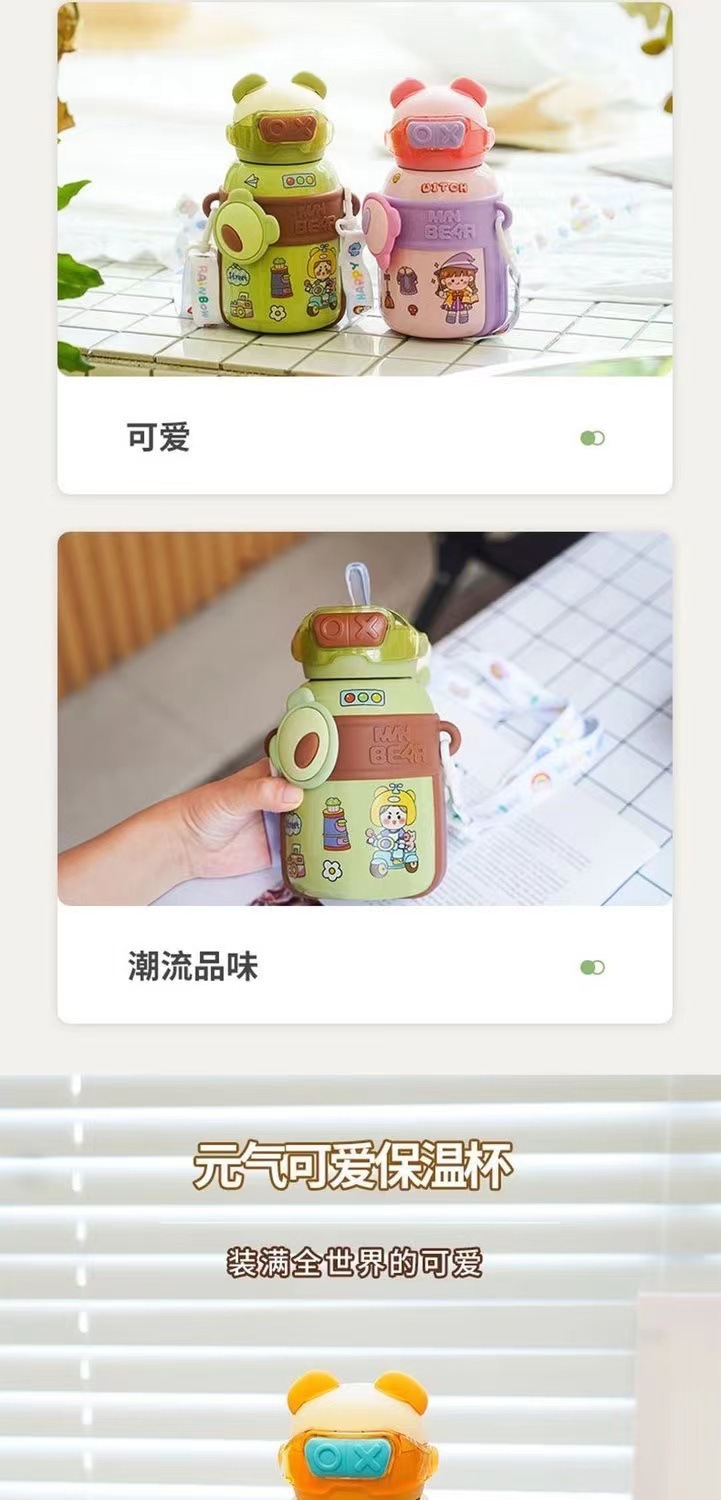 新款可爱316不锈钢萌熊儿童保温杯吸管水杯幼儿园宝宝水壶批发