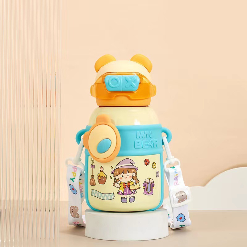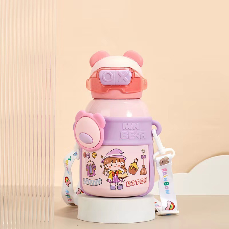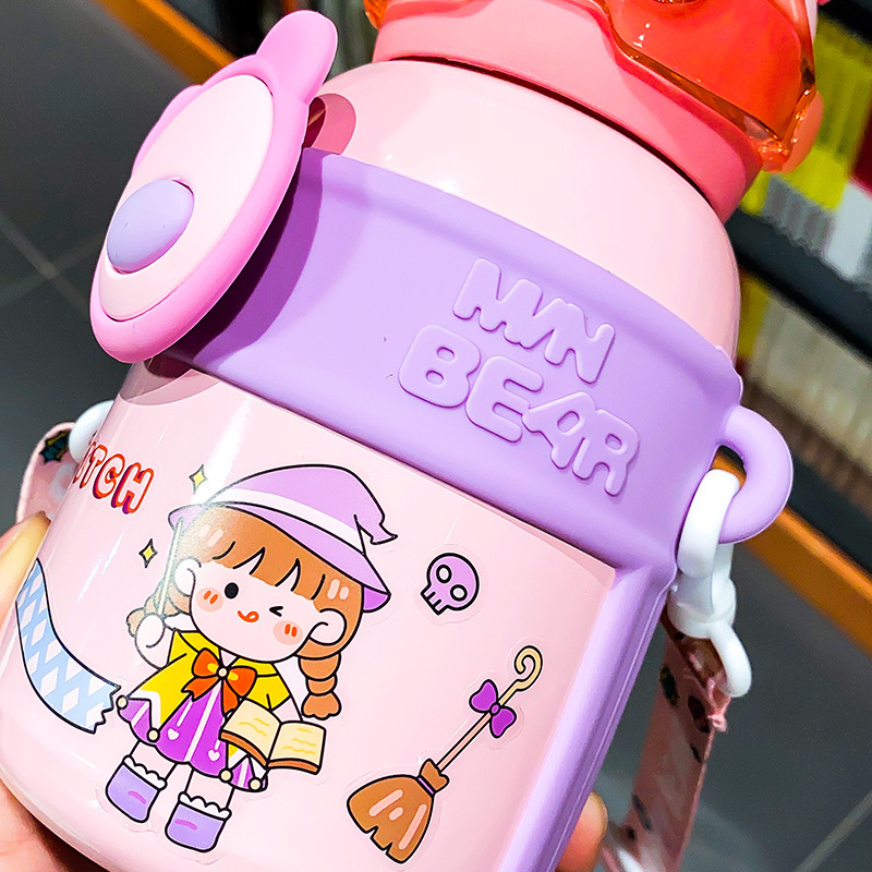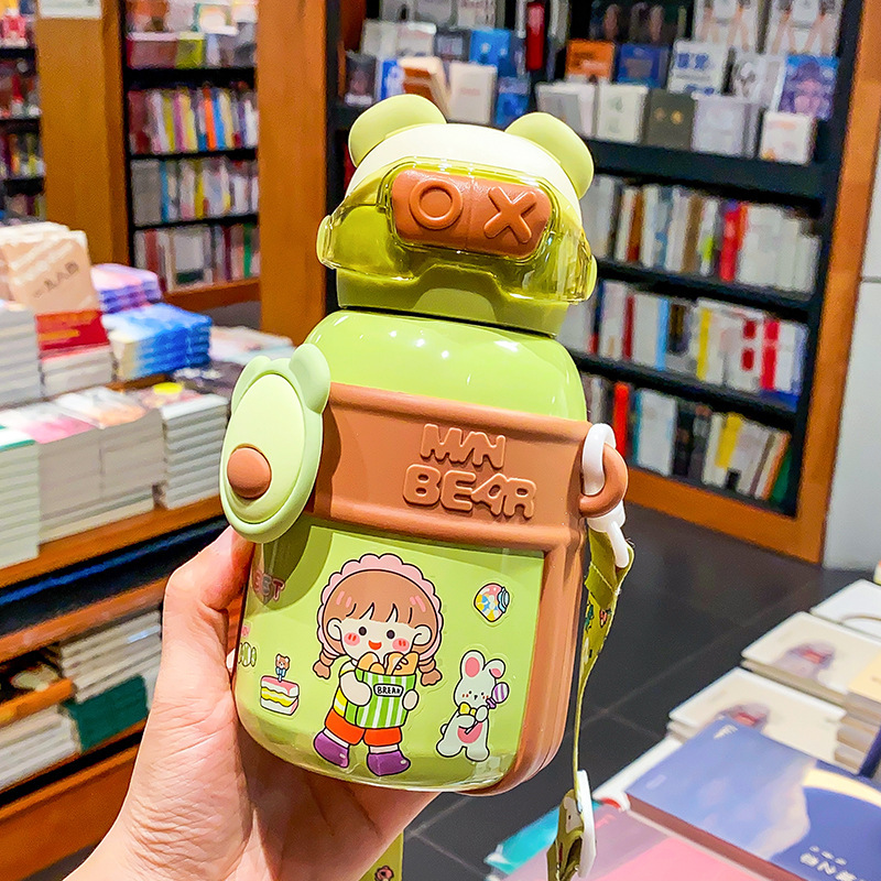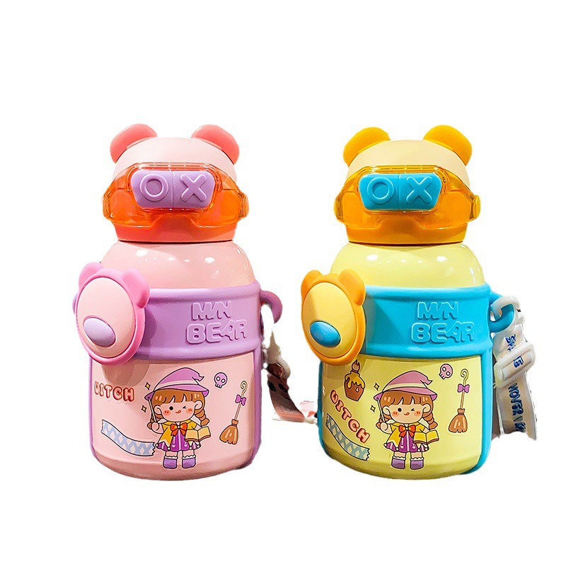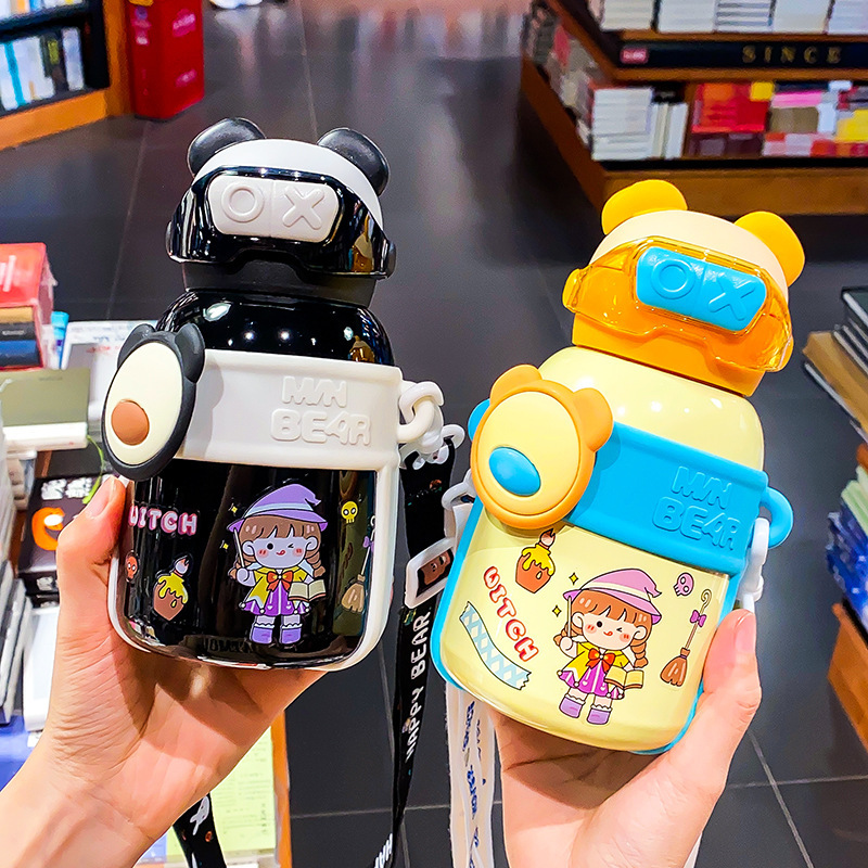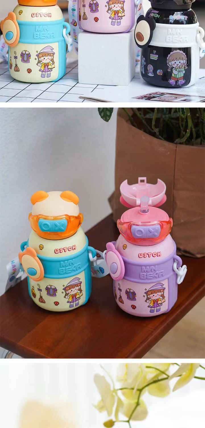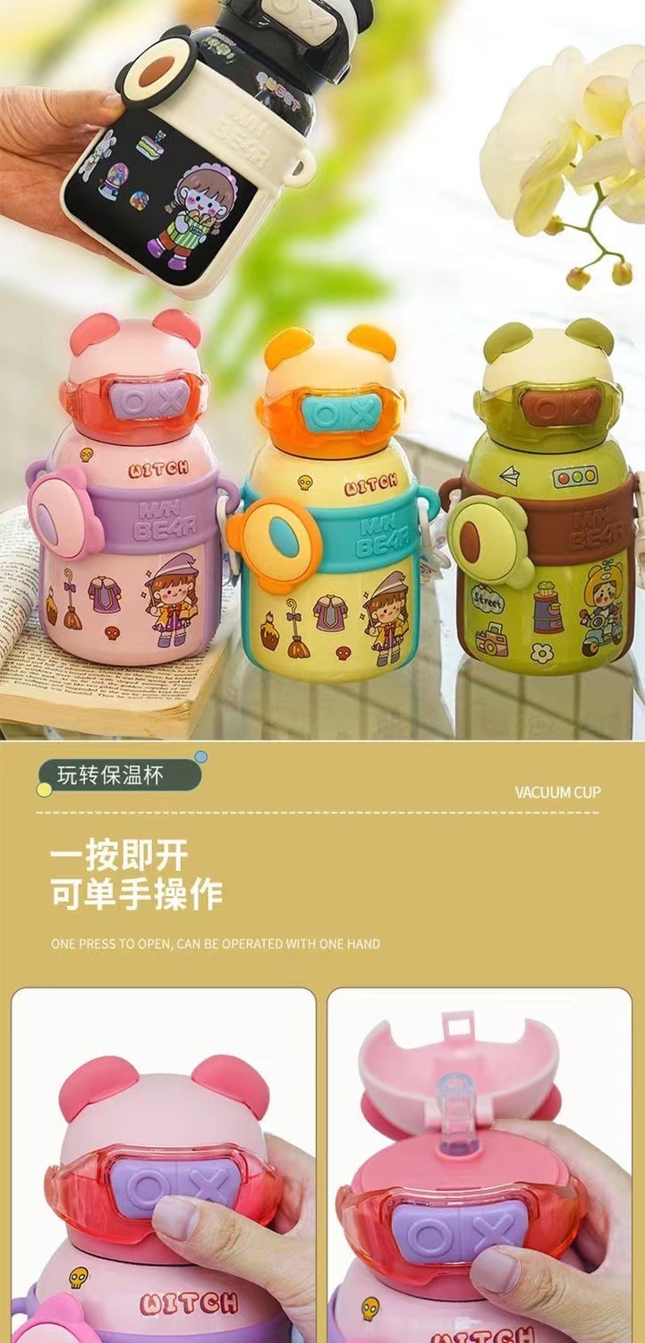 新款可爱316不锈钢萌熊儿童保温杯吸管水杯幼儿园宝宝水壶批发