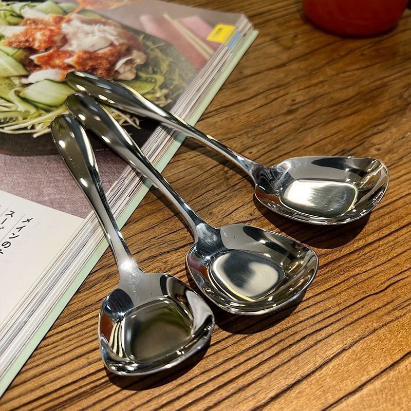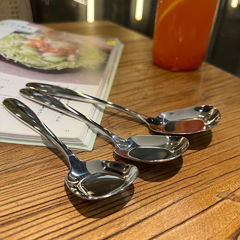 不锈钢勺子高颜值干饭勺甜品咖啡勺家用儿童吃饭勺汤勺韩式平底勺