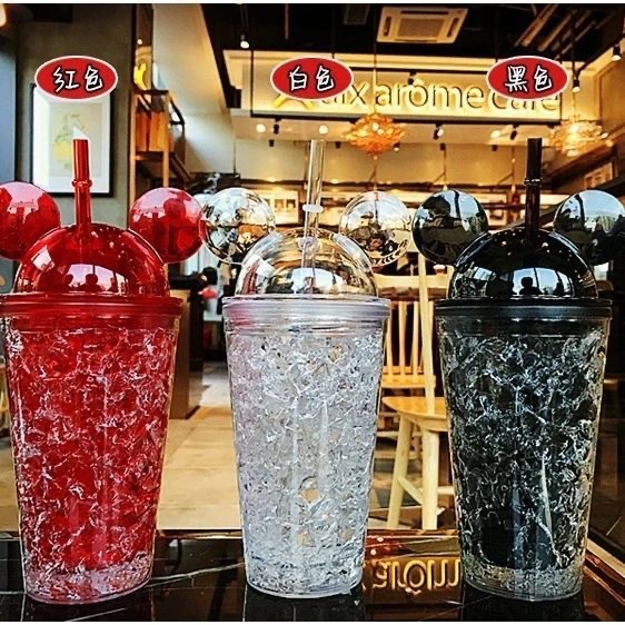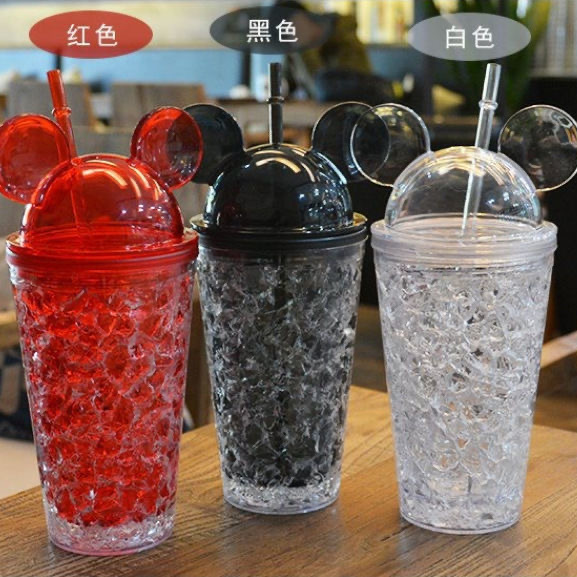 可爱果汁杯碎冰杯塑料双层制冷吸管杯成人夏日冰酷杯子学生随手杯