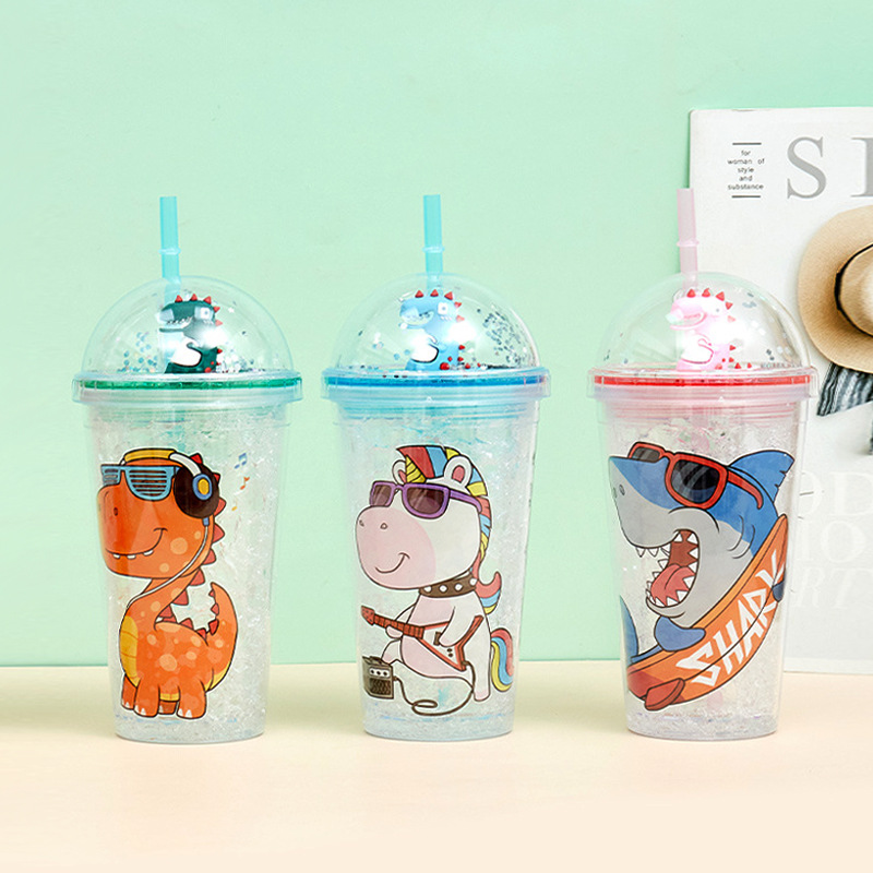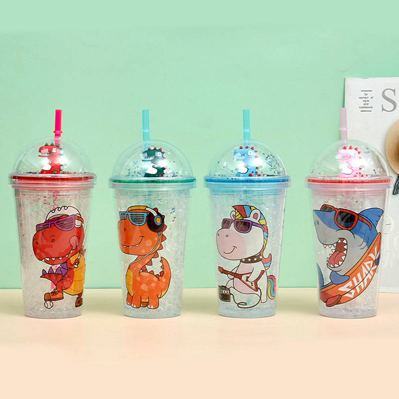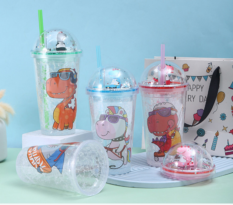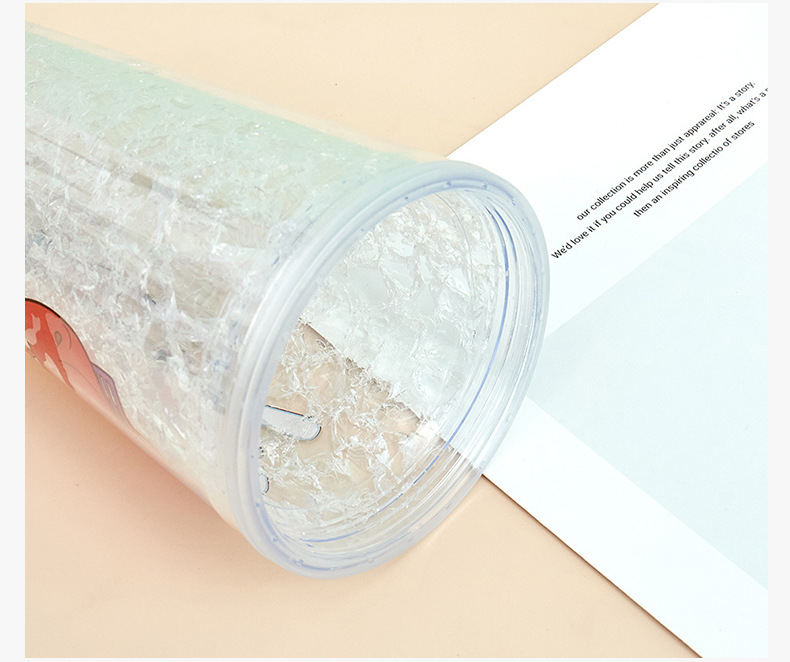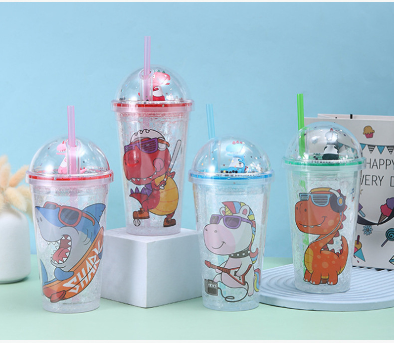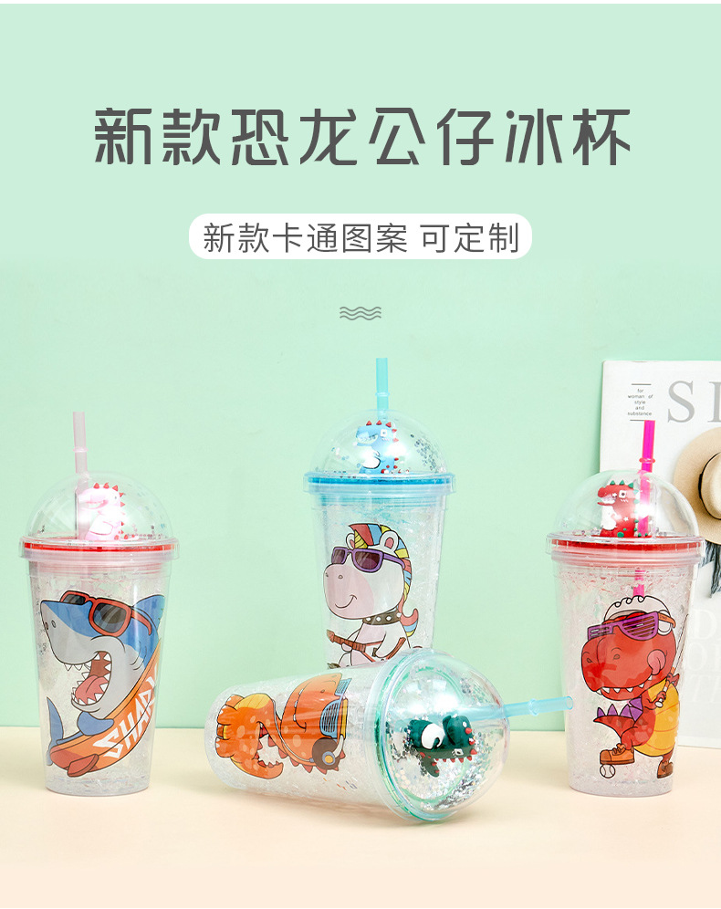 新款创意夏日冰杯学生情侣卡通可爱公仔ins风塑料双层碎冰吸管杯