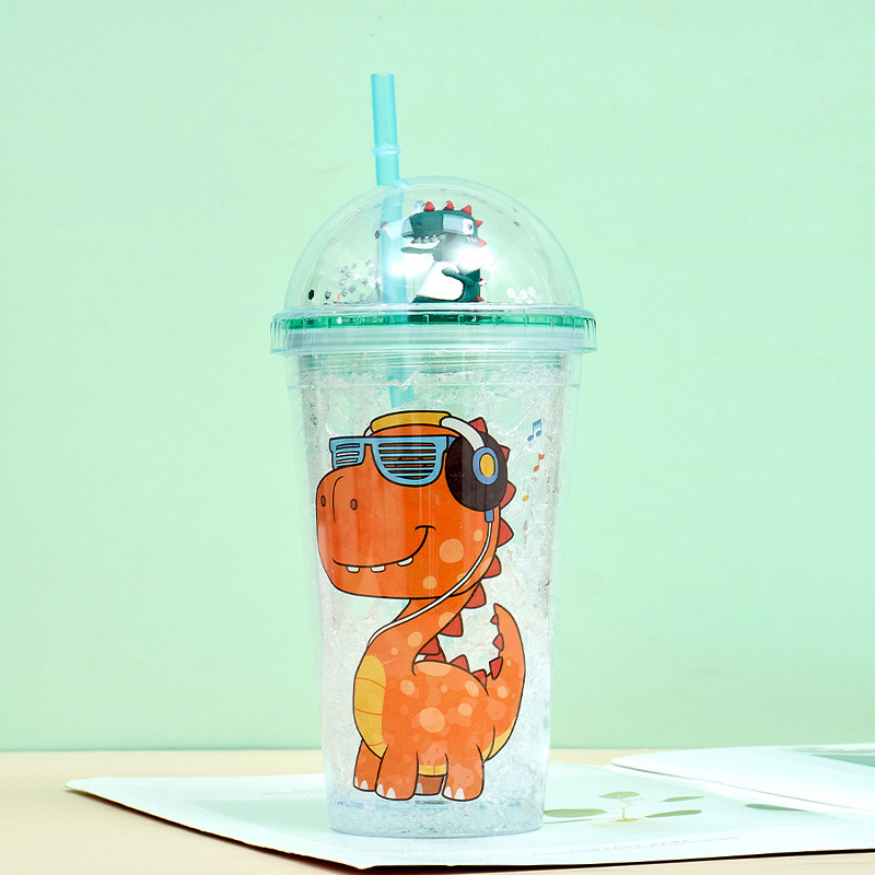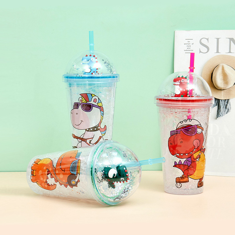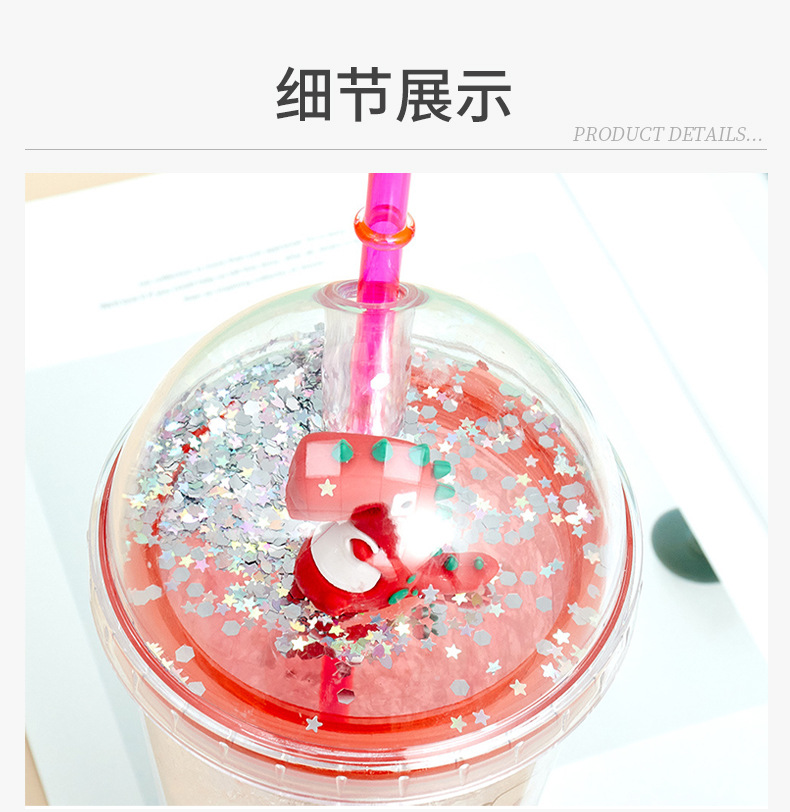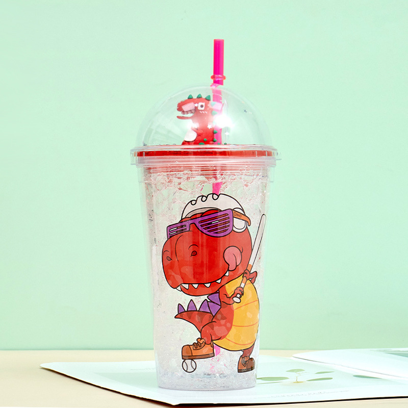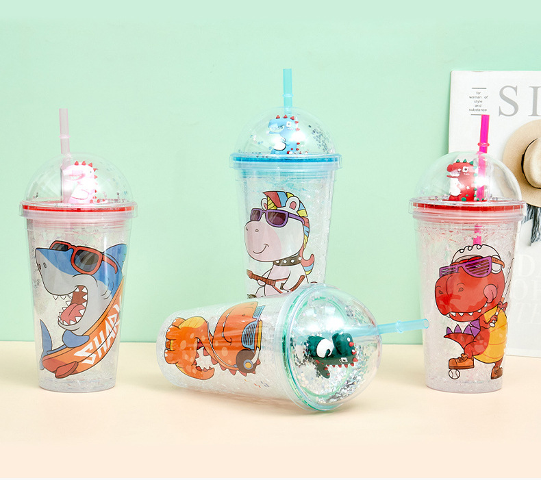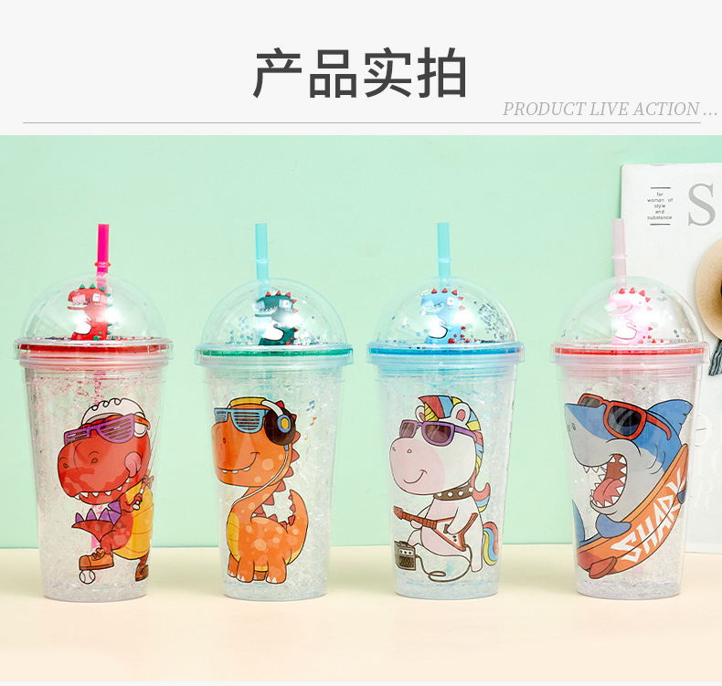 新款创意夏日冰杯学生情侣卡通可爱公仔ins风塑料双层碎冰吸管杯
