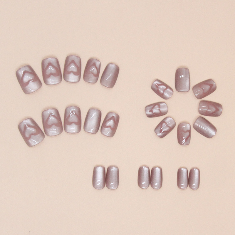 追光猫眼穿戴甲可拆卸爱心美甲片指甲片美甲贴片短款芭蕾甲24片