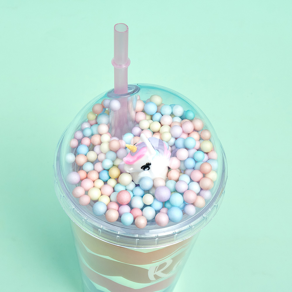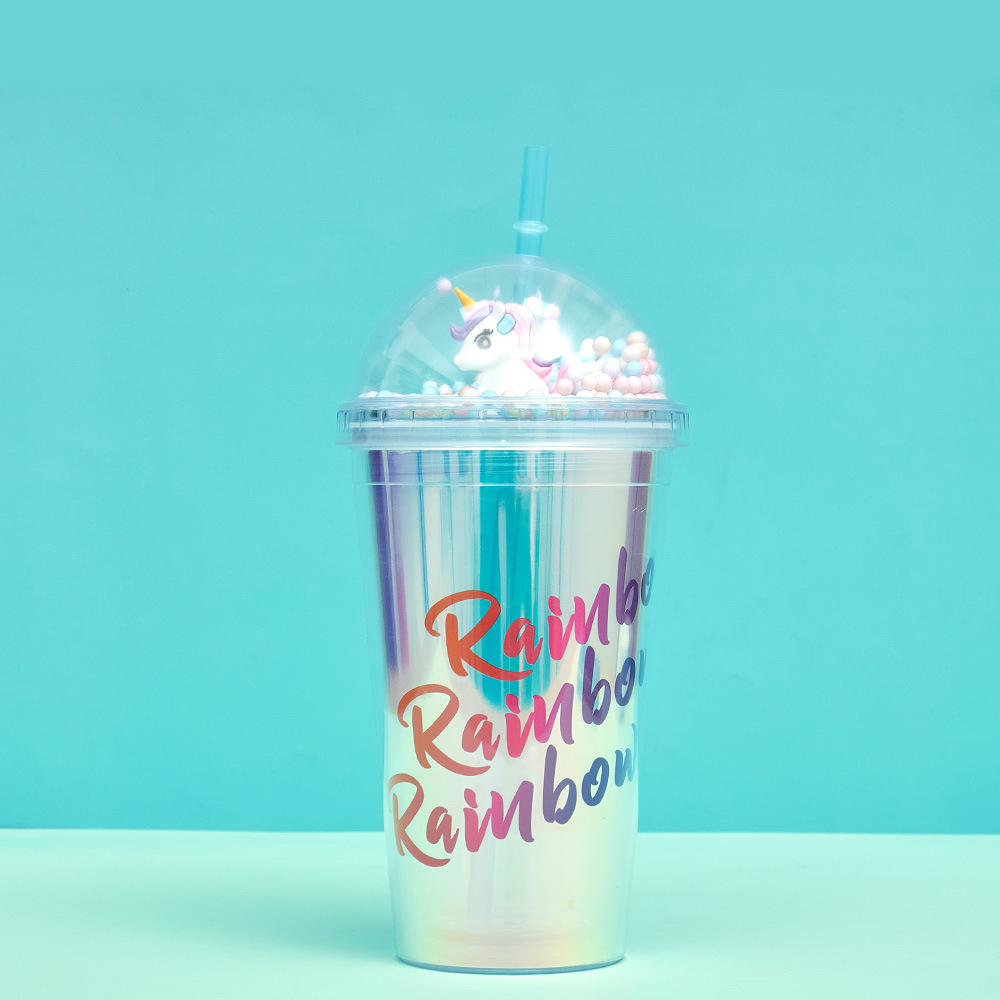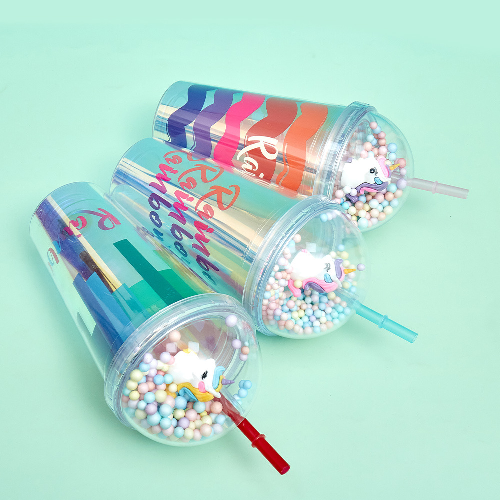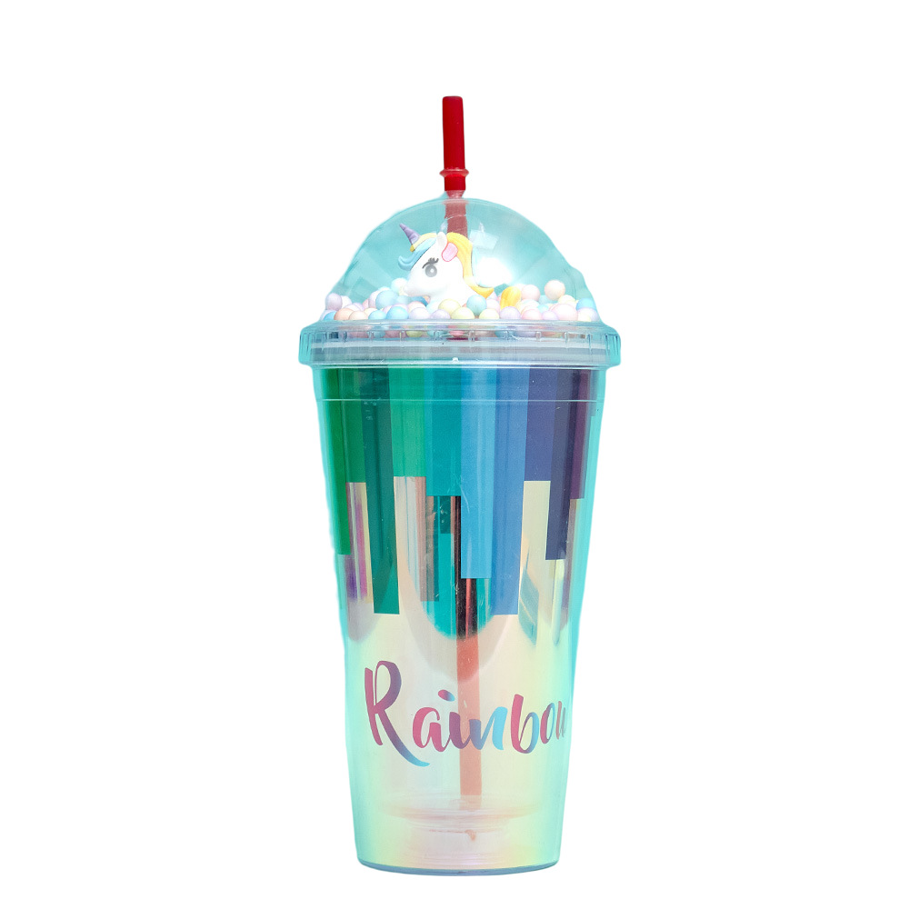 跨境新品彩虹波浪水杯网红杯大容量吸管杯简约可爱风双层塑料水杯