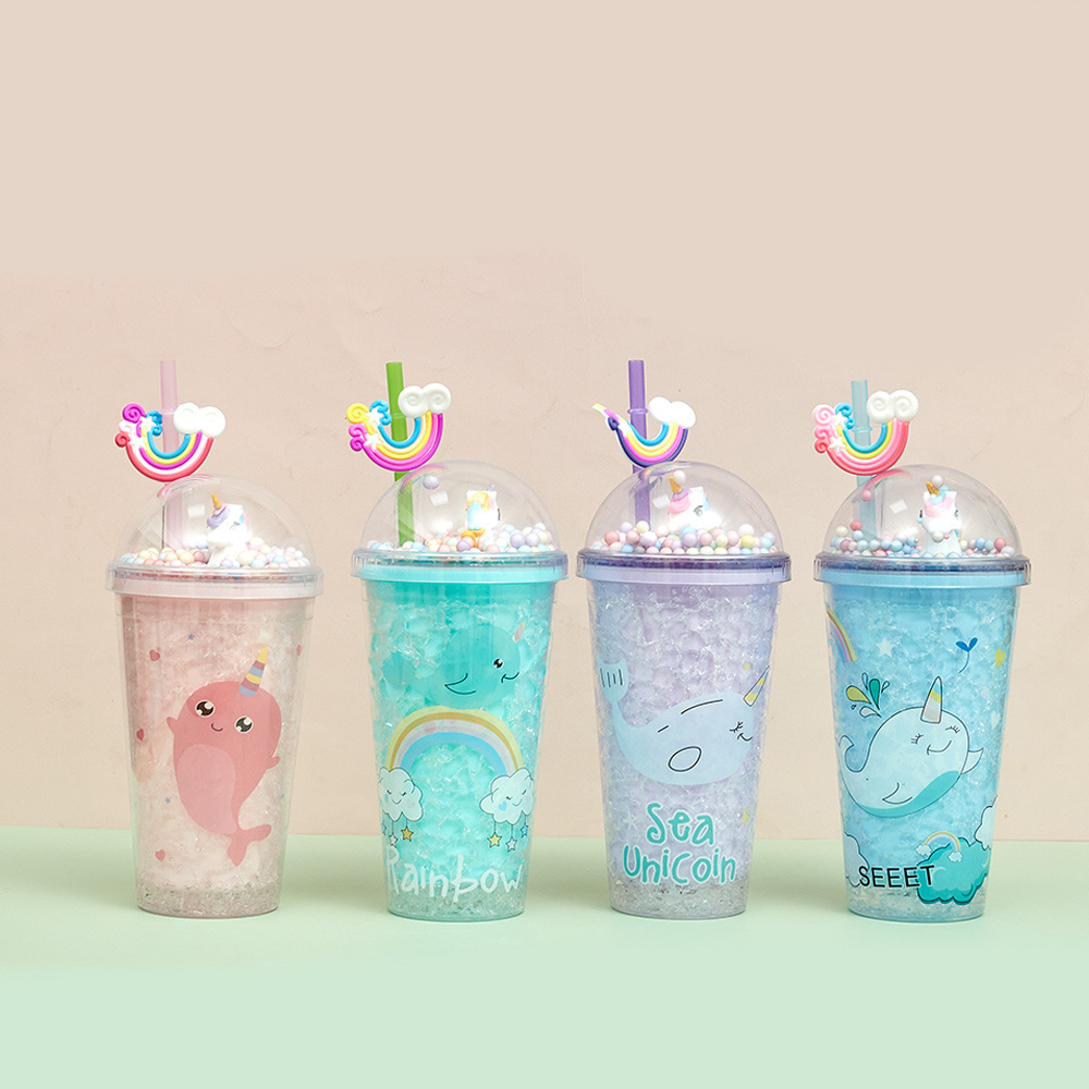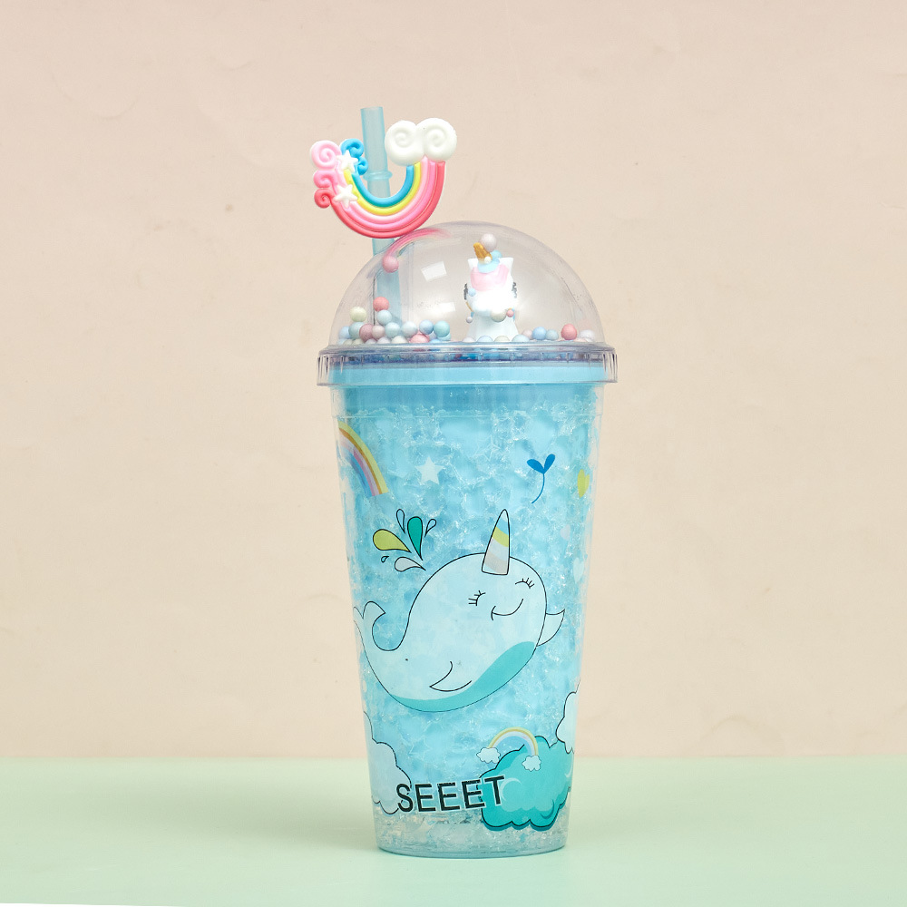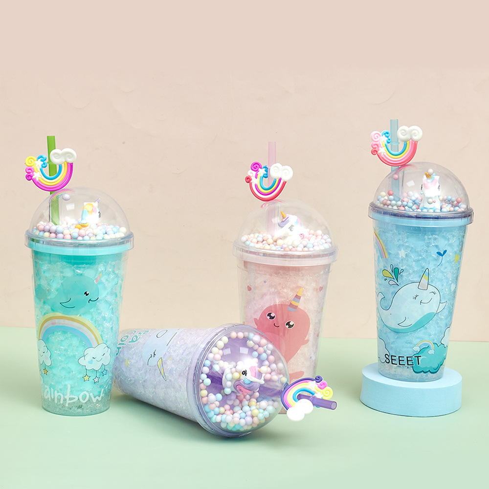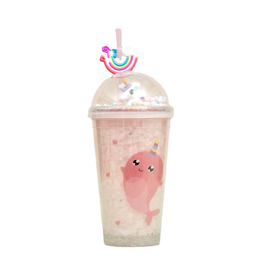 夏日碎冰杯可爱鲸鱼吸管式水杯卡通儿童便携水杯成人简约礼品杯子