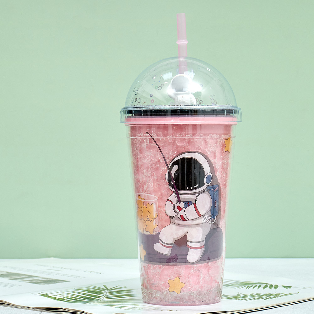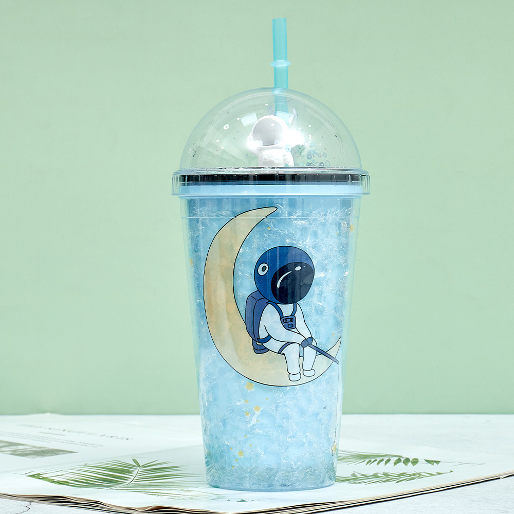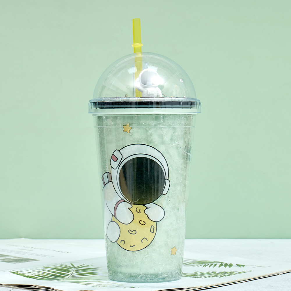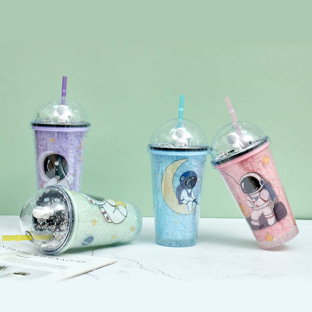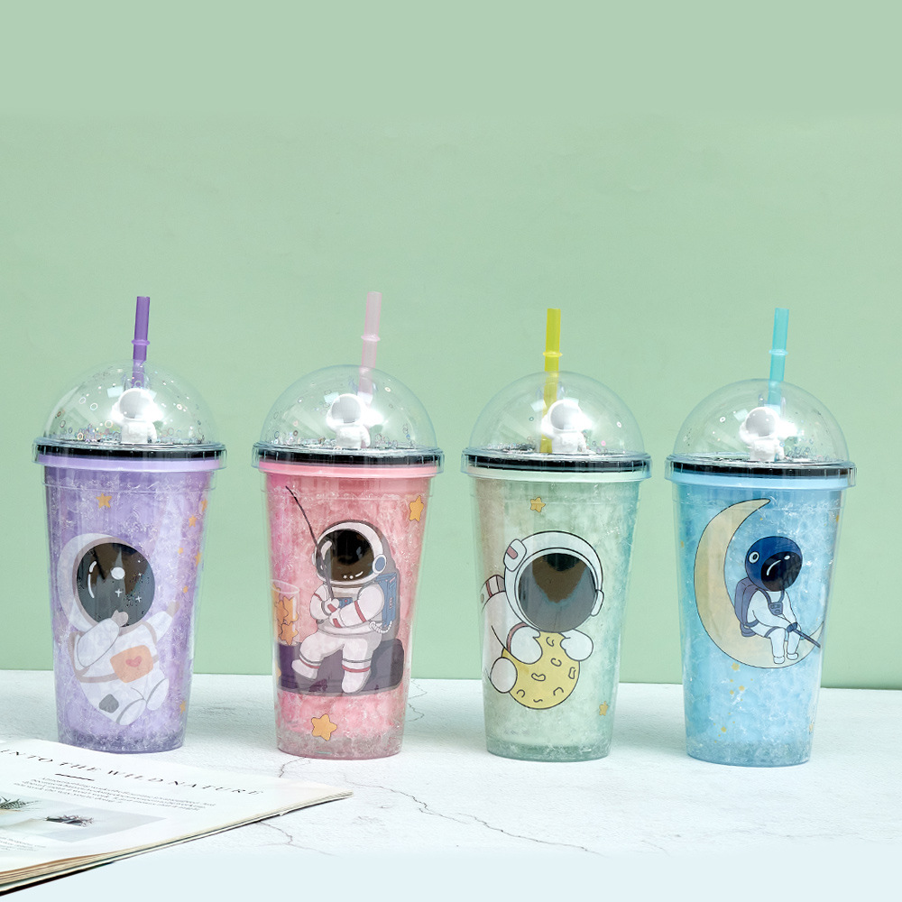 最新款宇航员带盖吸管冰杯塑料杯大容量便携简约公仔创意双层杯子
