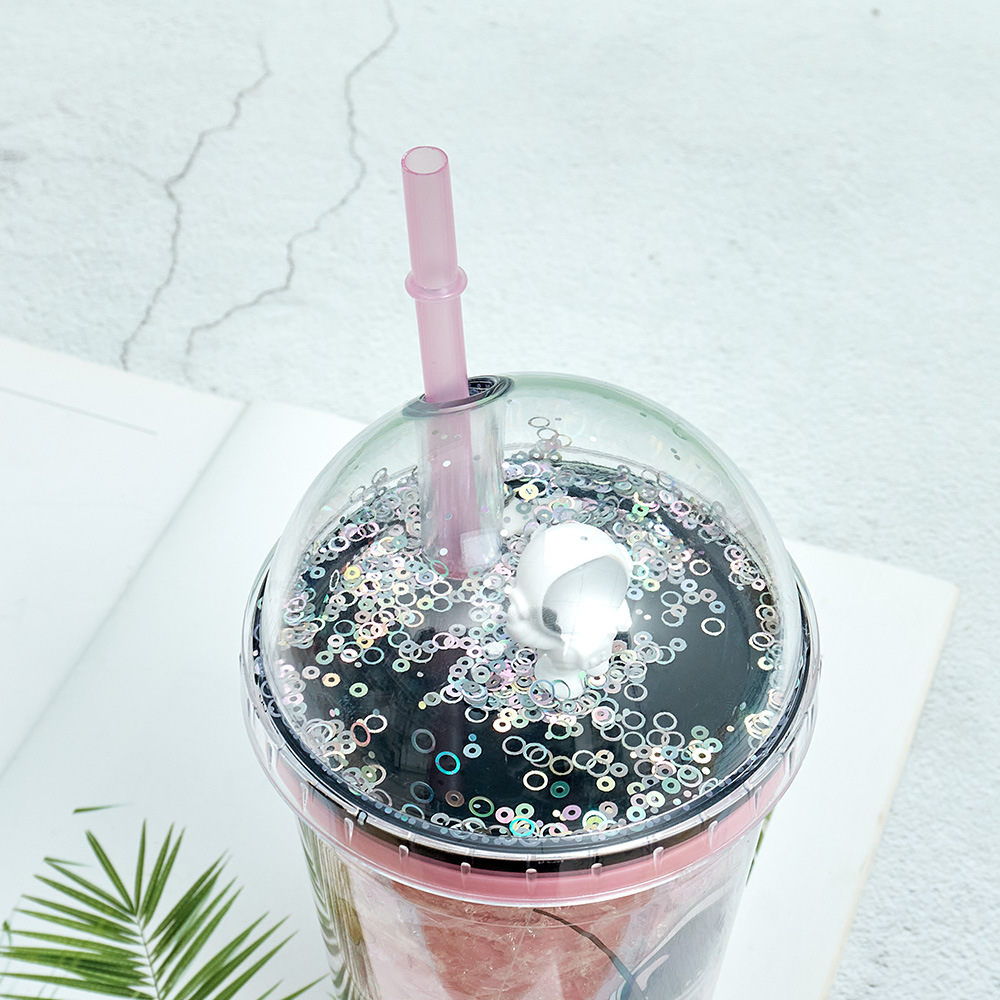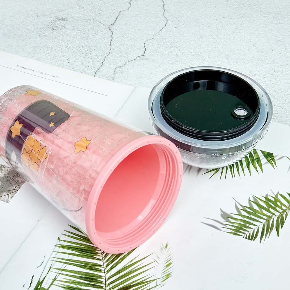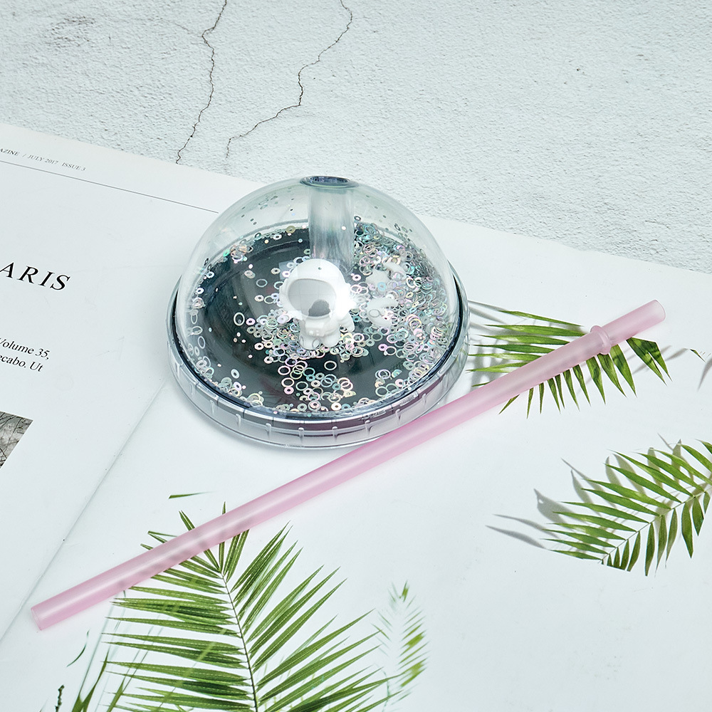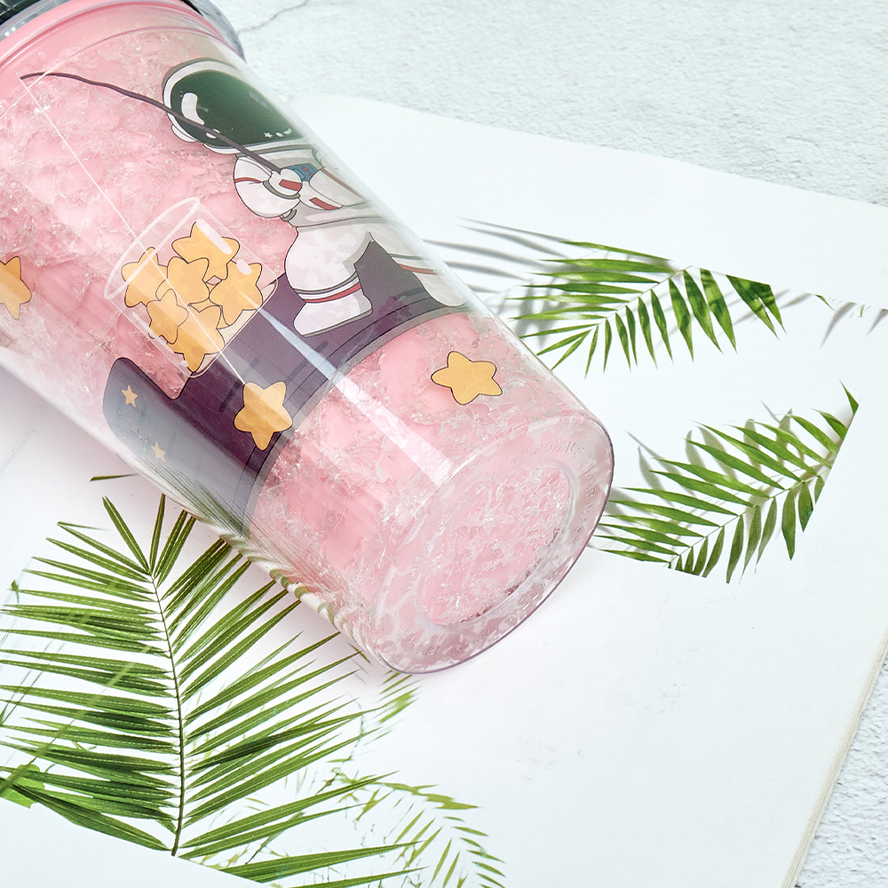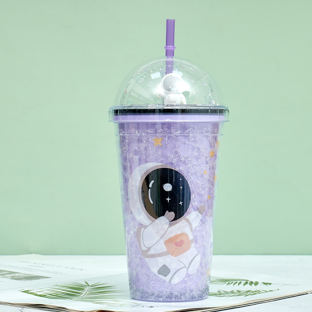 最新款宇航员带盖吸管冰杯塑料杯大容量便携简约公仔创意双层杯子