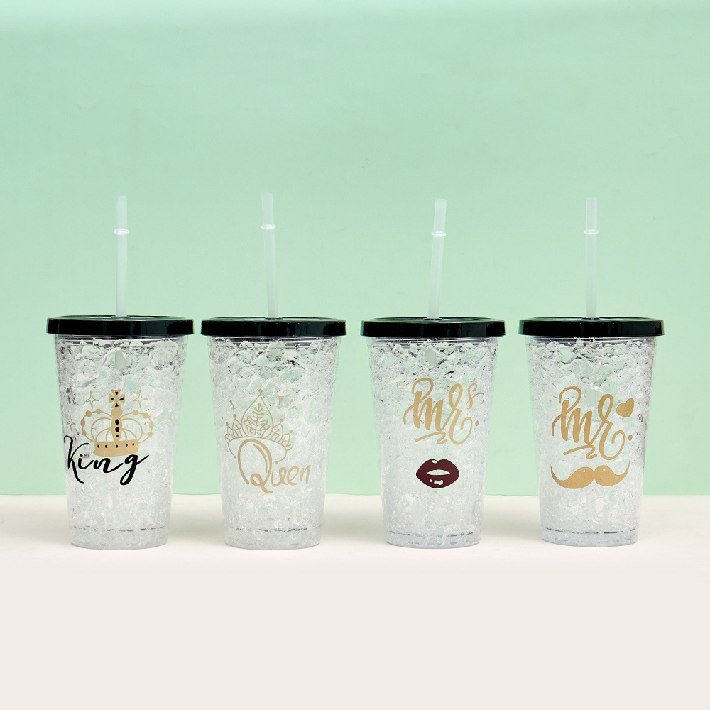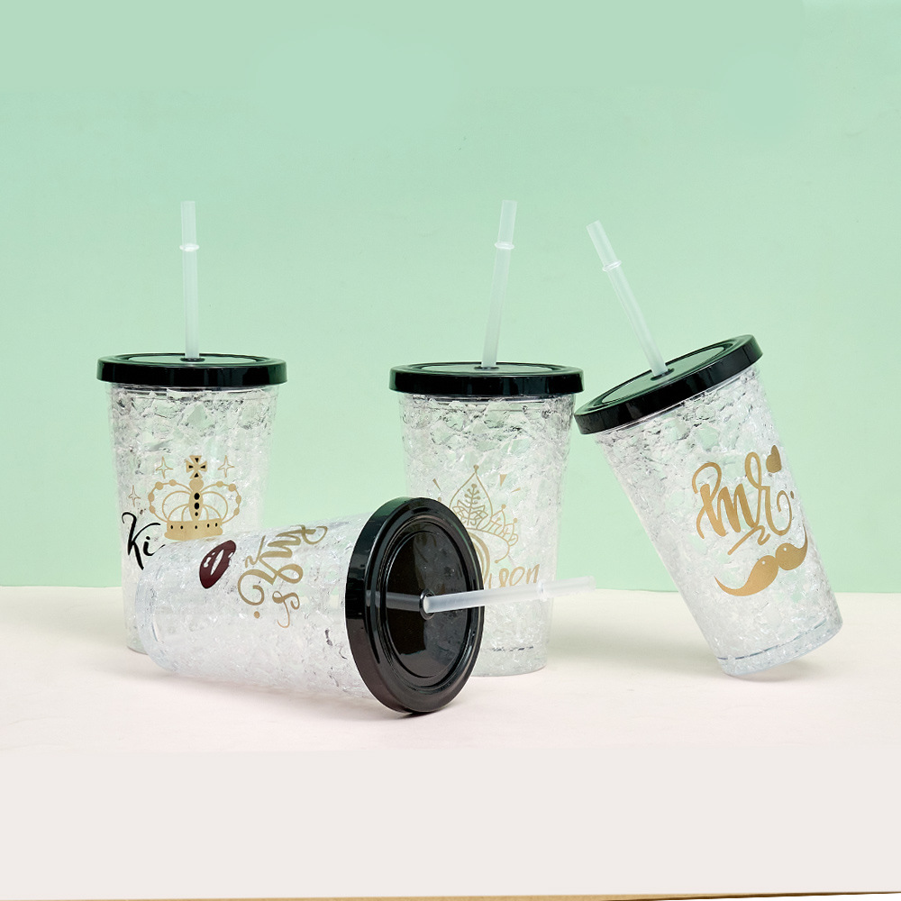 美式英文便携随行杯简约吸管式塑料水杯家用喝水杯子礼品杯批发