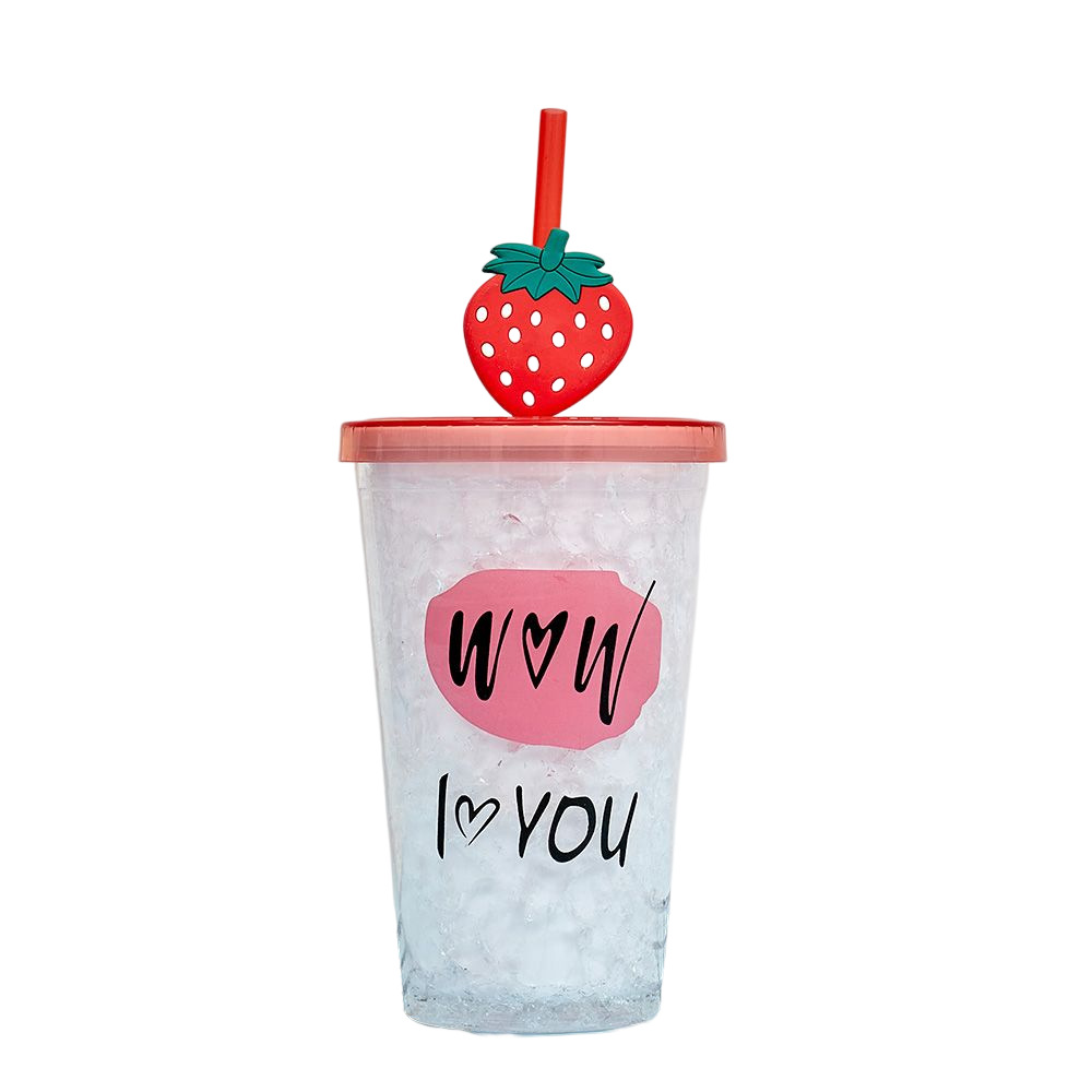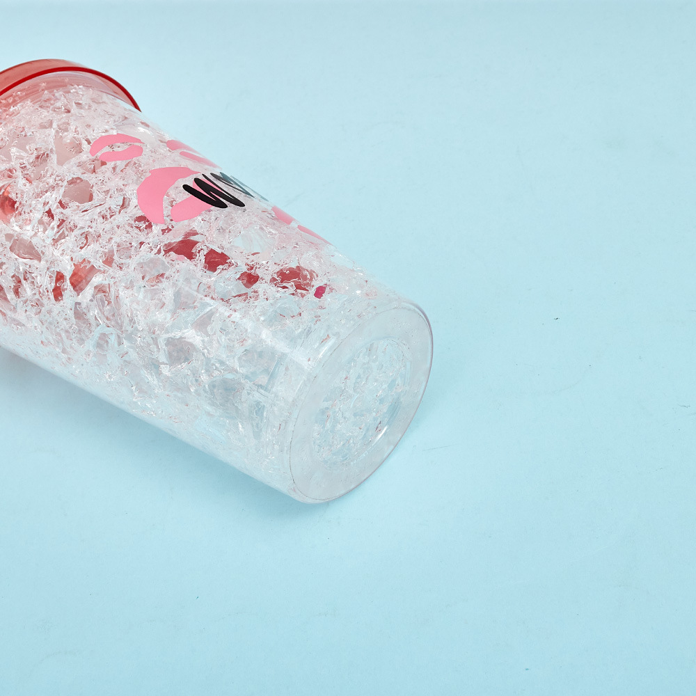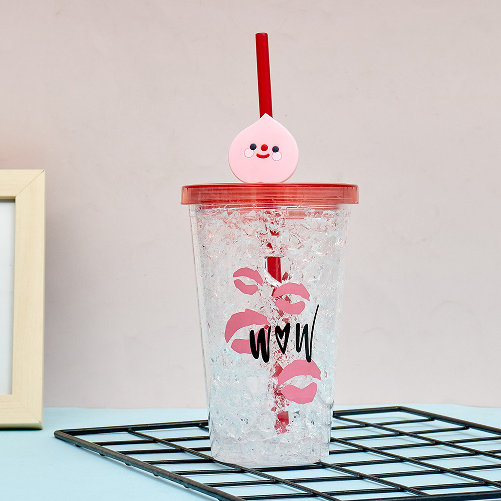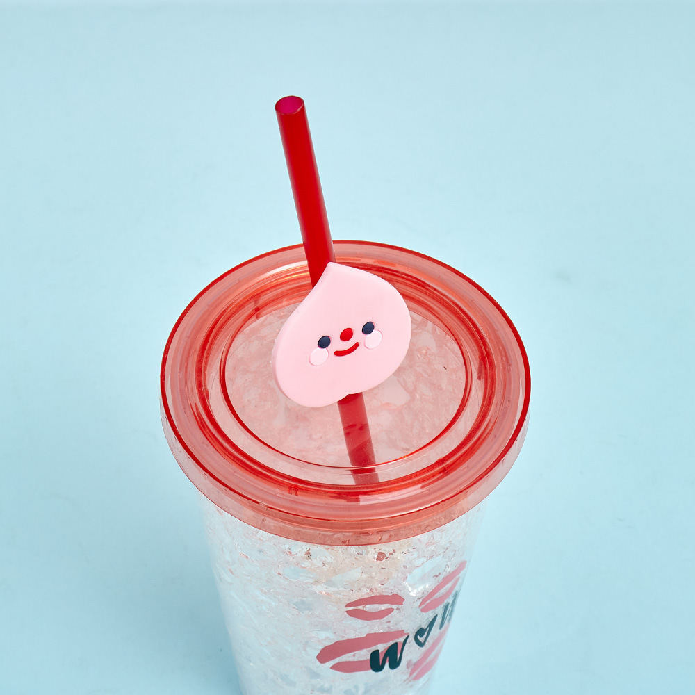 夏季爱心吸管杯塑料杯双层便携碎冰杯小清新酷爽制冷带盖随手杯