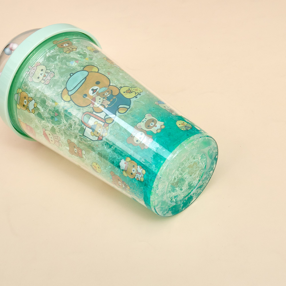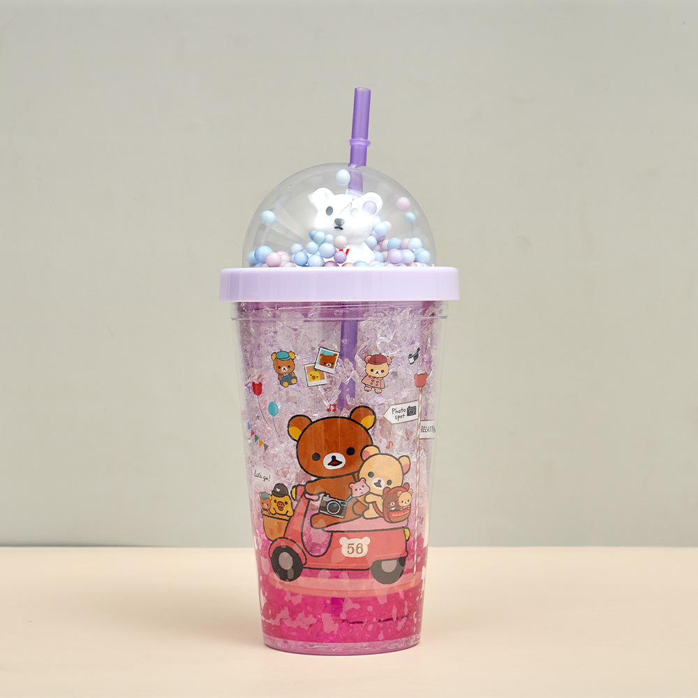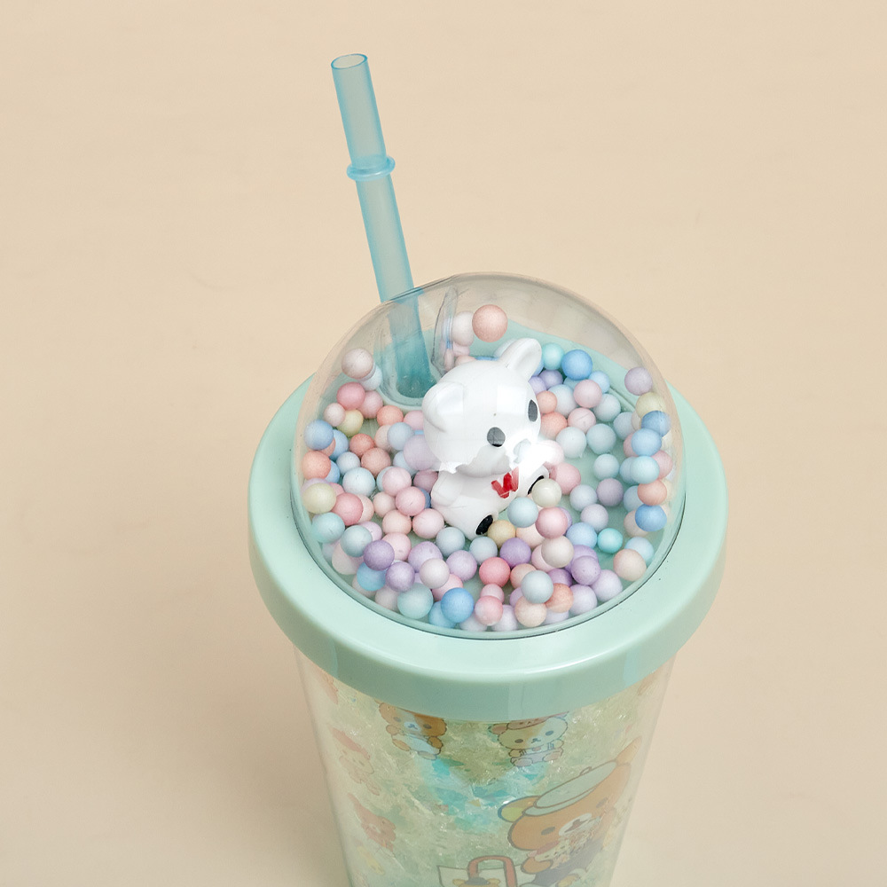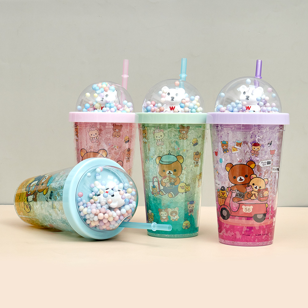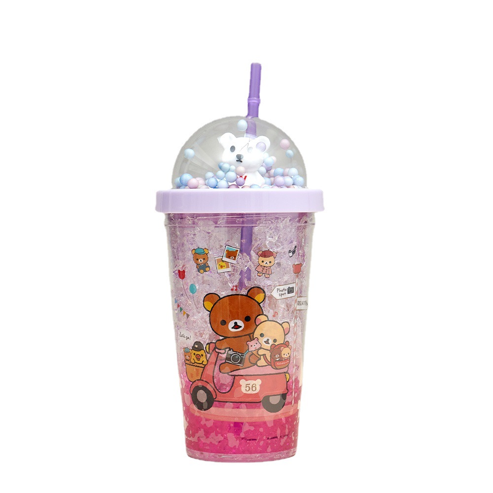 卡通小熊公仔塑料水杯双层亮片吸管杯厂家批发夏季车载随手碎冰杯