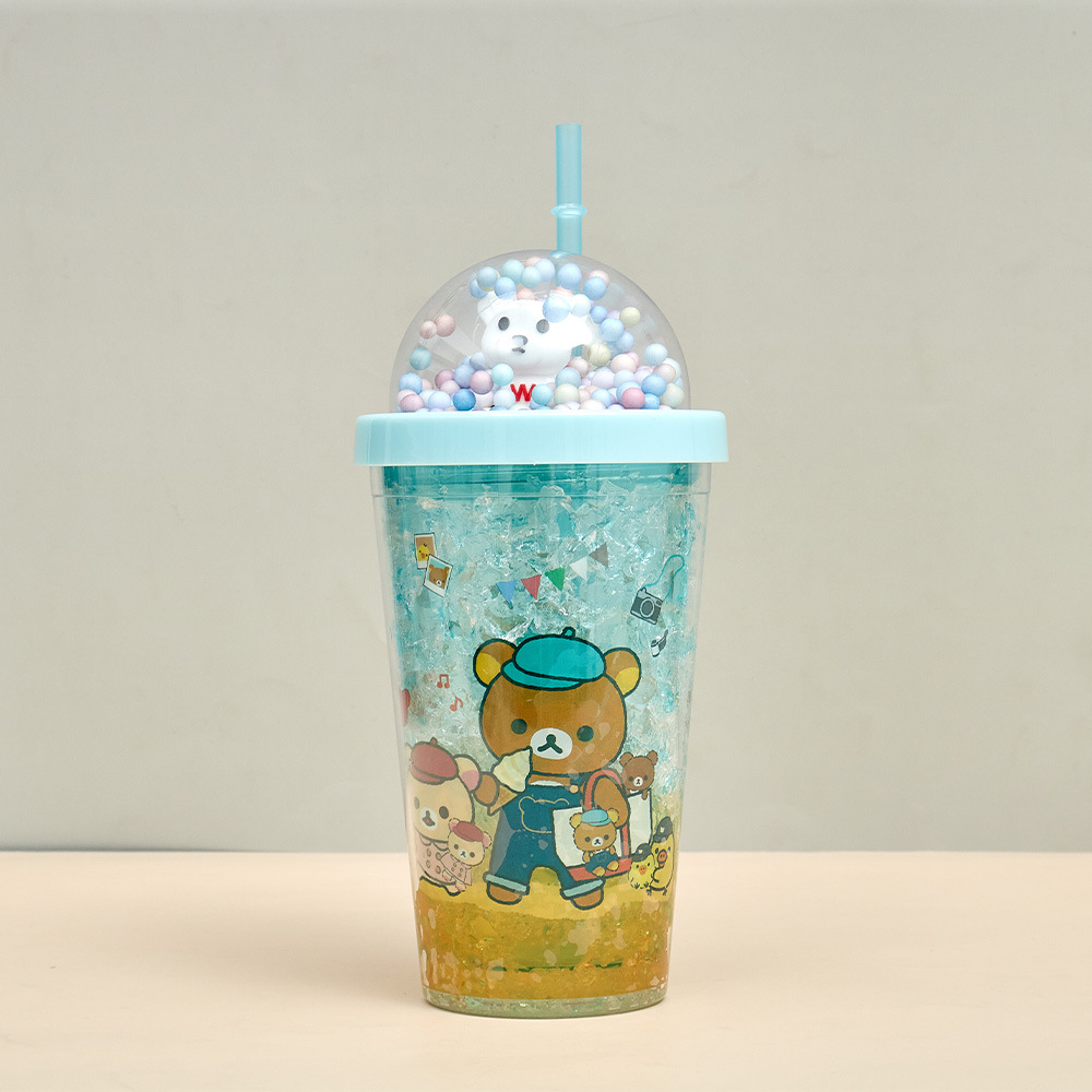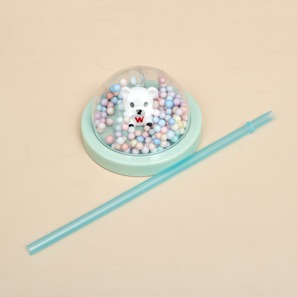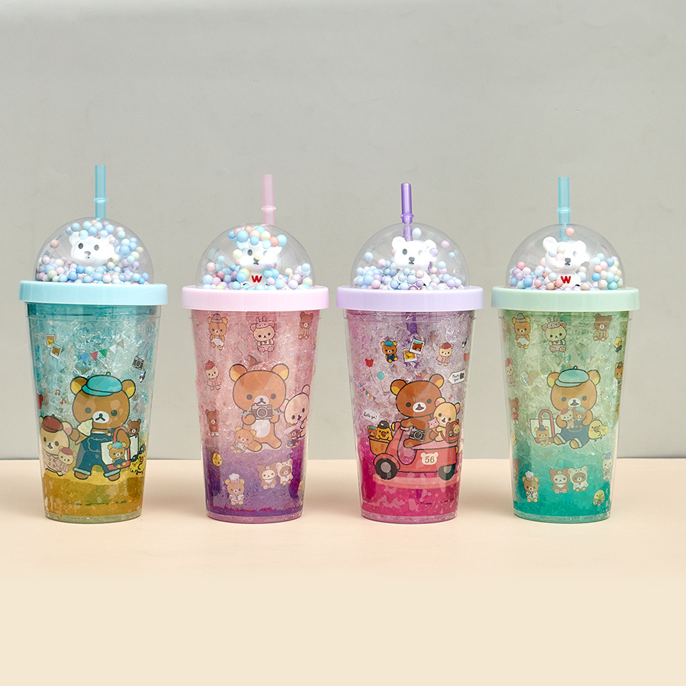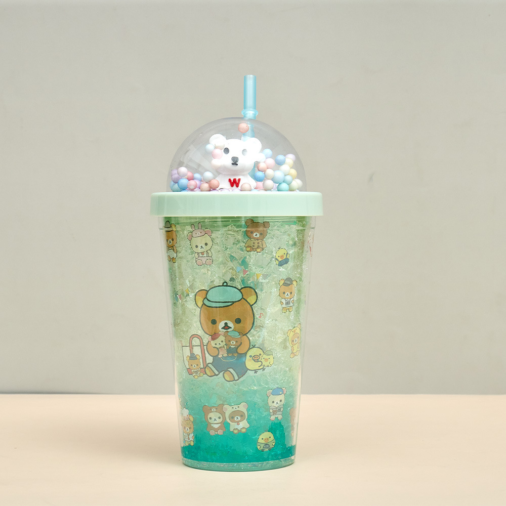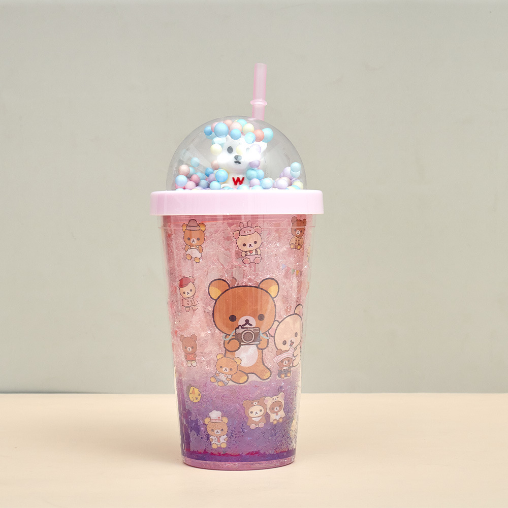 卡通小熊公仔塑料水杯双层亮片吸管杯厂家批发夏季车载随手碎冰杯