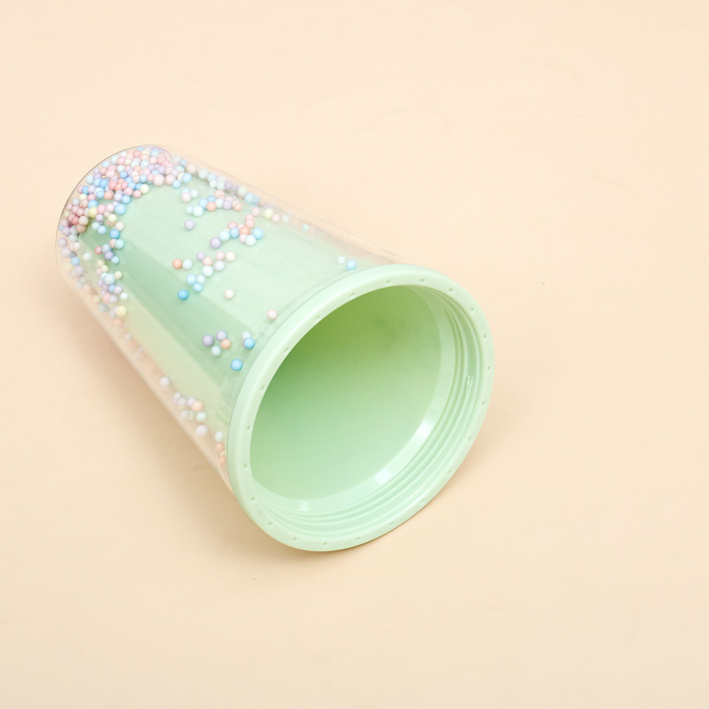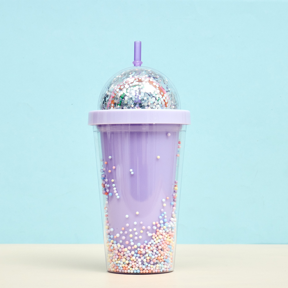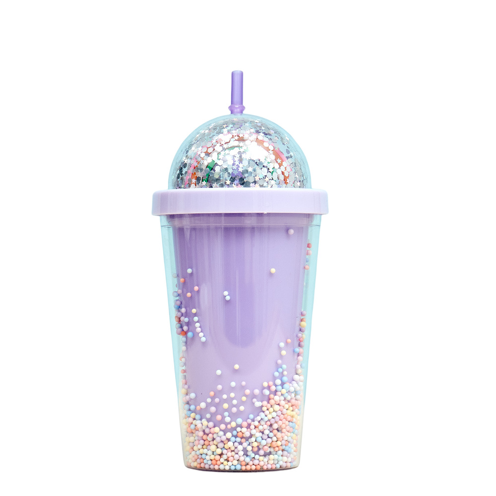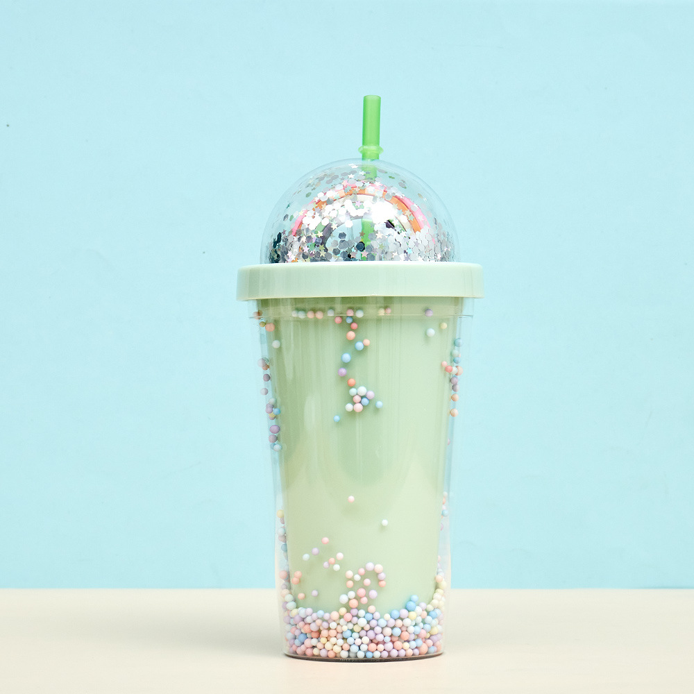 创意彩虹亮片杯盖塑料杯吸管水杯马卡龙色时尚双层高颜值制冷水杯