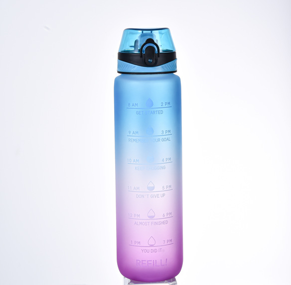 亚马逊弹跳盖渐变色塑料太空杯 骑行健身便携磨砂环保塑料水壶