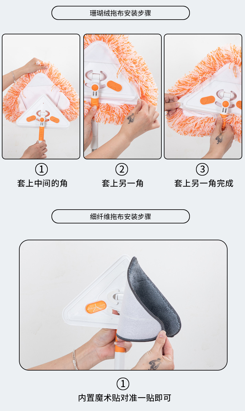 三角拖把太阳花可弯曲擦玻璃扫屋顶擦墙壁浴室厨房清洁拖把除尘掸