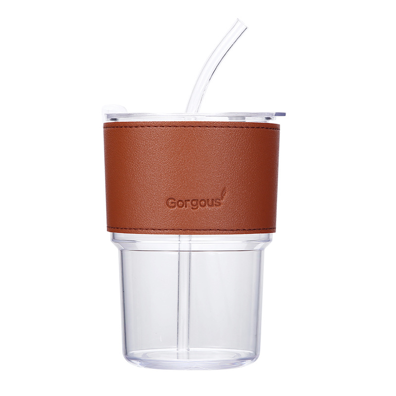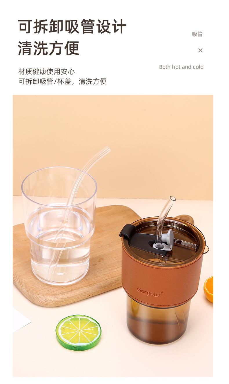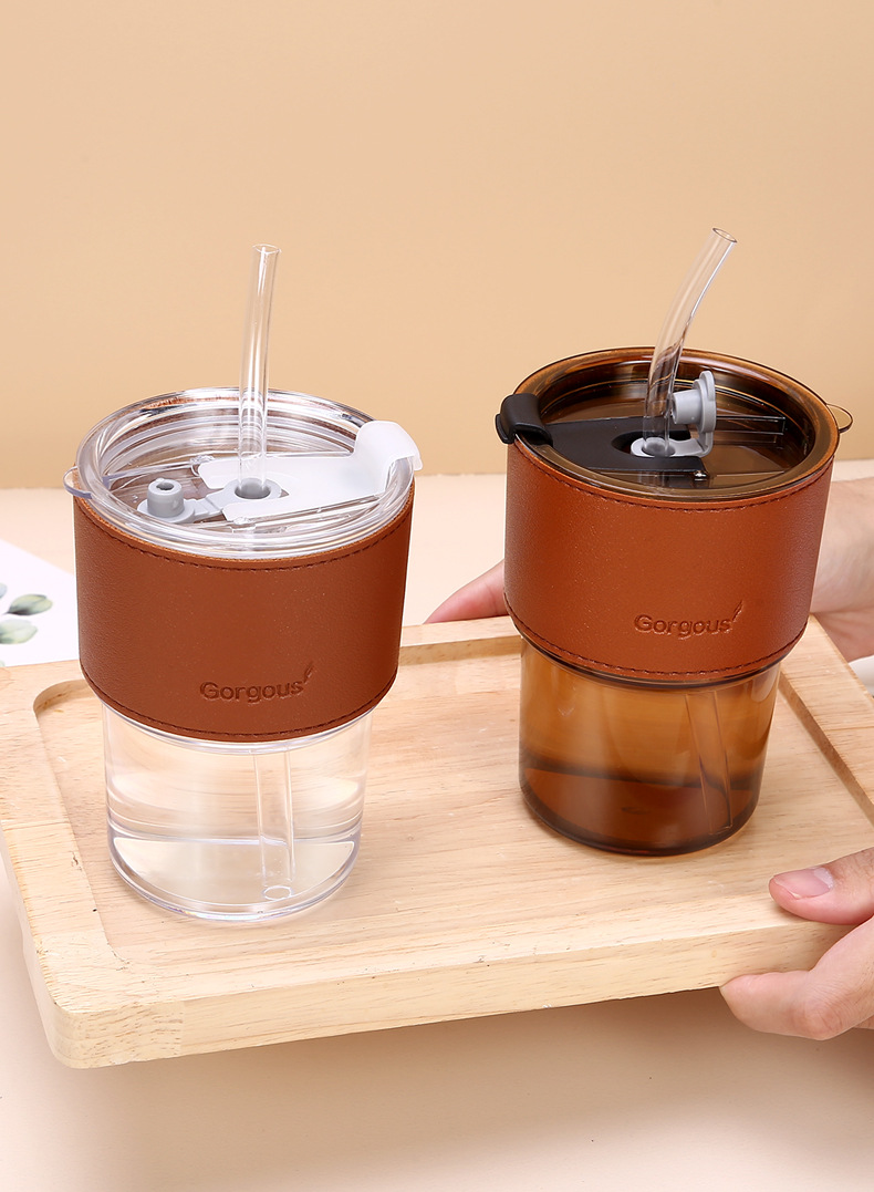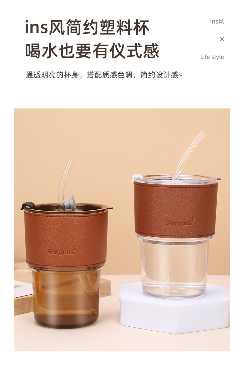 新款塑料竹节杯ins双饮杯咖啡果汁吸管杯家用学生礼品 牛奶杯批发