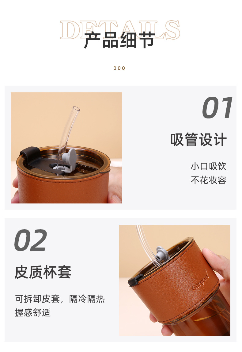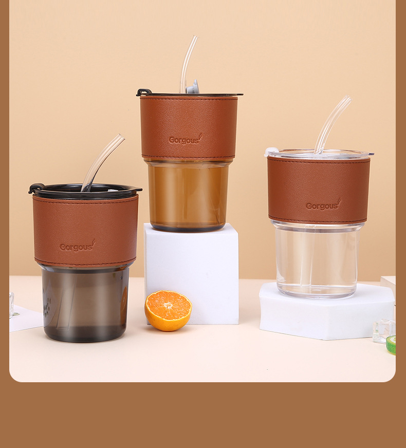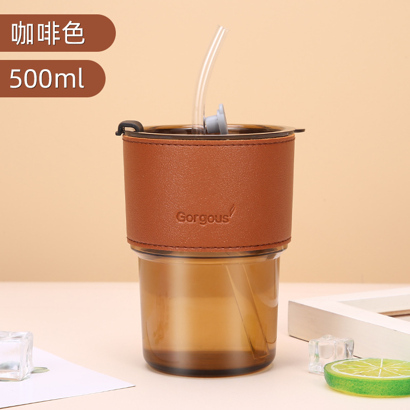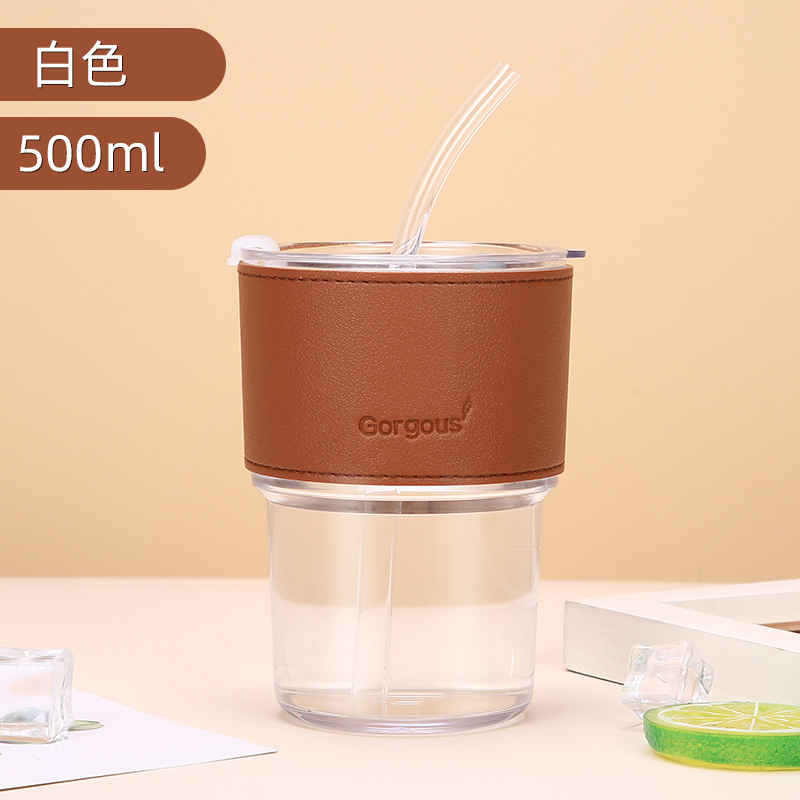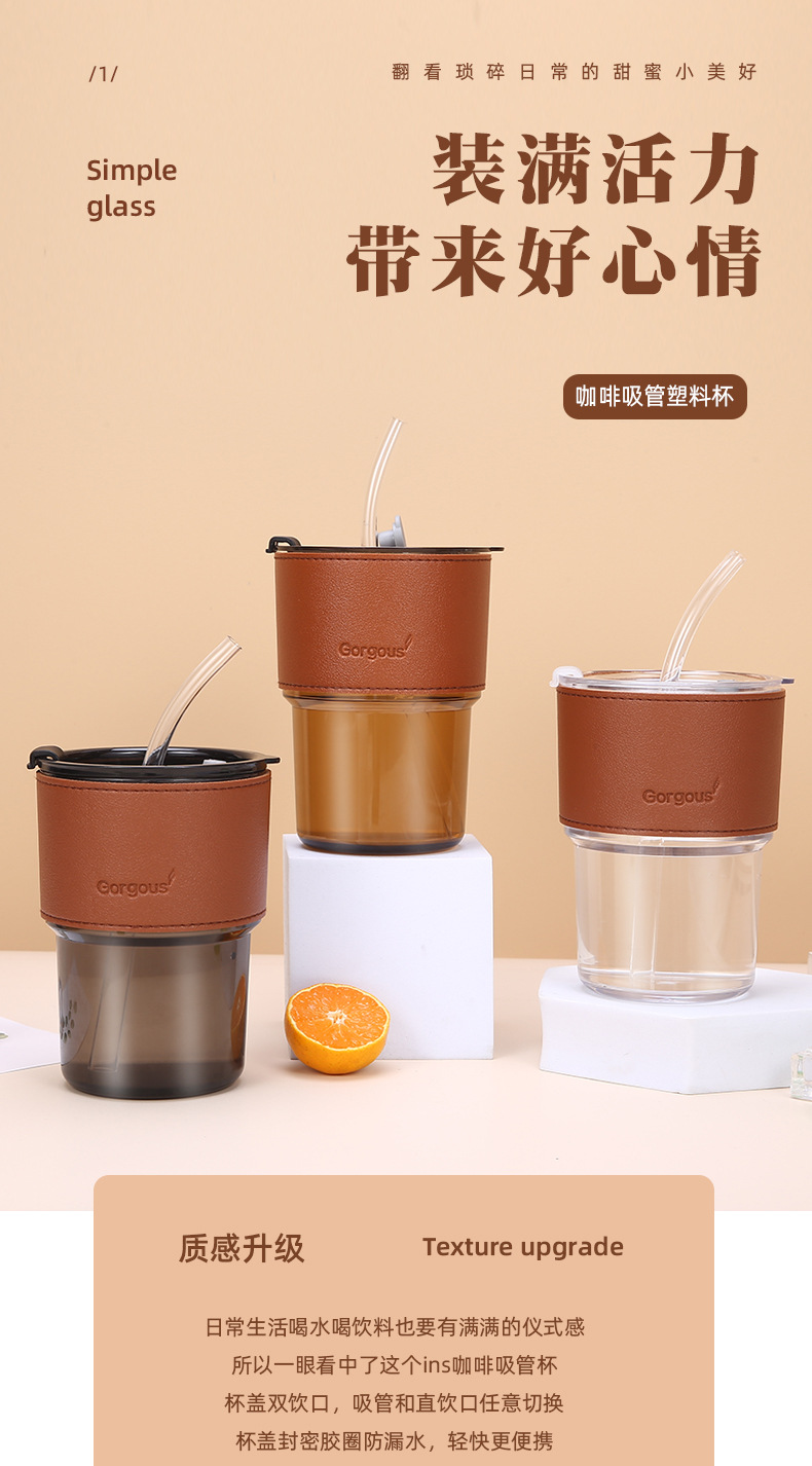 新款塑料竹节杯ins双饮杯咖啡果汁吸管杯家用学生礼品 牛奶杯批发