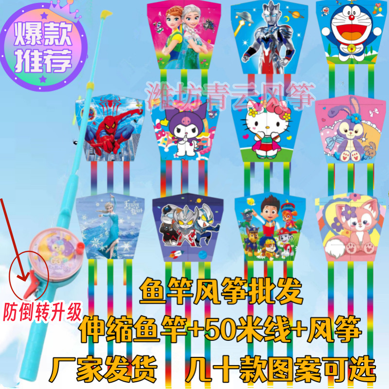 鱼竿风筝批发儿童手持鱼竿风筝塑料小风筝钓鱼竿风筝地摊批发新款