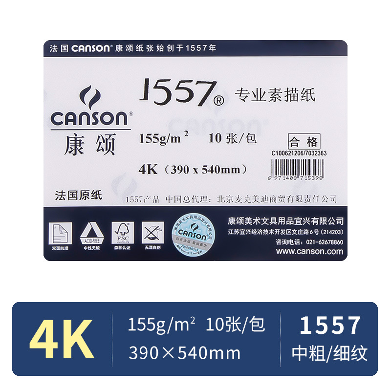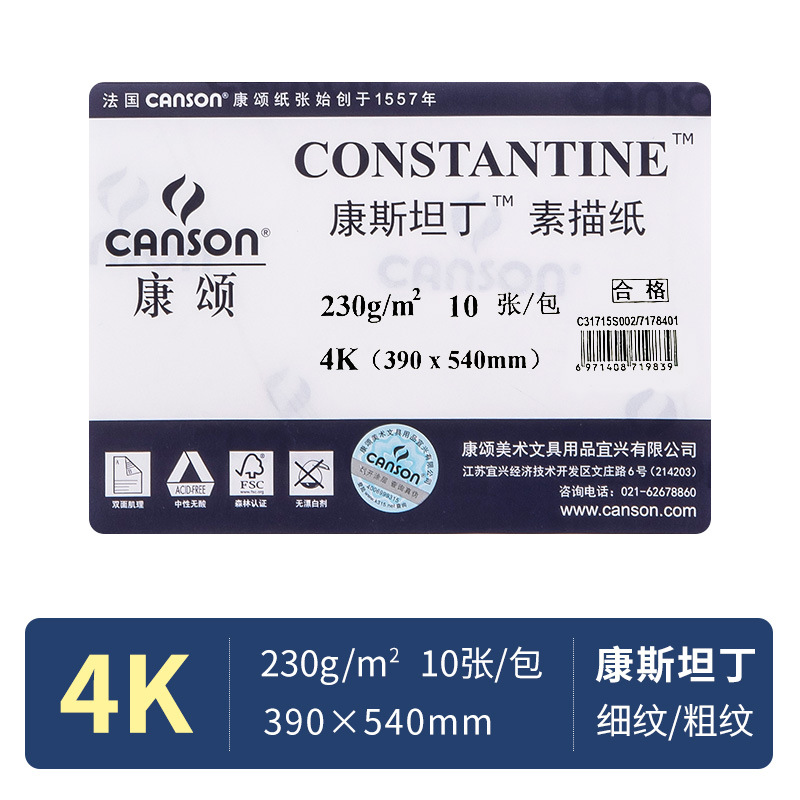 康颂素描纸8K4K加厚康斯坦丁粗细纹绘图用品美术绘画1557专业画纸