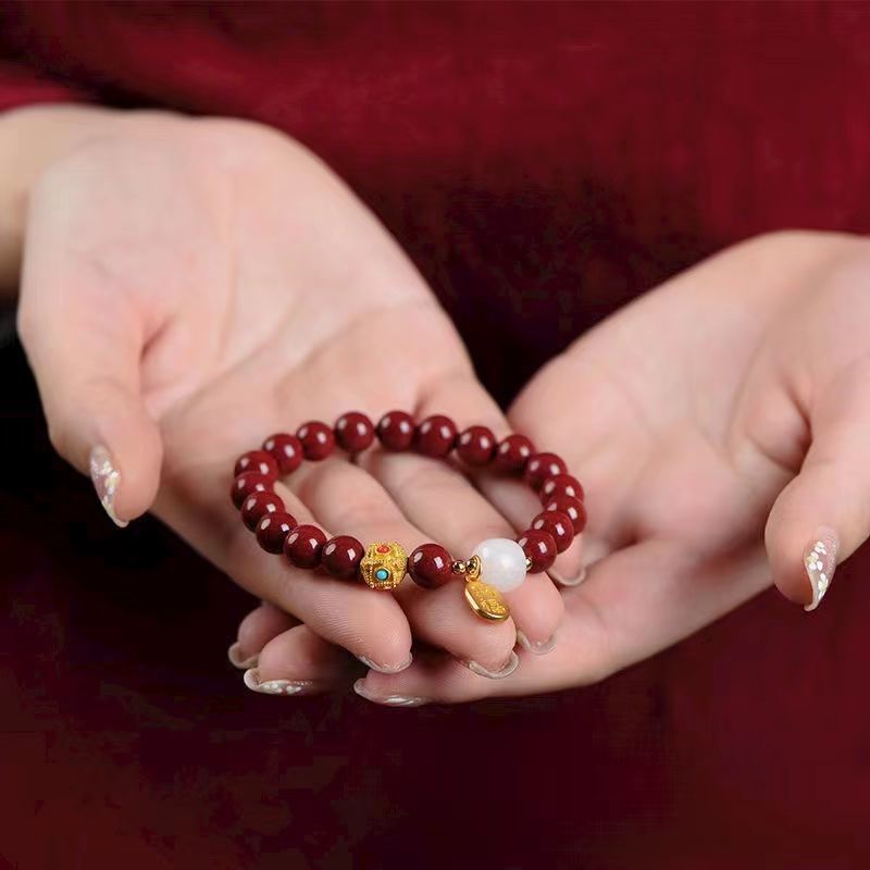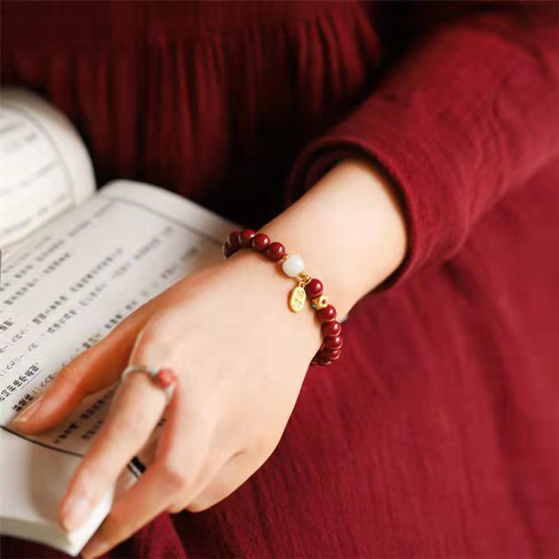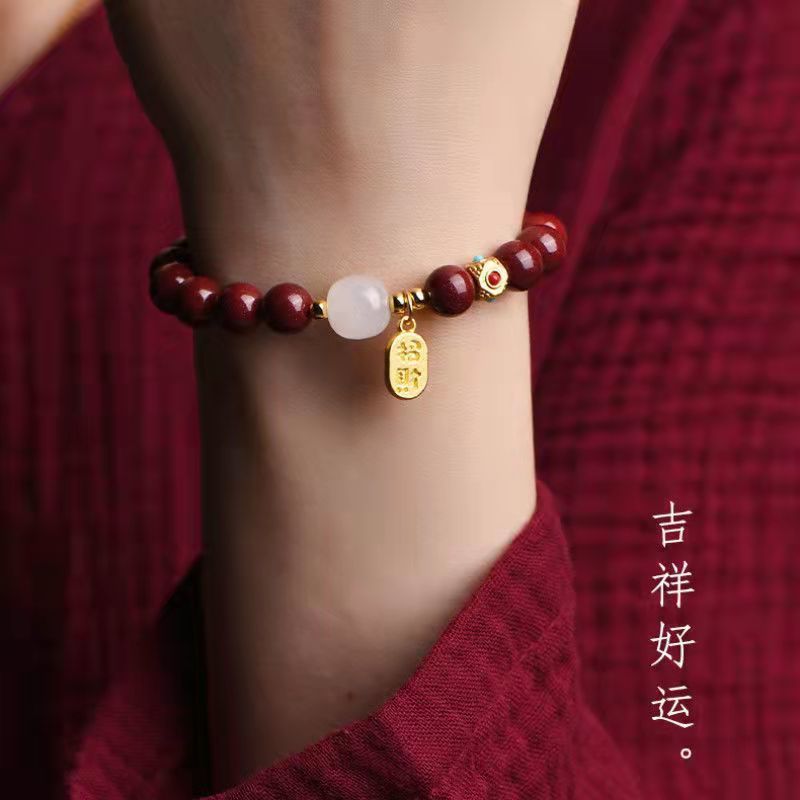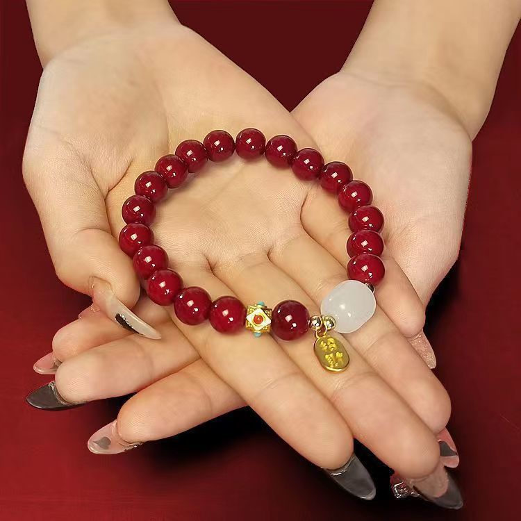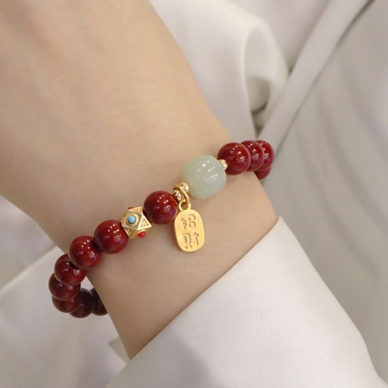 仿朱砂手链和田玉葫芦金镶玉女手链古风福禄串珠子夏饰品礼物手串