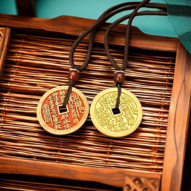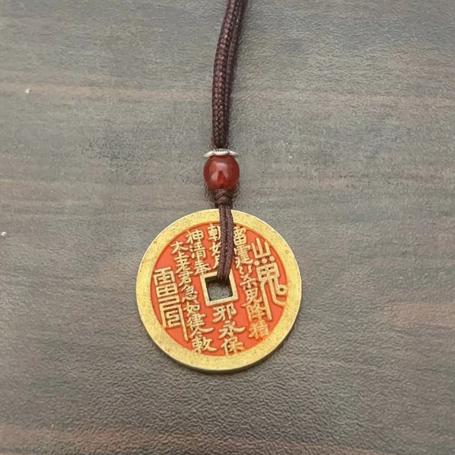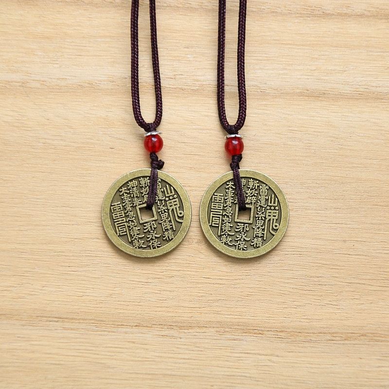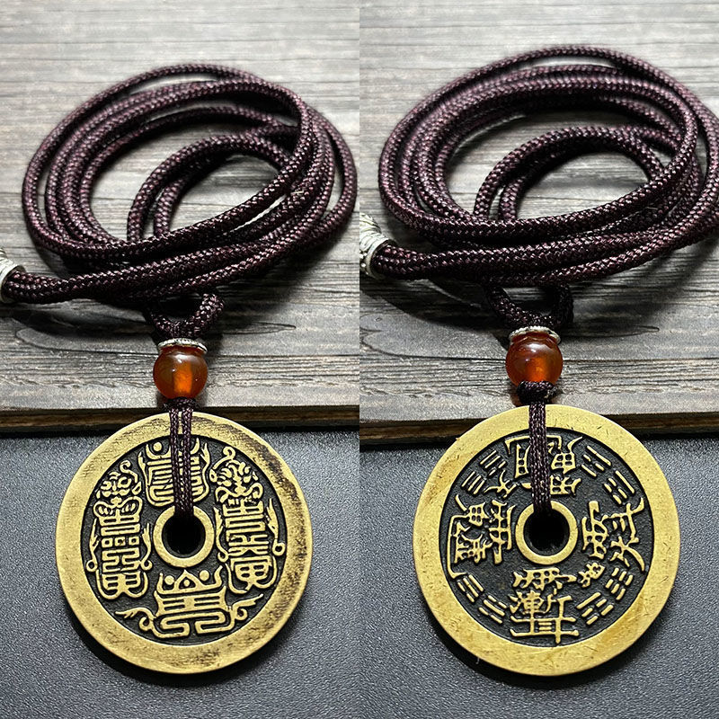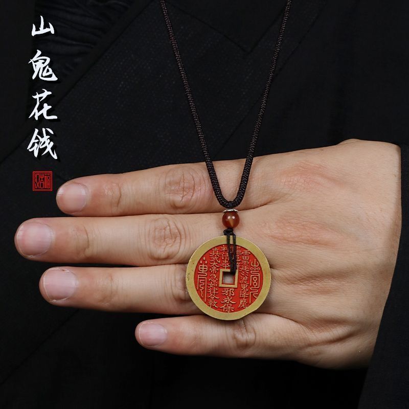 山鬼花钱吊坠项链新中式男女挂件仿古加厚黄铜古铜八卦平安扣做旧