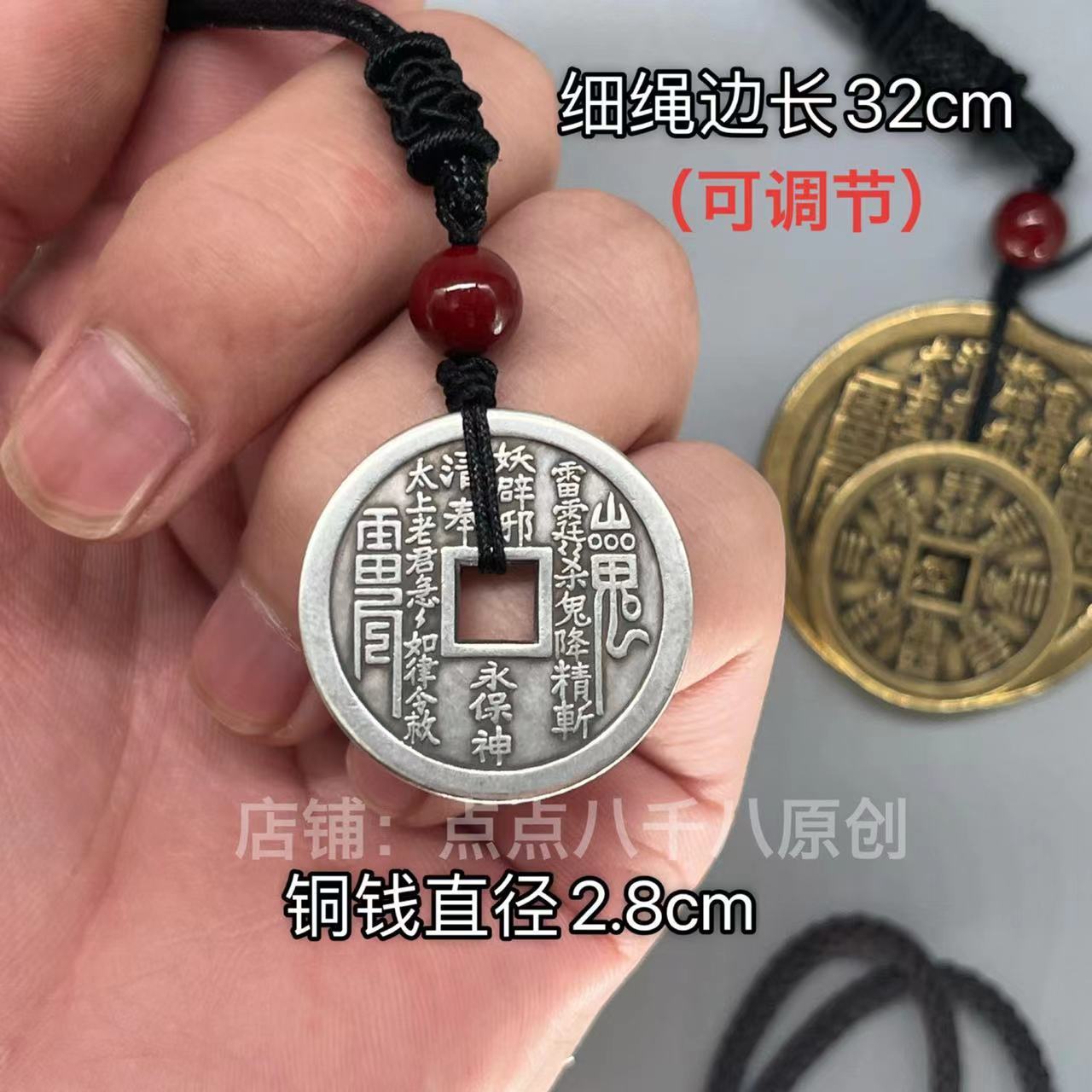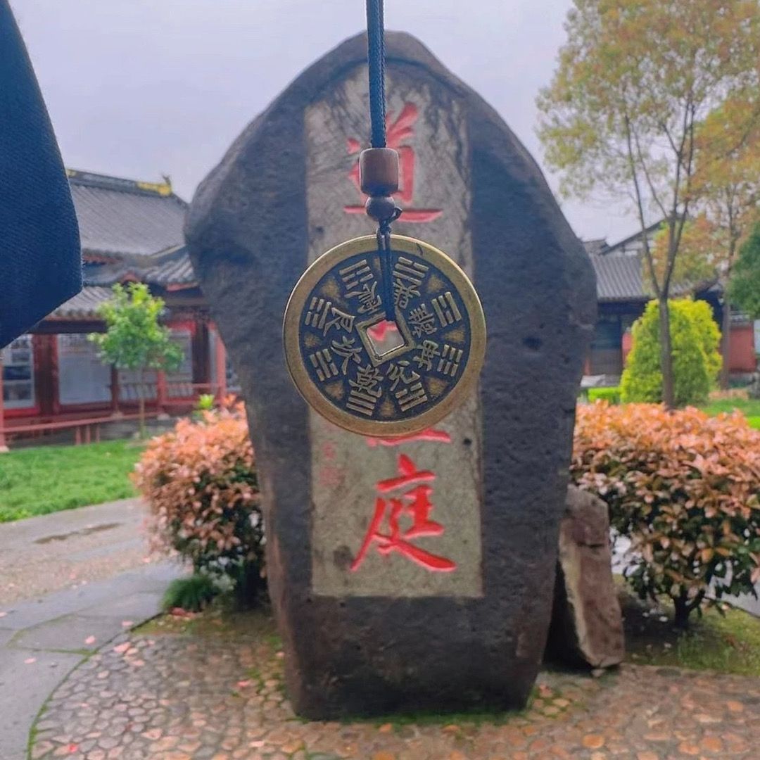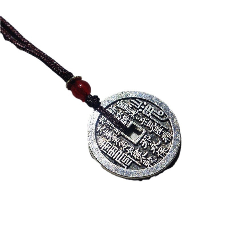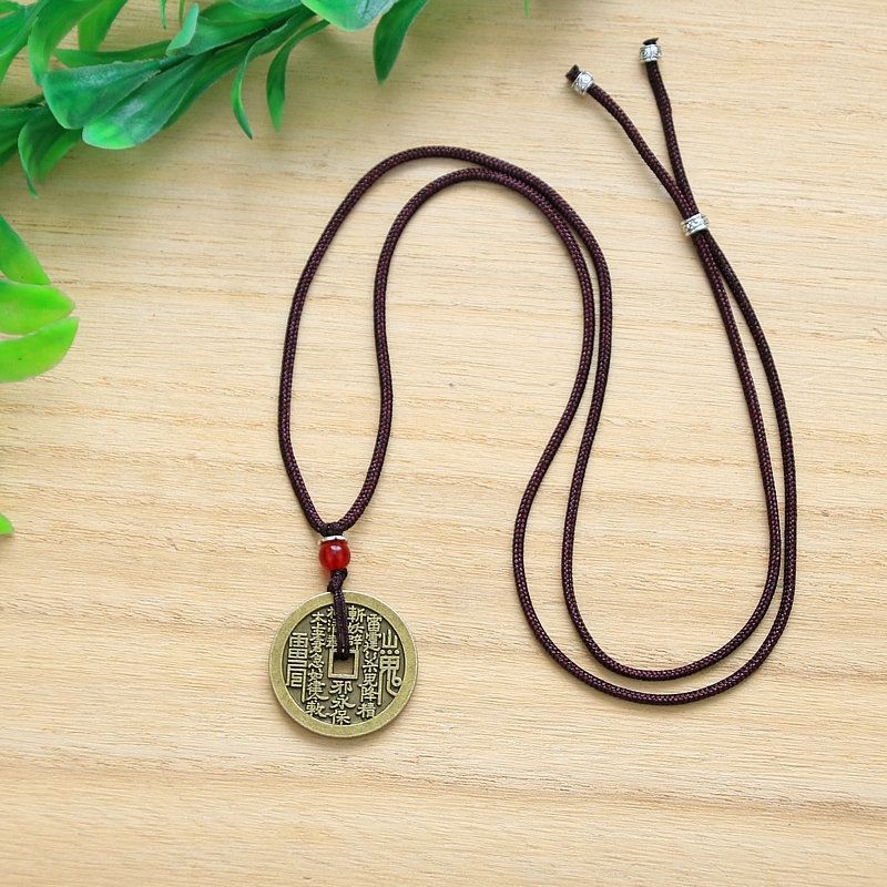 山鬼花钱吊坠项链新中式男女挂件仿古加厚黄铜古铜八卦平安扣做旧