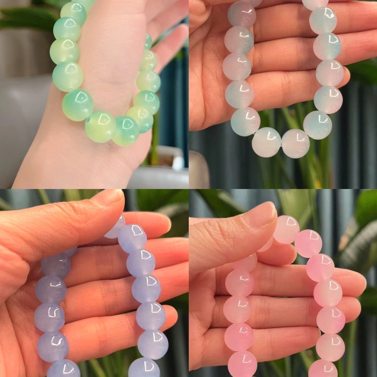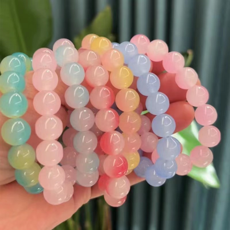 小学生手串绕指柔渐变色冰透粉色佛珠手链学生女生盘玩圆珠送闺蜜