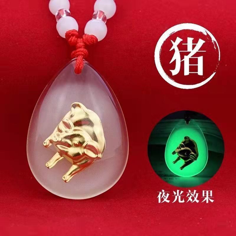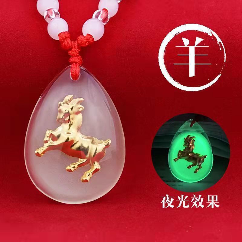 夜光十二生肖兔年项链水晶吊坠男女宝宝小孩学生生日礼物儿童项链