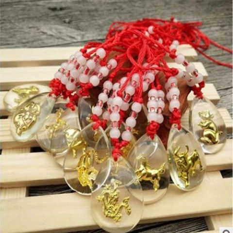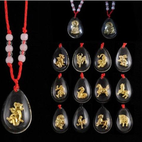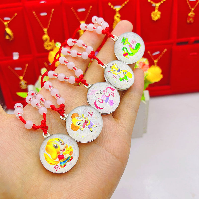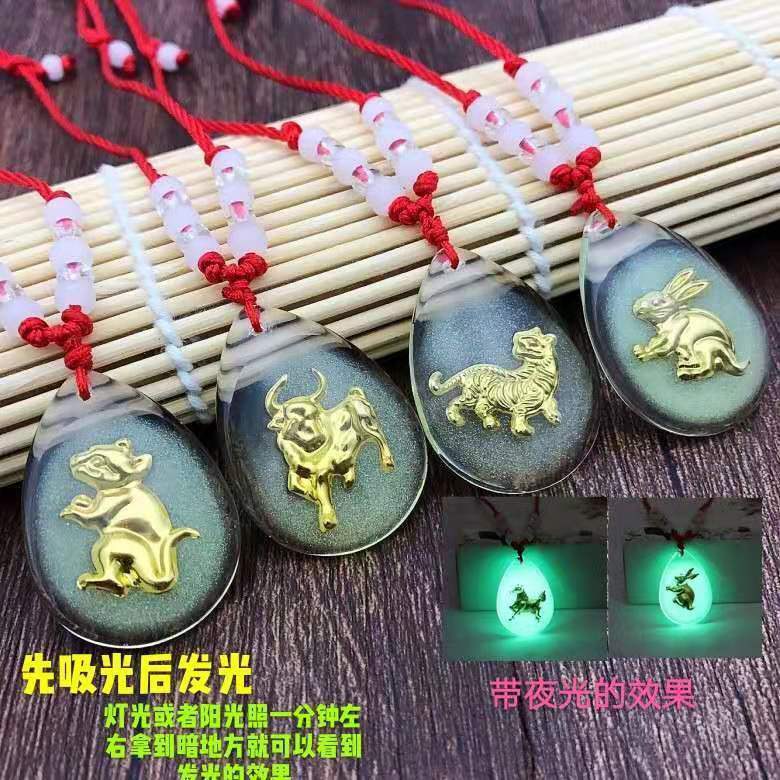 晶美金夜光十二生肖吊坠水晶镶金夜光精美项链地摊会销直播爆款