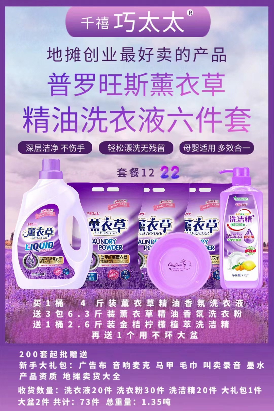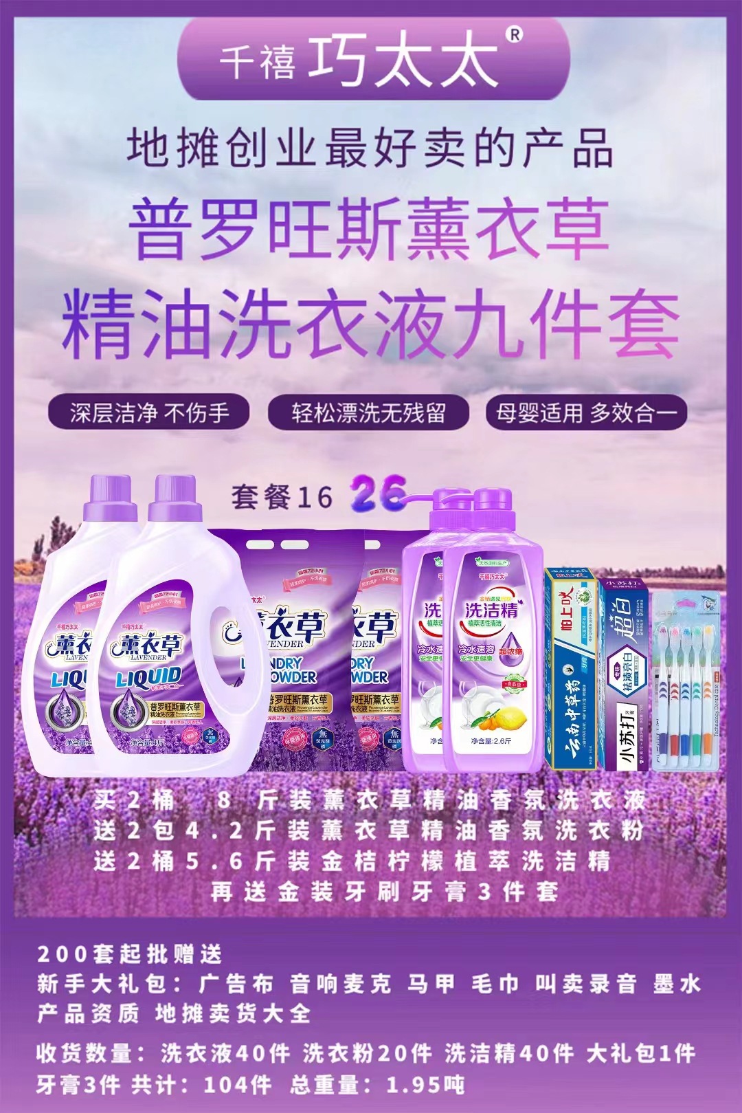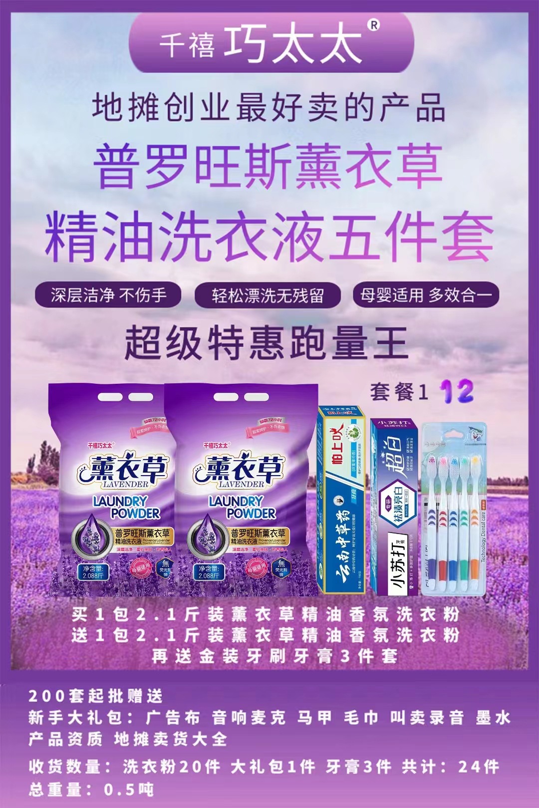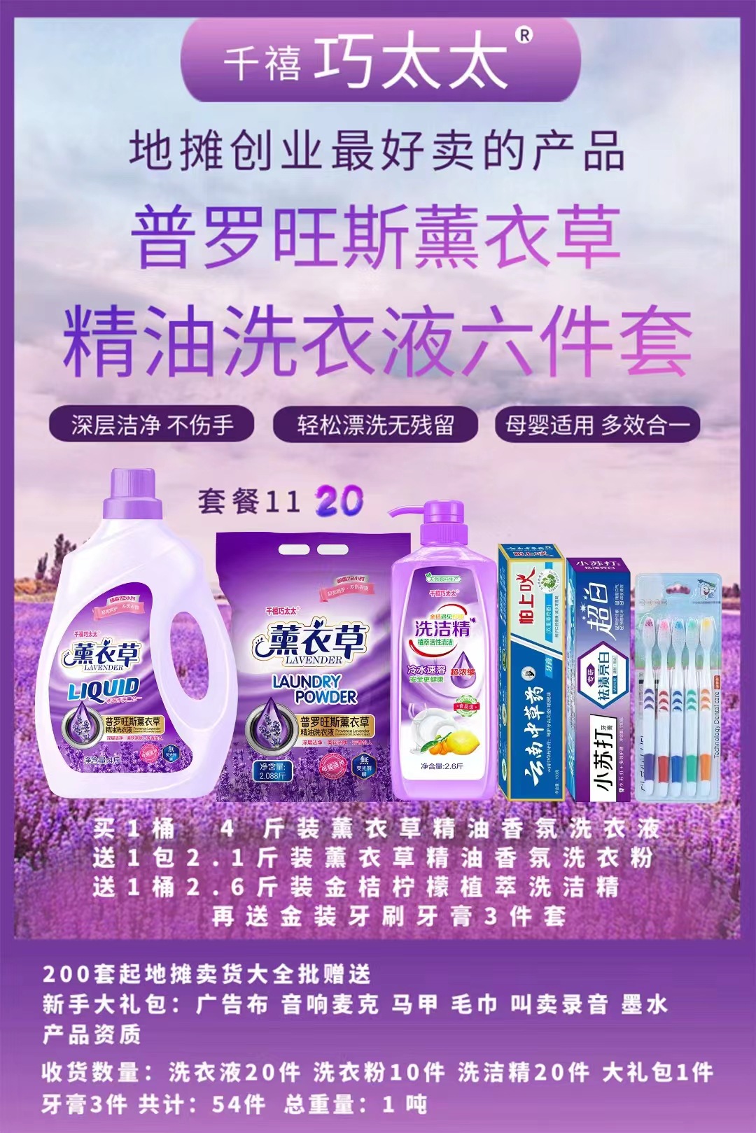 巧太太薰衣草精油洗衣液洗衣粉洗洁精牙膏牙刷日化三件套四件套餐