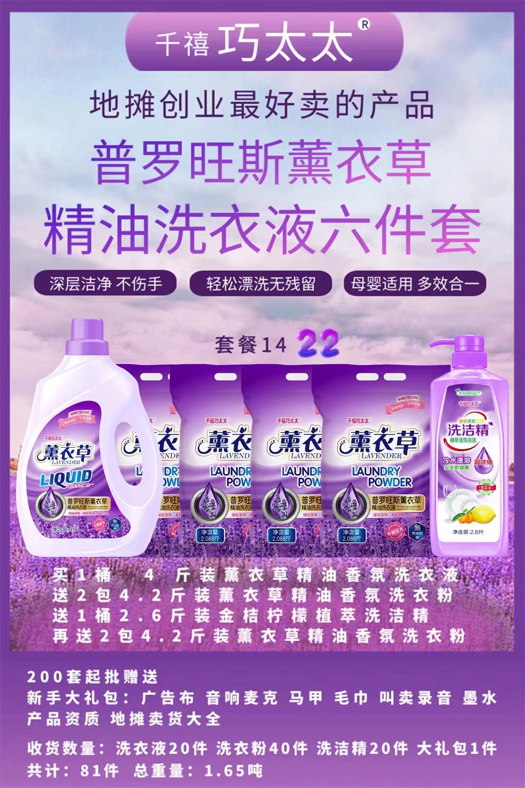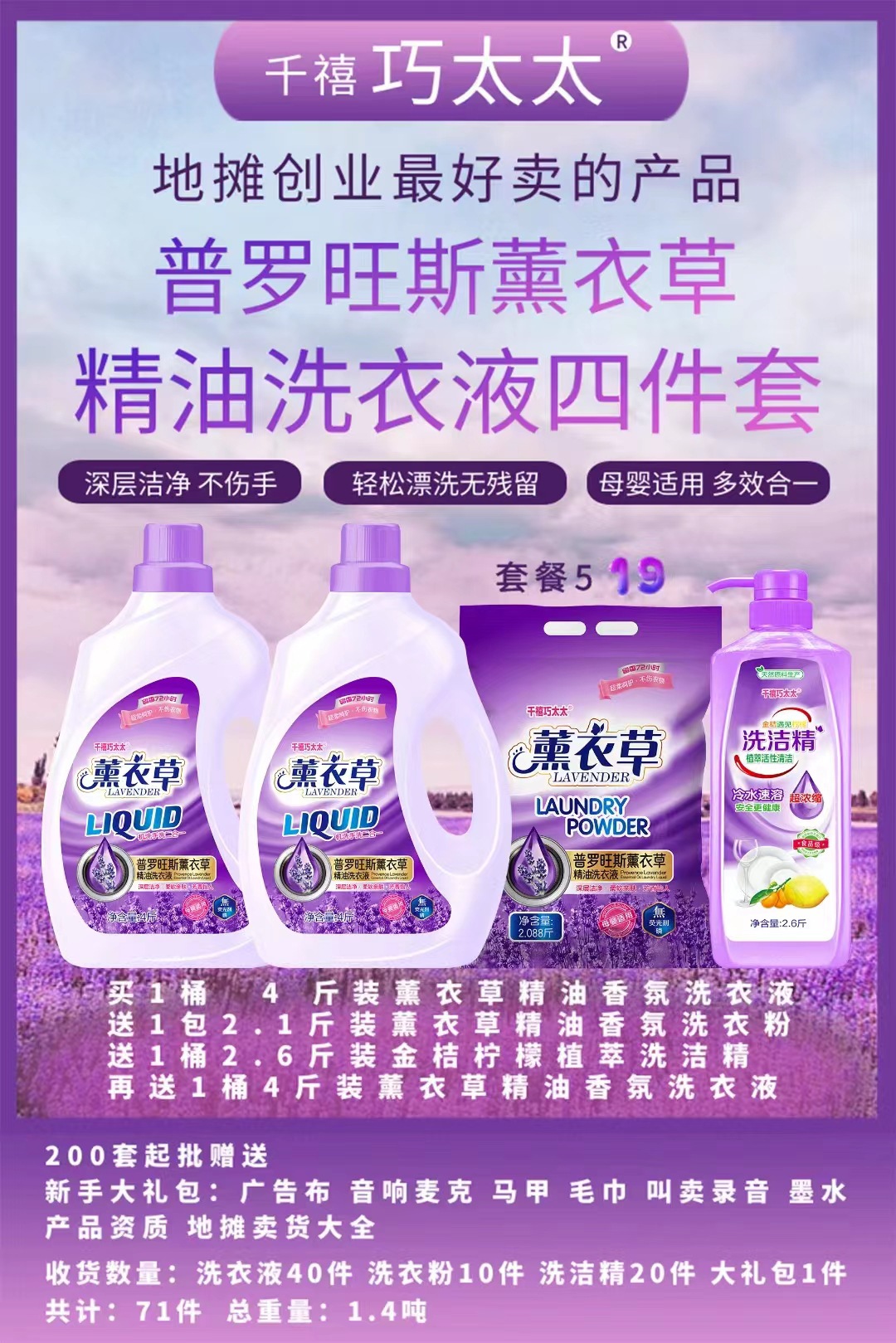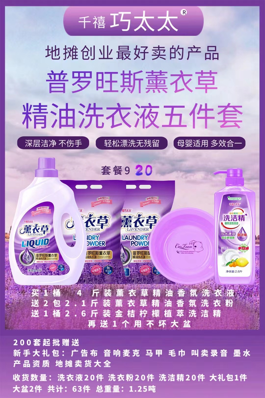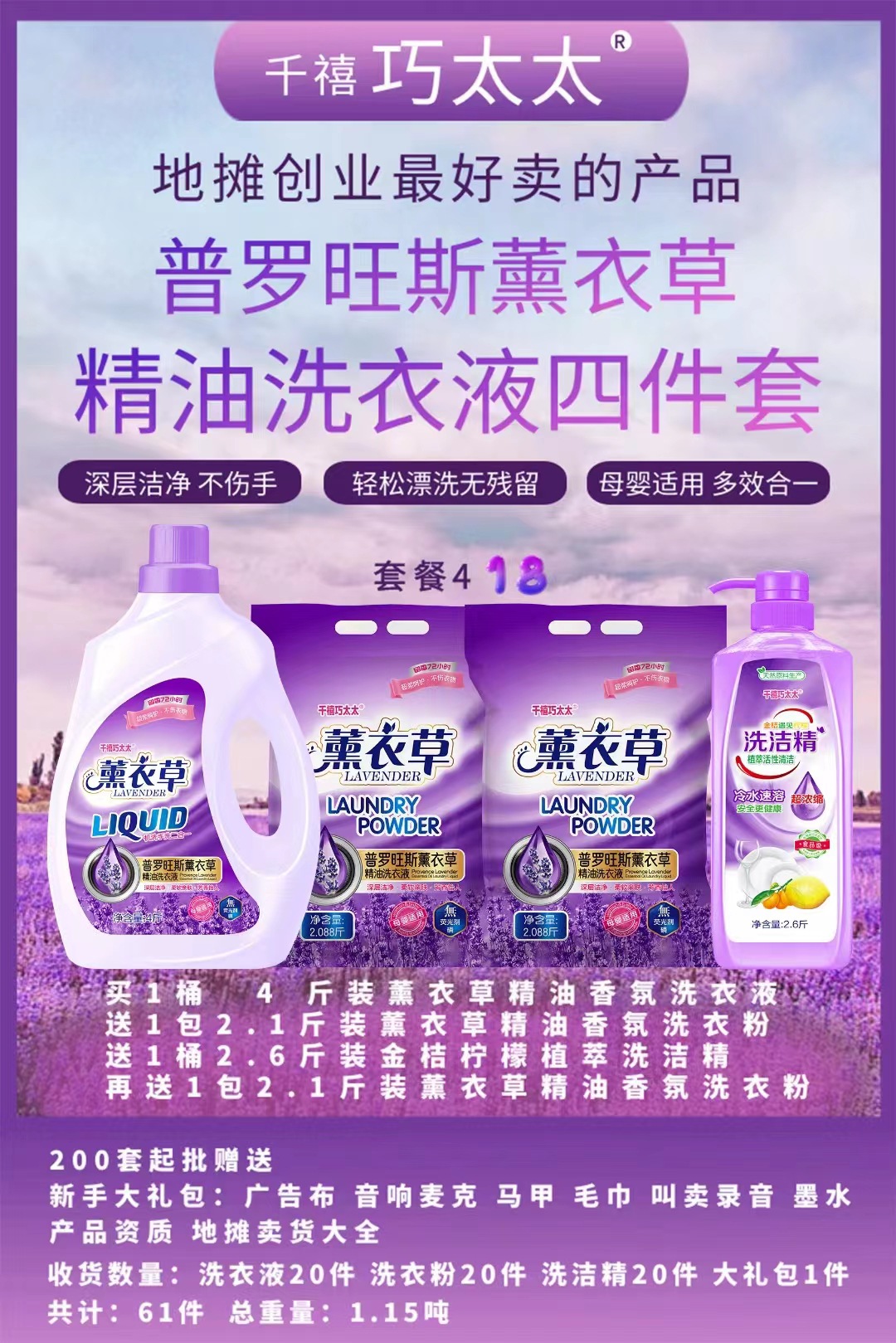 巧太太薰衣草精油洗衣液洗衣粉洗洁精牙膏牙刷日化三件套四件套餐
