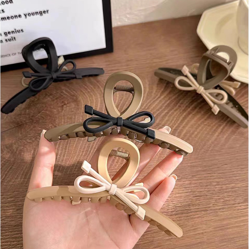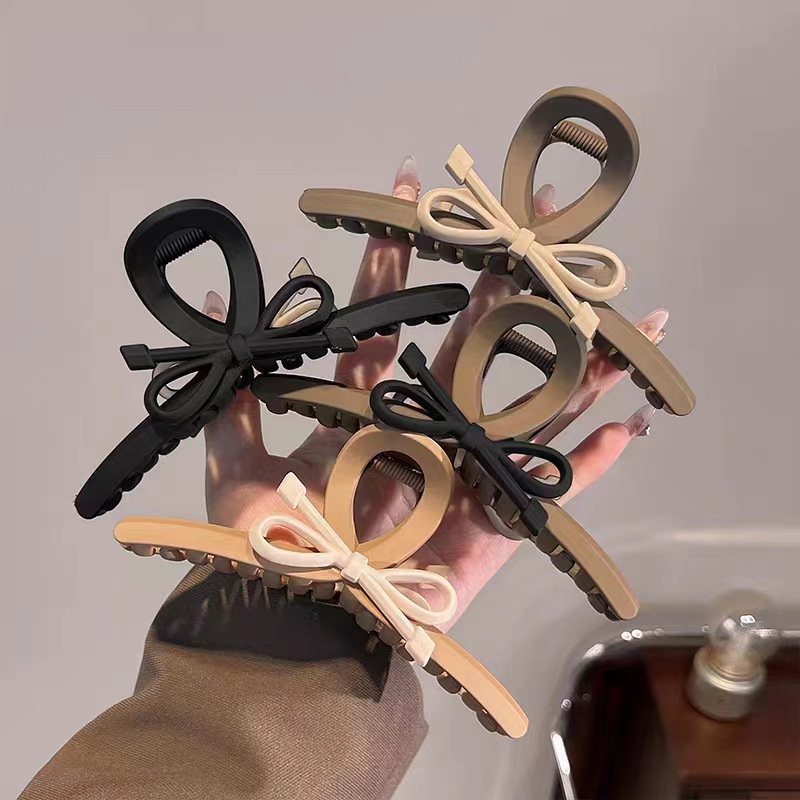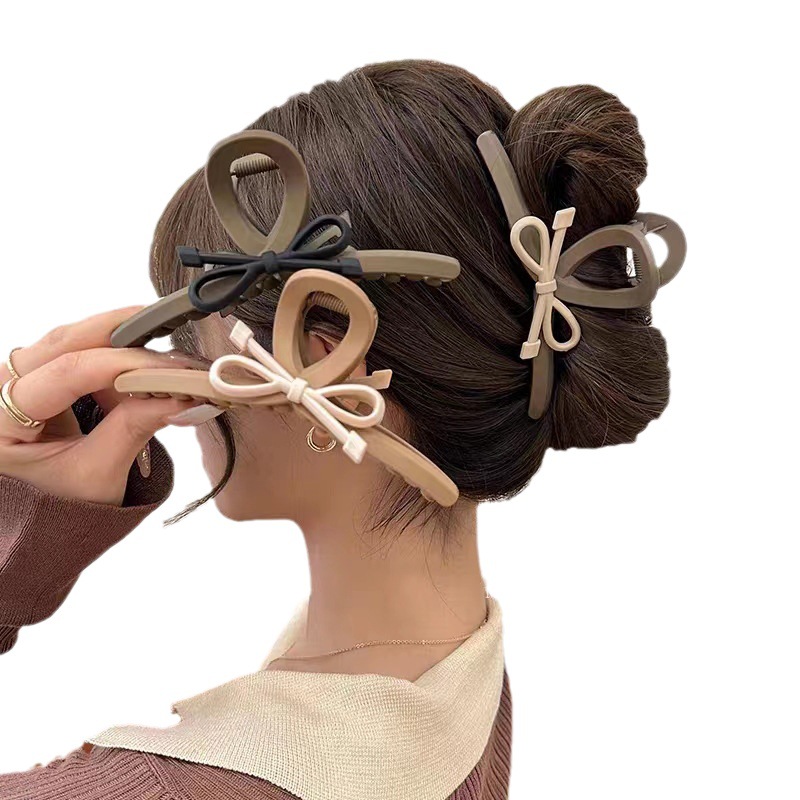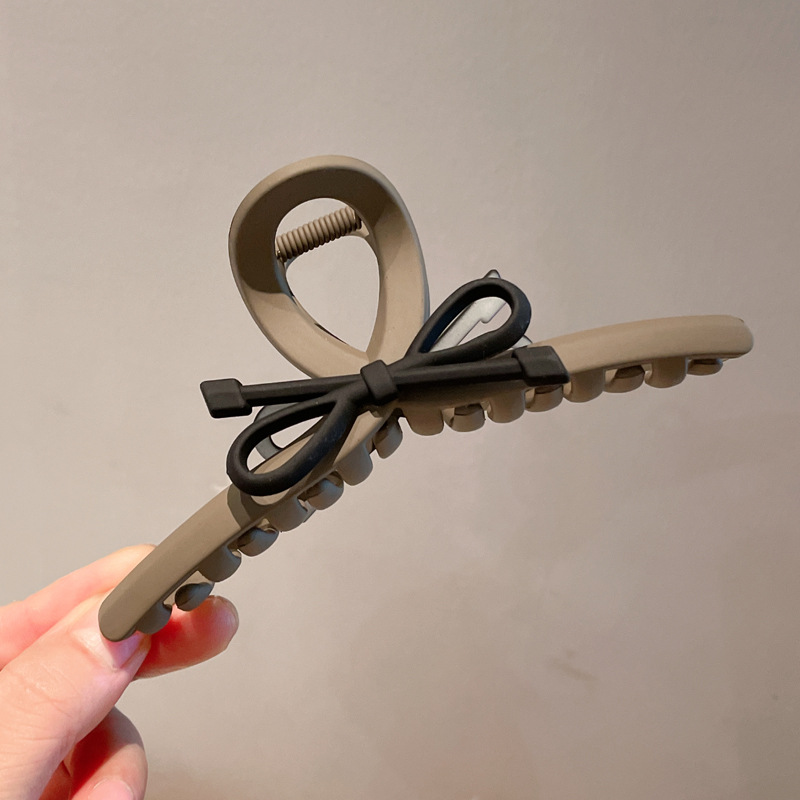气质咖色系蝴蝶结发夹女后脑勺盘发抓夹大号发卡简约鲨鱼夹子头饰