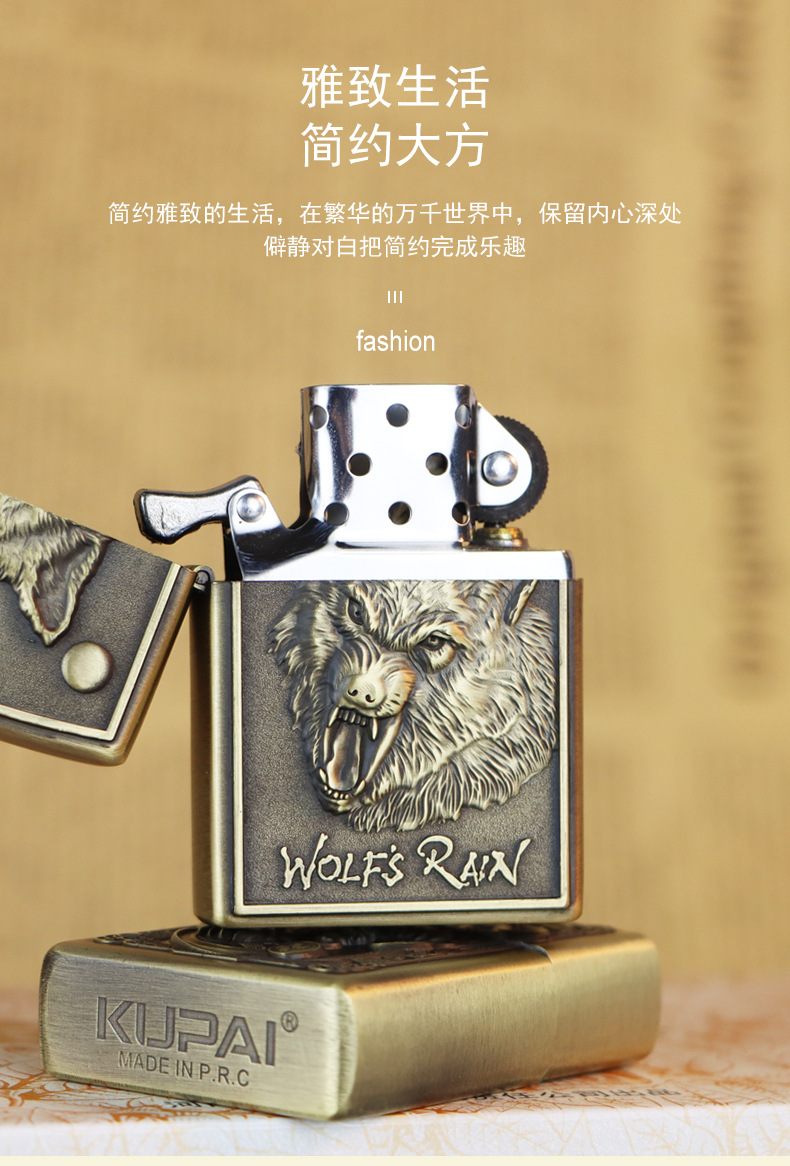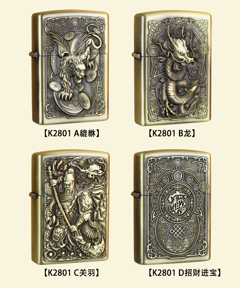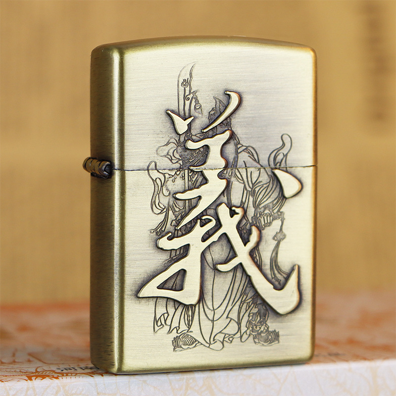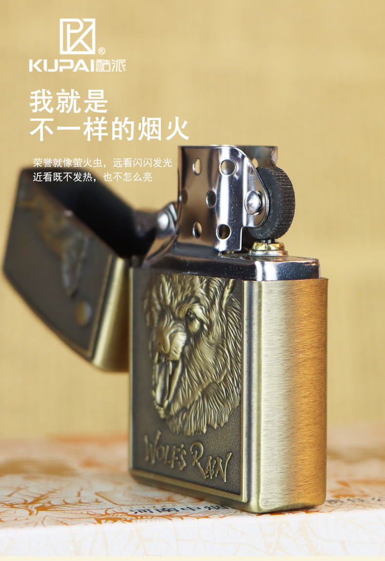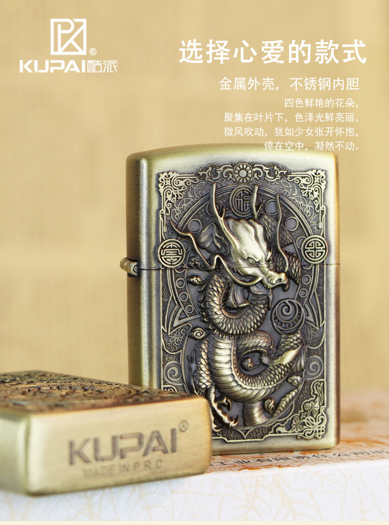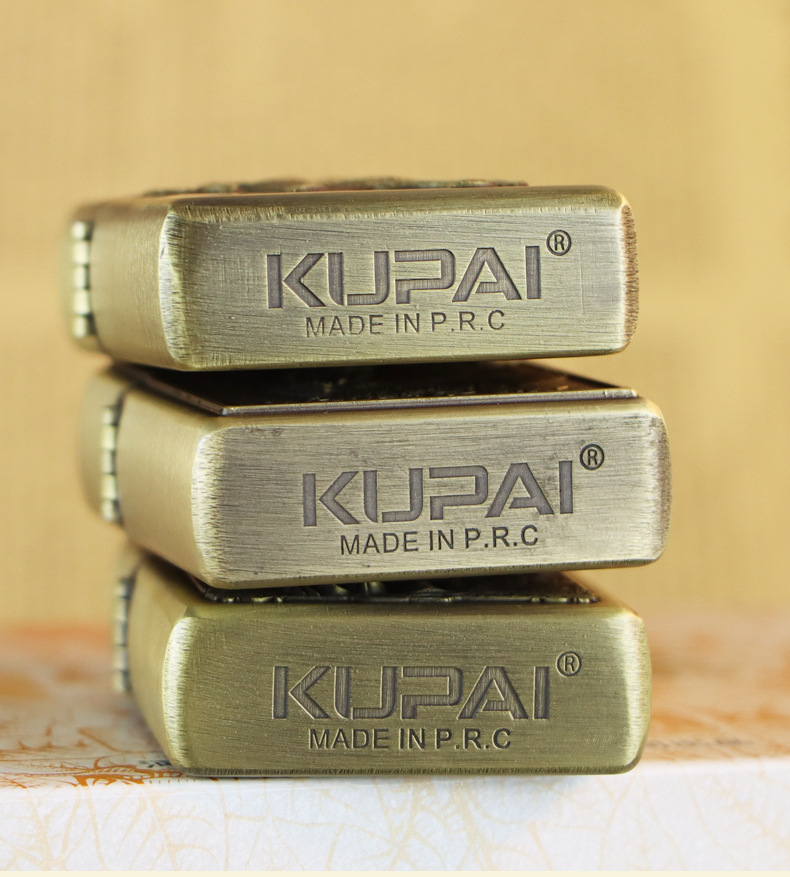 KUPAI酷派高档青铜拉丝不锈钢立体浮雕关公等图案防风煤油打火机