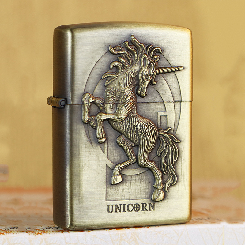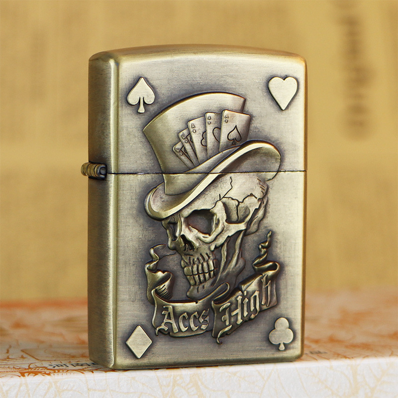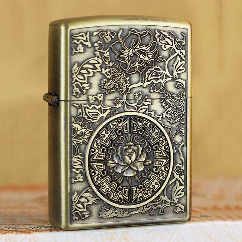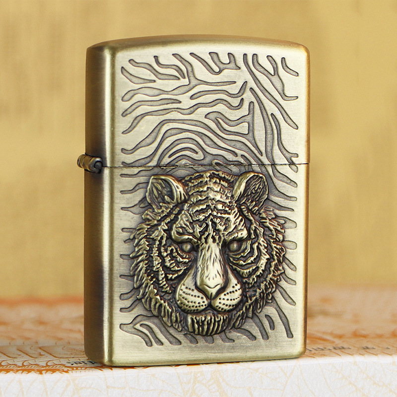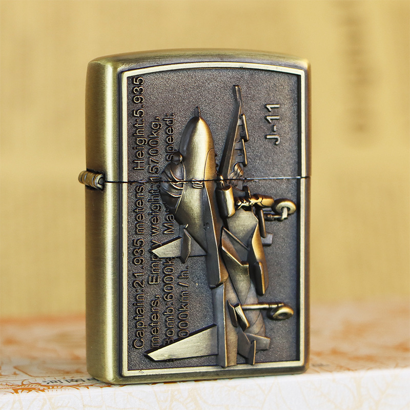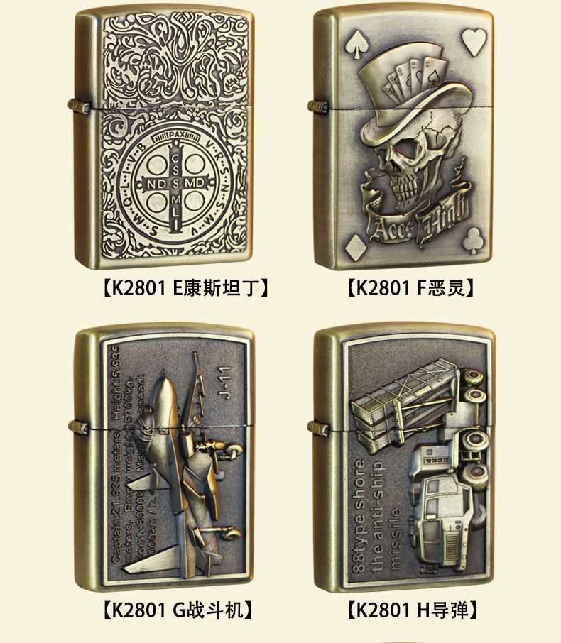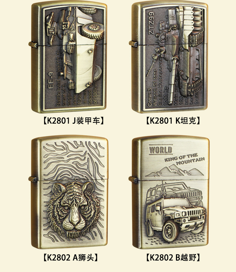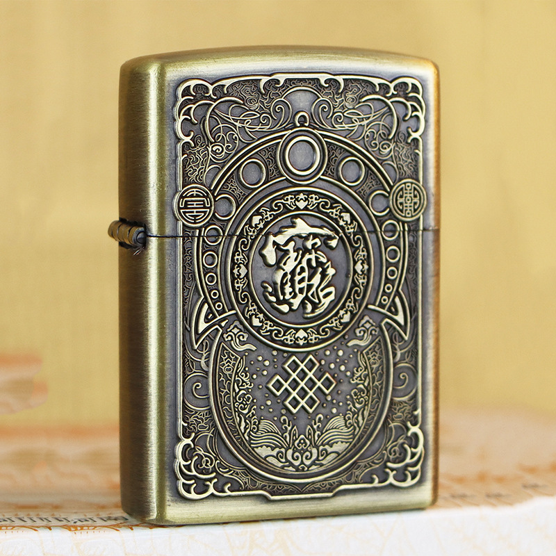 KUPAI酷派高档青铜拉丝不锈钢立体浮雕关公等图案防风煤油打火机