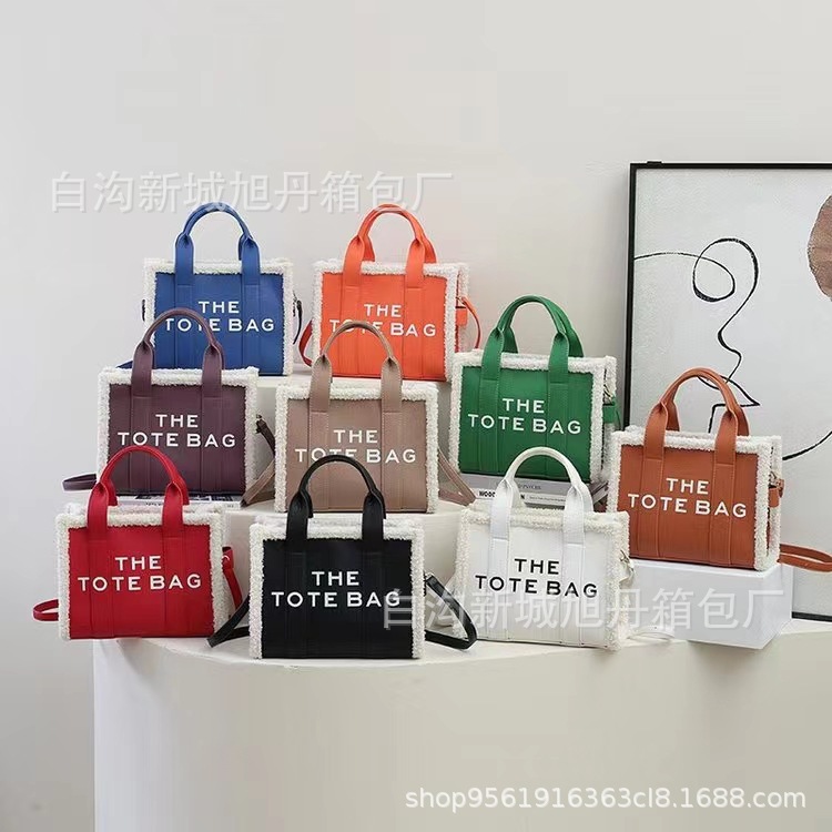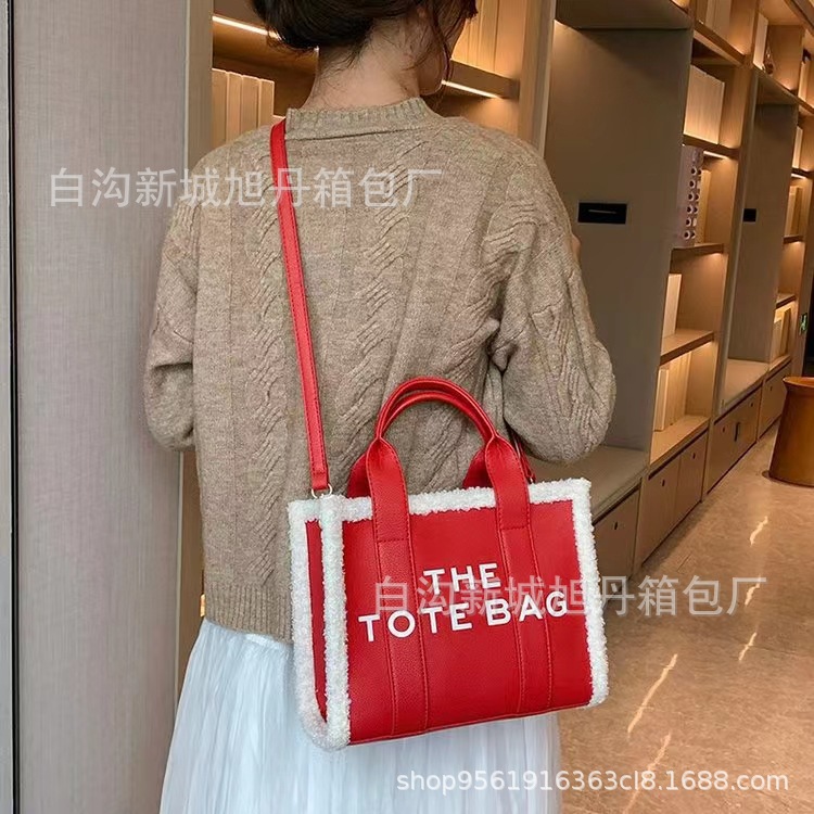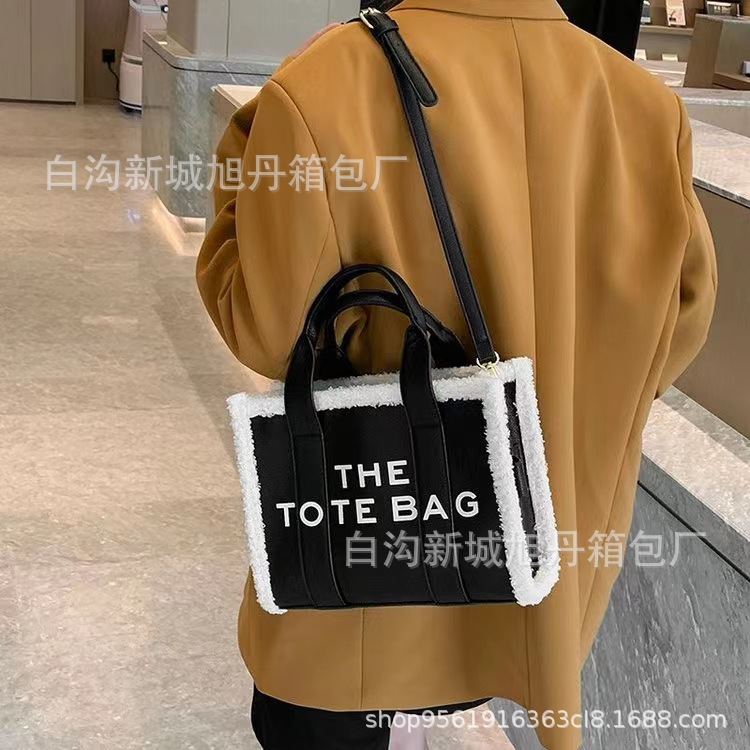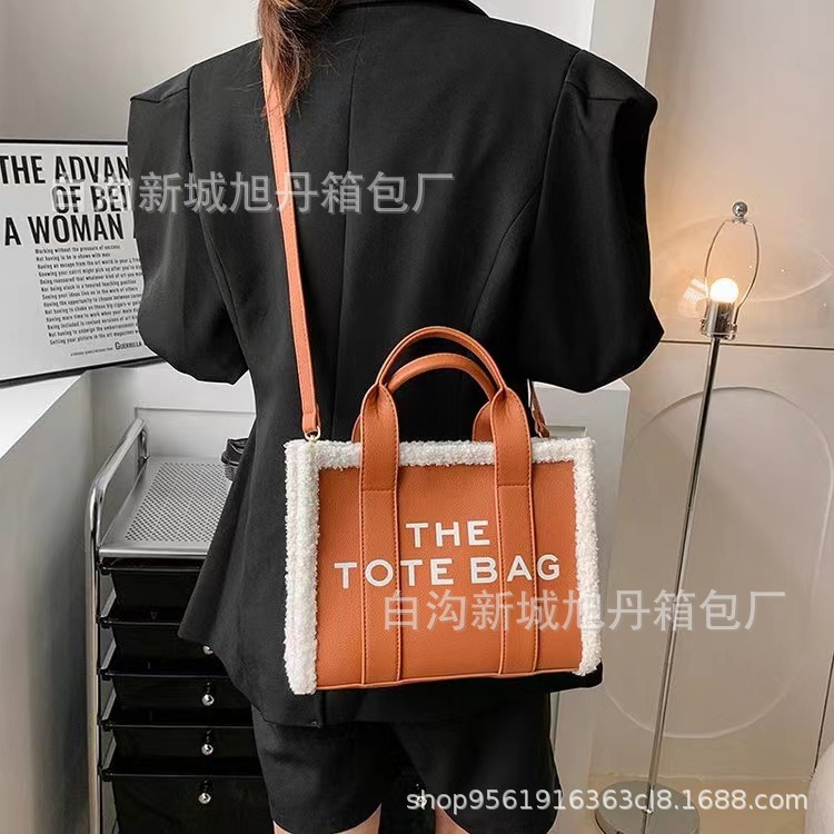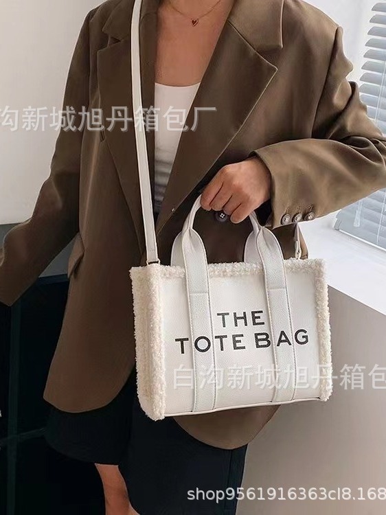 斜挎包女小众设计潮搭2023热卖款欧美单肩包通勤手提羊羔毛托特包
