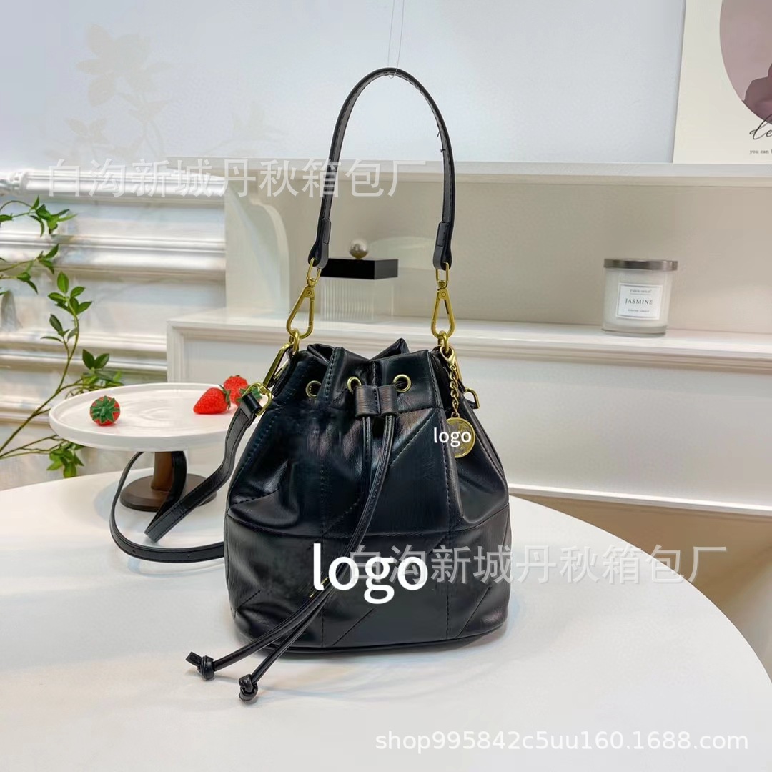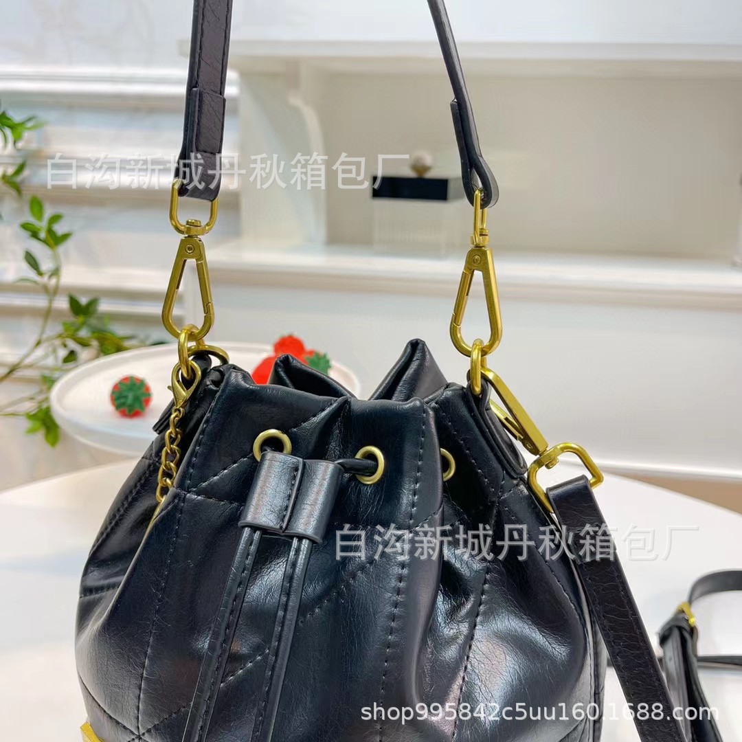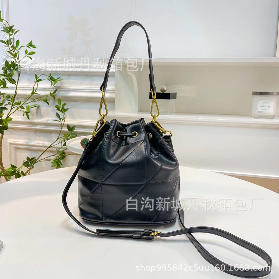 24跨境新款小香风女包时尚绣线菱格链条包单肩斜挎手提水桶包批发