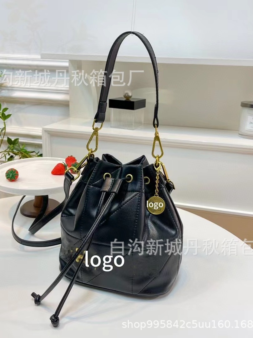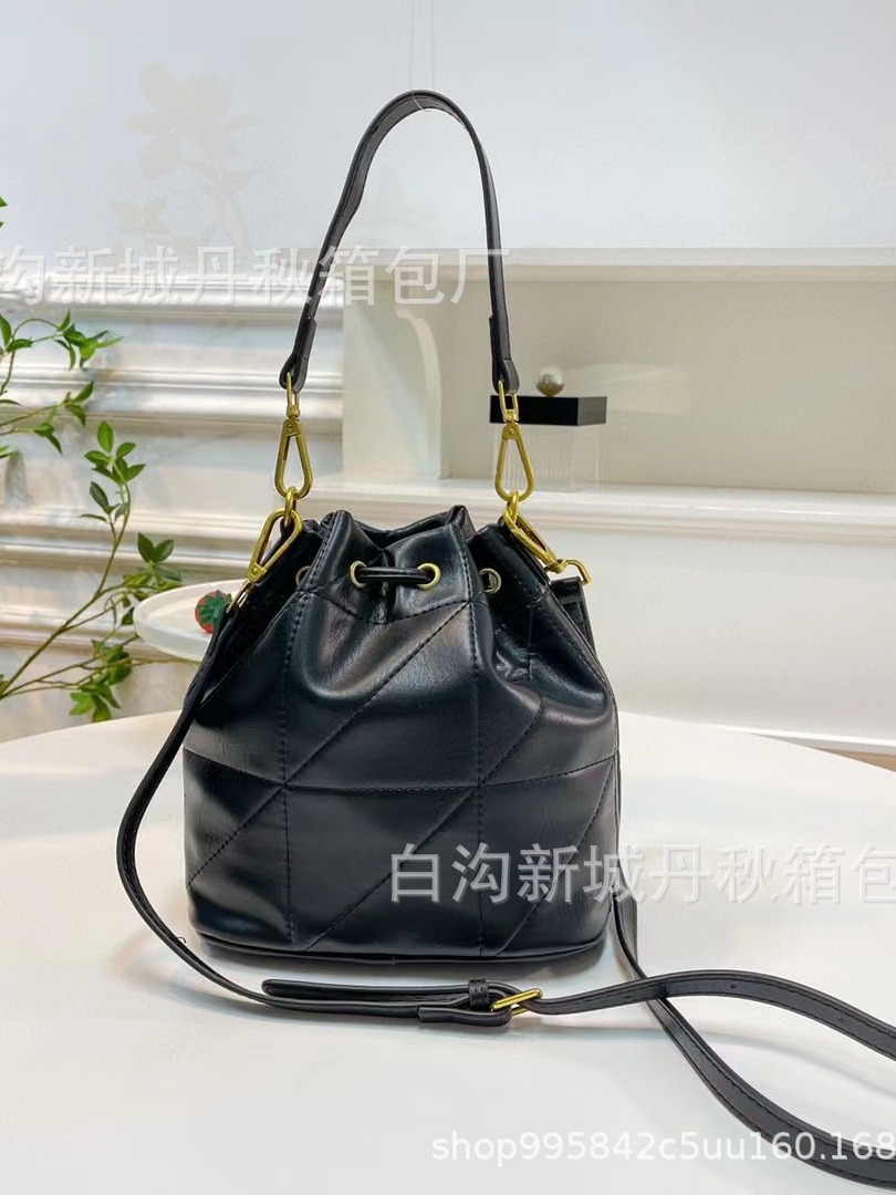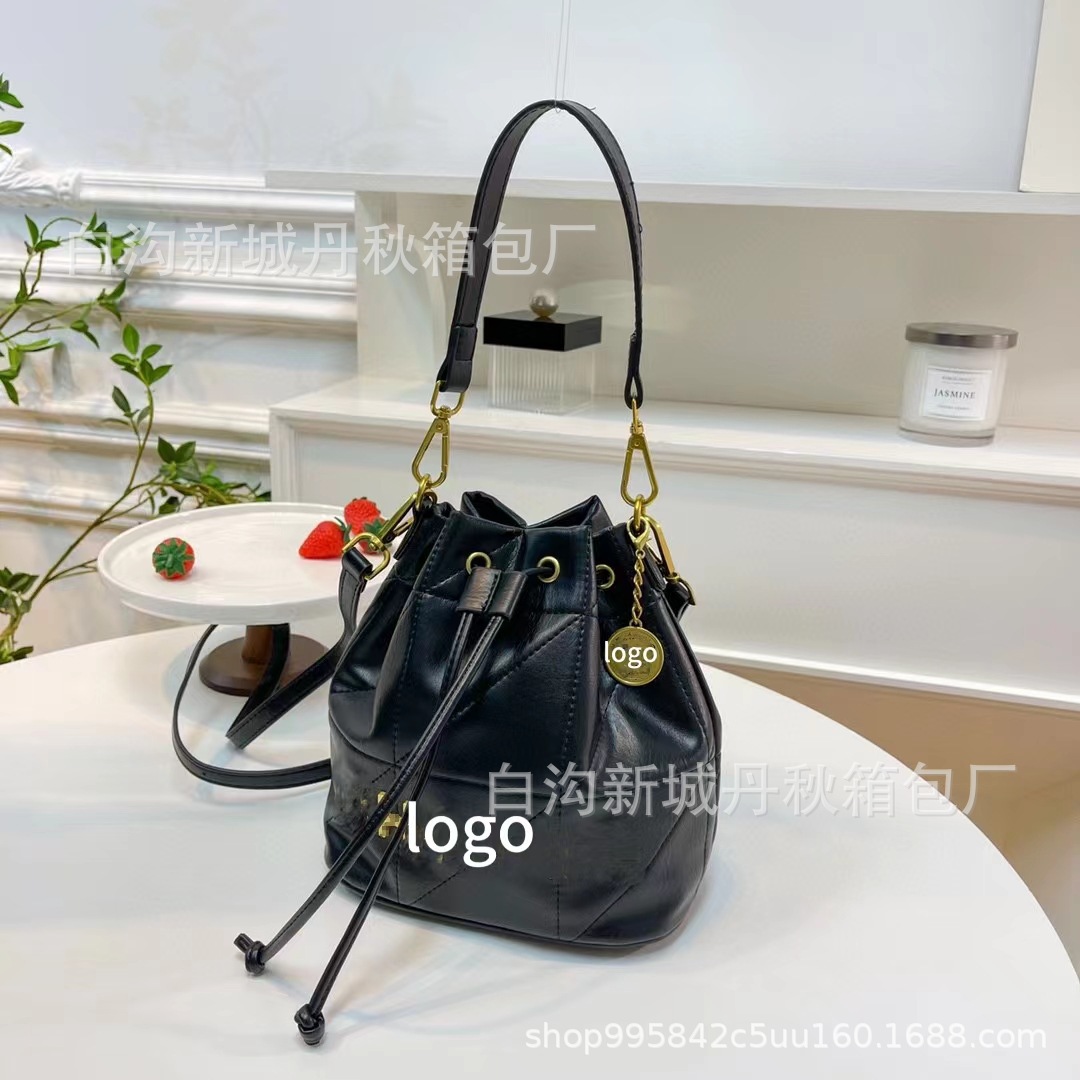 24跨境新款小香风女包时尚绣线菱格链条包单肩斜挎手提水桶包批发