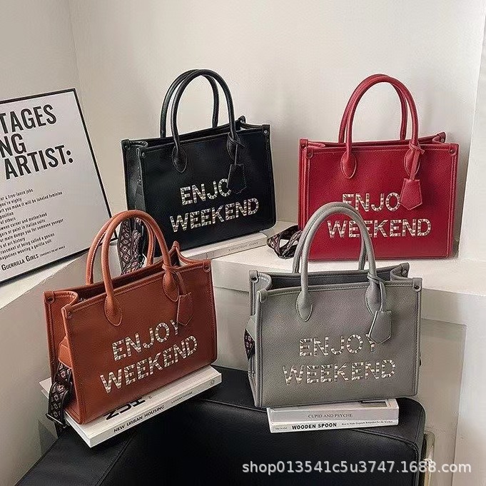 外贸大容量手提包包女2024新款时尚简约字母包单肩斜跨百搭托特包