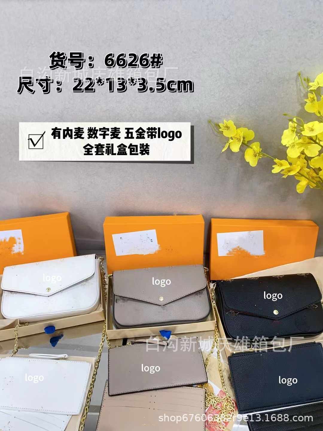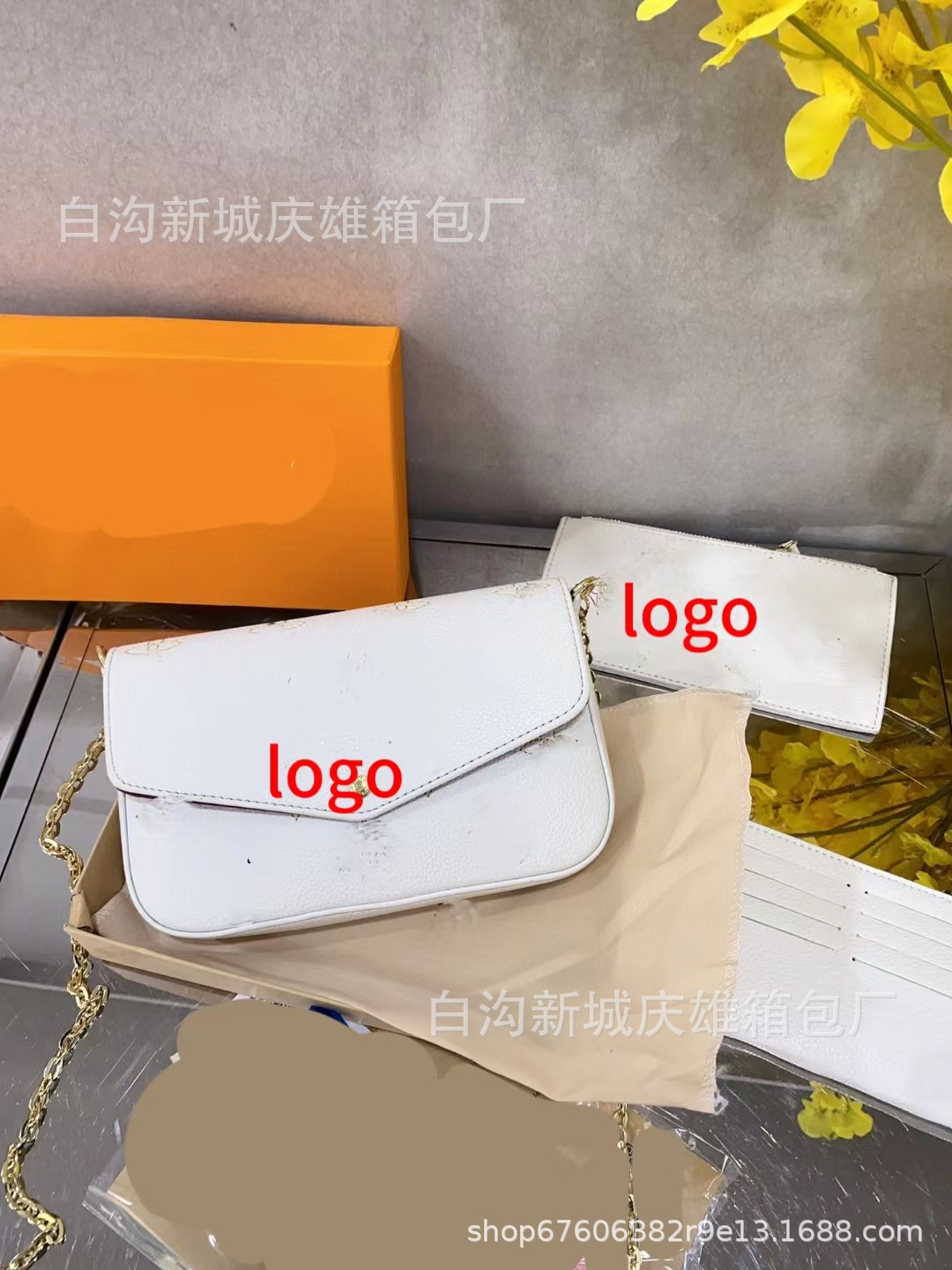 2023时尚链条抽拉盒设计链条三件套卡包脸书同款前片对花包包女