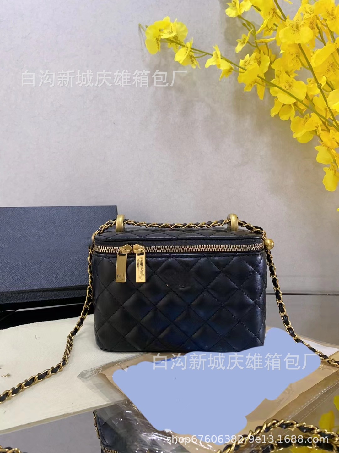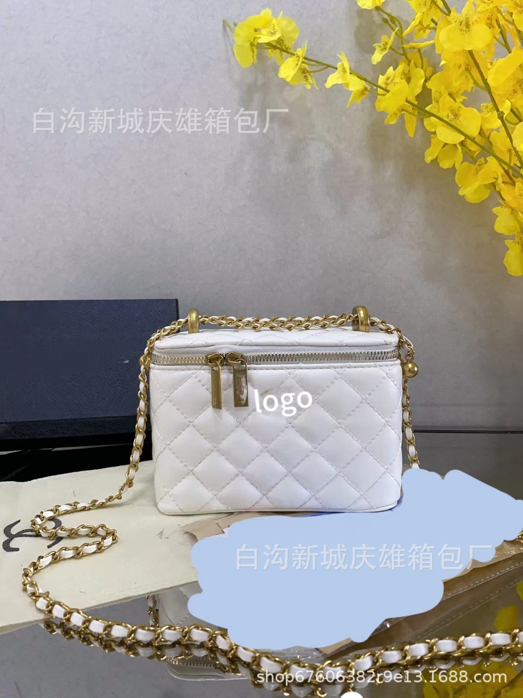 2023新款女包中号小香风金属球链条中号盒子包单肩斜挎小包包